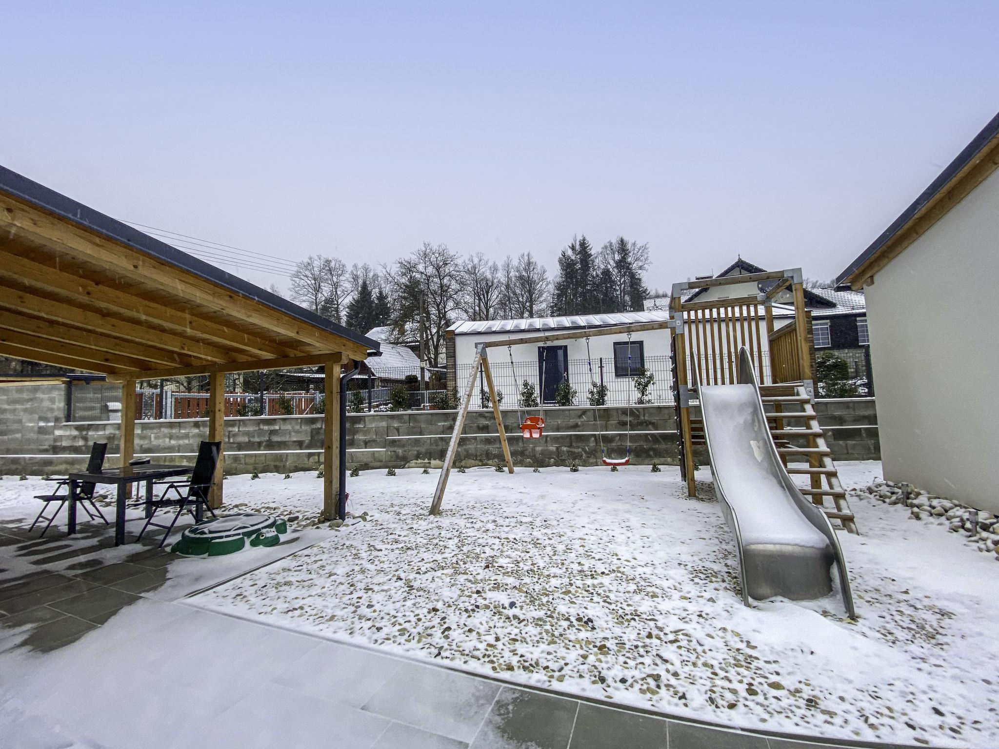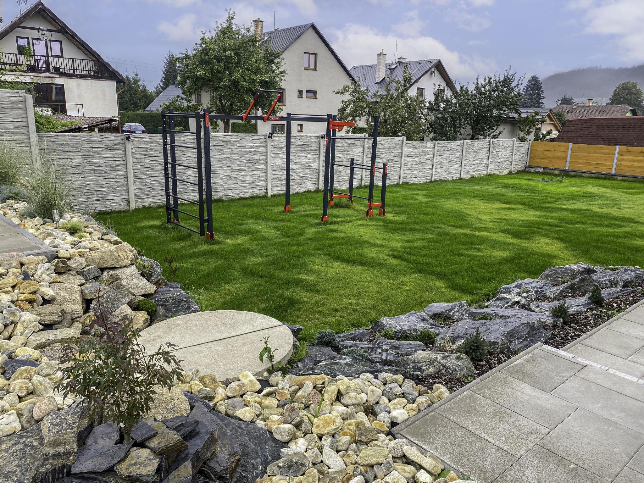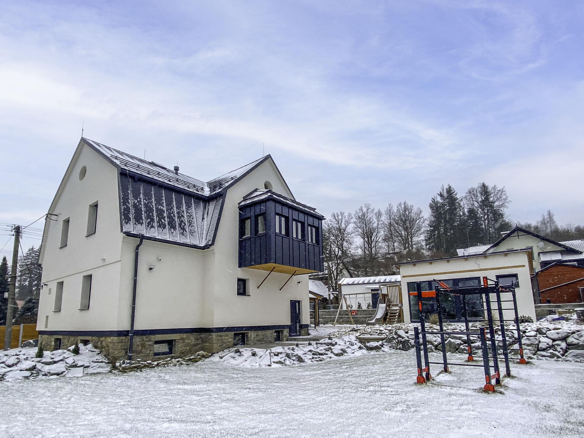 Very beautiful villa "Velké Losiny", 2 storeys, built in 1930, renovated in 2021. 2 apartments in the property. In the resort, 500 m from the centre, in a quiet position, 8 km from the skiing area, in a cul-de-sac. Private: property 750 m2 (fenced), garden. Terrace, garden furniture, barbecue, children's playground (slide, swing). In the house: storage room for skis, central heating system, washing machine, tumble dryer. Parking (for 6 cars) on the premises. Grocery 600 m, supermarket 700 m, shopping centre 10 km, restaurant, café, bus stop 900 m, railway station "Velké Losiny" 900 m, 500 m, thermal baths "Velké Losiny" 500 m. Tennis 9 km, minigolf 700 m, sports centre 9 km, walking paths from the house, cycle lane 100 m, ski lift 8 km, chair lift 10 km, skisport facilities 10 km, slopes 8 km, ski rental 10 km, ski school 10 km, children's ski school 10 km, cross country ski track 8 km, children's playground 1.5 km. Nearby attractions: Termály 500 m, Muzeum papíru, rucní papírna 1 km, Zámek Velké Losiny 1.8 km, Šumperk 11 km, Vodní nádrž Dlouhé stráne 20 km, Jeseník 35 km. Well-known ski regions can easily be reached: Kouty nad Desnou 10 km, Cervenohorské sedlo 20 km, Praded 50 km. Hiking paths: CHKO Jeseníky.
