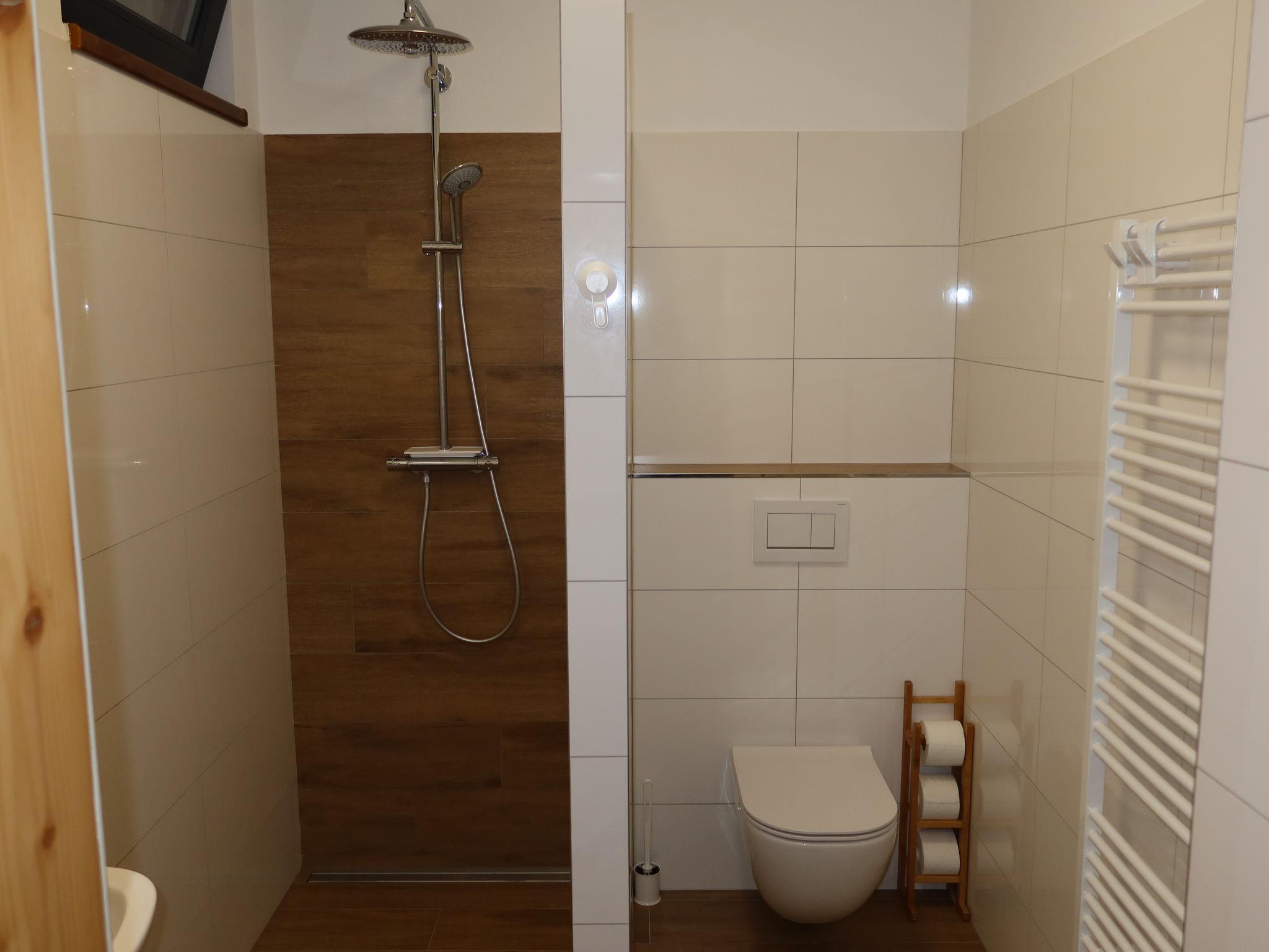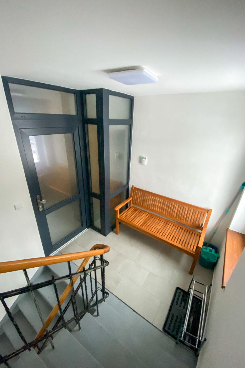 2-room apartment 60 m2, on the upper floor. Spacious and bright, fully renovated in 2021, very comfortable and beautiful furnishings: open large living room with 1 double sofabed (140 cm, length 190 cm), TV (flat screen). 1 room with 2 beds (100 cm, length 200 cm), 1 double bed (200 cm, length 200 cm). Open kitchen (oven, dishwasher, 4 induction hot plates, toaster, kettle, microwave, freezer) with dining table. Shower/WC. Floor heating. Facilities: washing machine, children's high chair, baby cot. Internet (WiFi, free). Please note: suitable for families. Non-smoking house. Private entrance. (Private entrance leading from the internal staircase.).