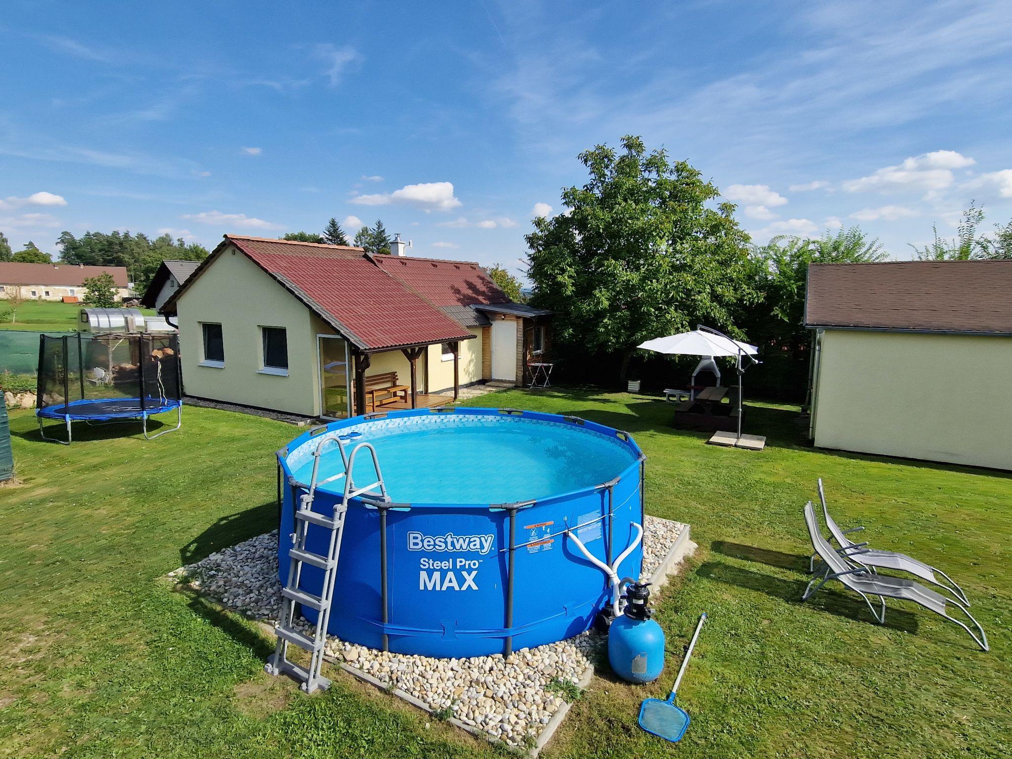 Cosy bungalow "Velký Ratmírov", detached. In a quiet, sunny position. Private: property 100 m2 (fenced), swimming pool (above ground) round (3.6 m diameter, depth 120 cm, seasonal availability: 01.Jun. - 30.Sep.). Garden furniture, barbecue, children's playground. In the complex: trampoline. Parking. Shop, restaurant 500 m, bus stop "Velký Ratmírov" 500 m, railway station "Debolín" 2.5 km. Fishing possibilities 2 km. Nearby attractions: Zámek Kardašova Recice, Pluhuv Ždár 10 km, Zámek, muzeum Jindrichuv Hradec 10 km, Zámek Cervená Lhota, Jemcina, Dírná 14 km, Zoopark Na Hrádecku 14 km, Hrad a zámek Stráž nad Nežárkou 16 km, Provaznické muzeum Karla Klika 16 km. Well-known lakes can easily be reached: Velká Holná 6 km. Hiking paths: Ceská Kanada 20 km, Trebon 30 km.