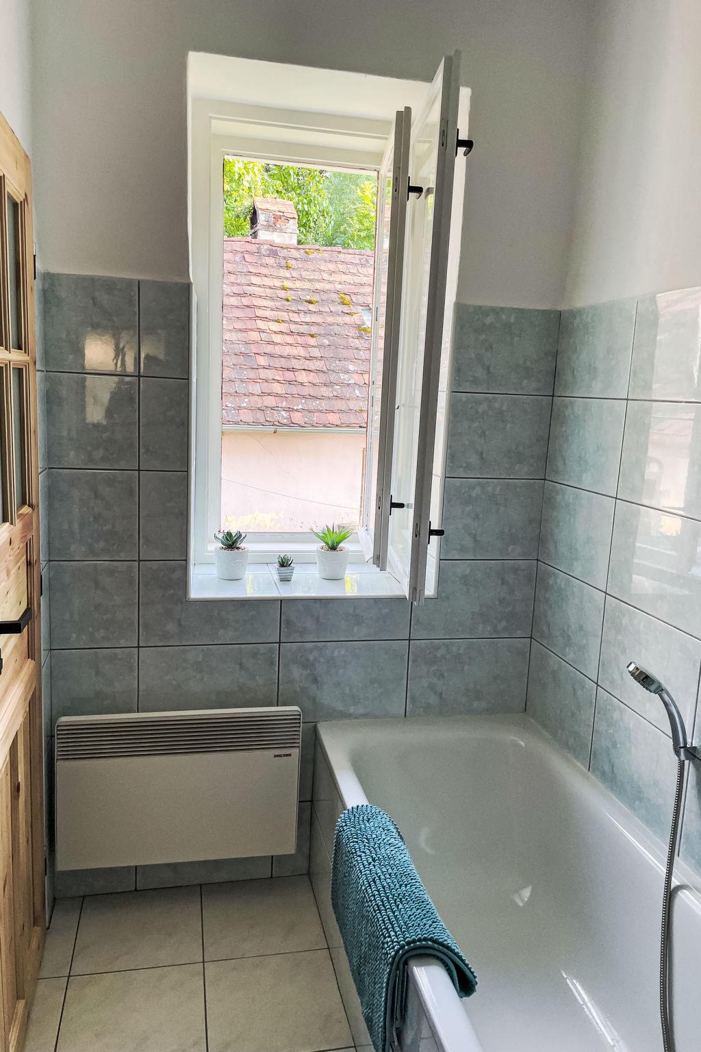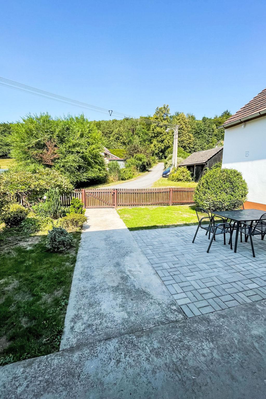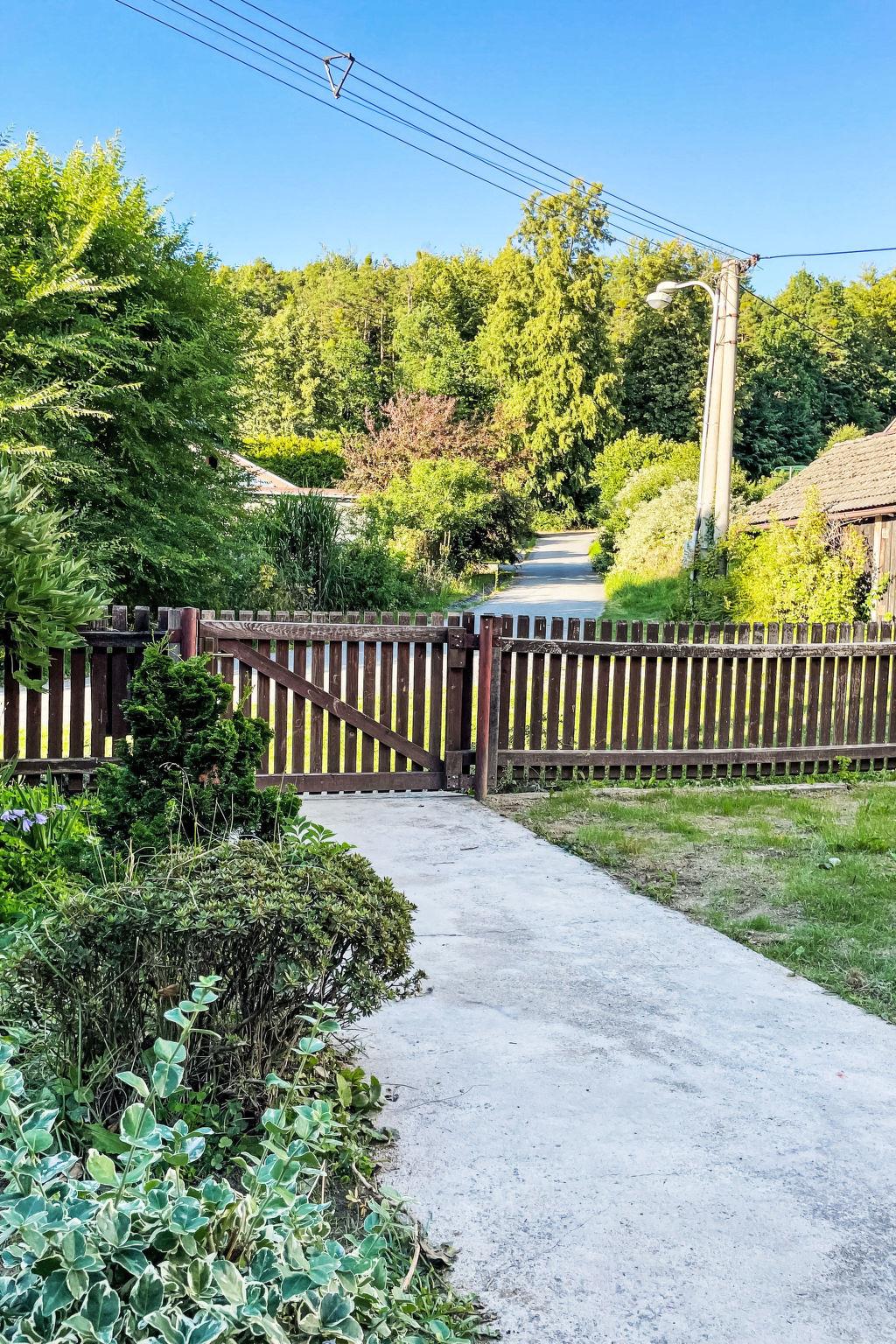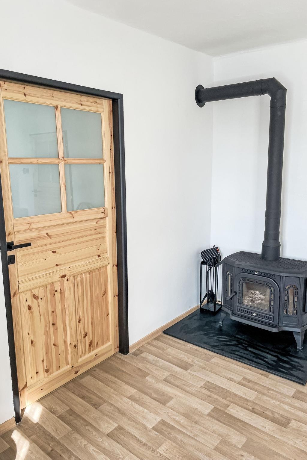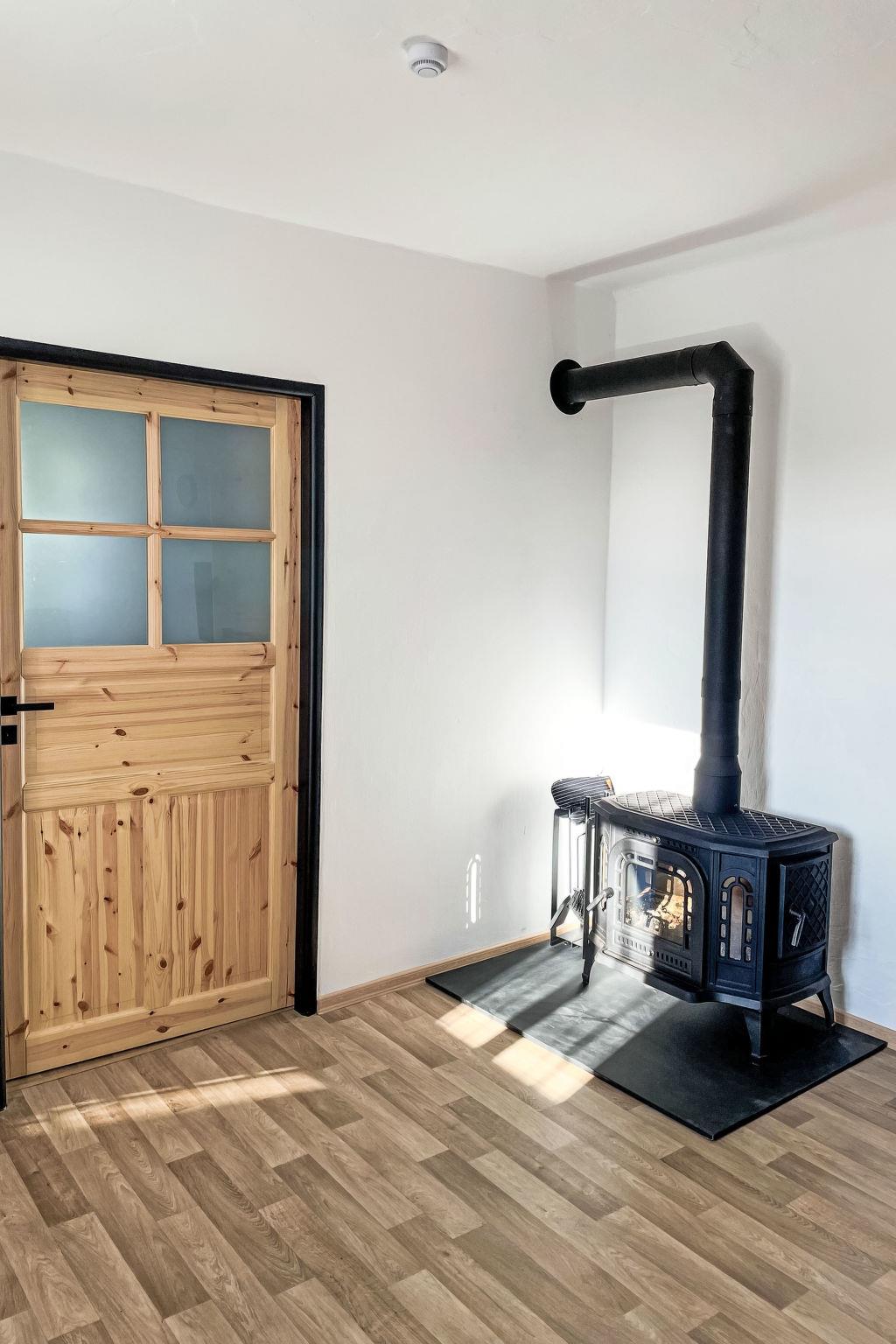 3-room house 100 m2. Practical and comfortable furnishings: entrance hall. Large living room with open-hearth fireplace and TV. 1 room with 1 bed, 1 double bed and heating stove. 1 room with 1 bed and 1 double bed. Large kitchen (4 hot plates, oven, kettle, microwave) with dining table and heating stove. Shower/WC. Wood heating. Heating not available in all rooms. Comfortable furnishings in the country house style. Small terrace. Terrace furniture, barbecue, sitting area. Very beautiful view of the countryside. Facilities: Internet (WiFi, free). Suitable for families. 1 small pet/ dog allowed.