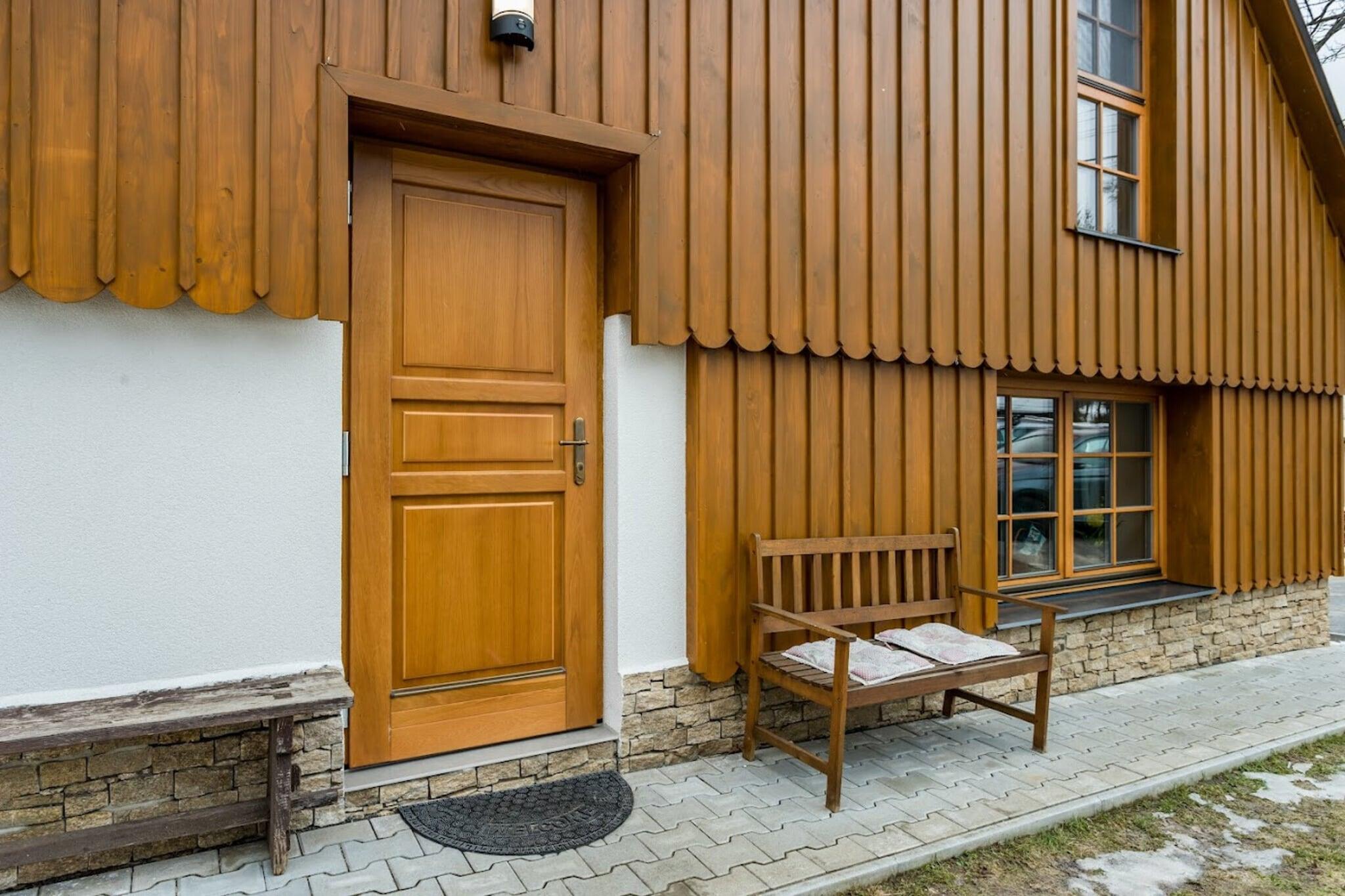 Denne charmerende lejlighed, designet til 4 personer, tilbyder et hyggeligt tilflugtssted beliggende i hjertet af Giant Mountains. Med et rummeligt soveværelse med dobbeltseng med en king-size seng og en komfortabel sovesofa i stuen er den perfekt til en lille familie eller en gruppe venner. Lejligheden er kæledyrsvenlig og byder dine lodne ledsagere velkommen til at deltage i eventyret. Gæsterne kan nyde bekvemmeligheden ved privat parkering til to biler og nem adgang til skiopbevaring, hvilket gør det til en ideel base for udendørsentusiaster. Lejligheden er beliggende i den naturskønne landsby Sklenarice, der tilbyder nem adgang til lokale attraktioner og aktiviteter. Skiløjperne i Metlák og Šachty ligger kun 2 km væk, perfekt til skiløb om vinteren, mens det omkringliggende område byder på masser af vandre- og naturudforskningsmuligheder. Derudover giver den naturlige pool under huset et forfriskende sted at slappe af. Landsbyens maleriske charme og smukke udsigt gør dette til et fredeligt tilflugtssted for både eventyr og afslapning. Indvendigt er lejligheden fuldt udstyret med moderne bekvemmeligheder. Et velindrettet køkken giver dig mulighed for nemt at tilberede dine yndlingsmåltider, og badeværelset med regnbruser giver komfort efter en dag med udendørs aktiviteter. Stuen med brændeovn byder på et hyggeligt sted at slappe af, og lejlighedens selvstændige indgang sikrer privatliv og bekvemmelighed under hele opholdet.