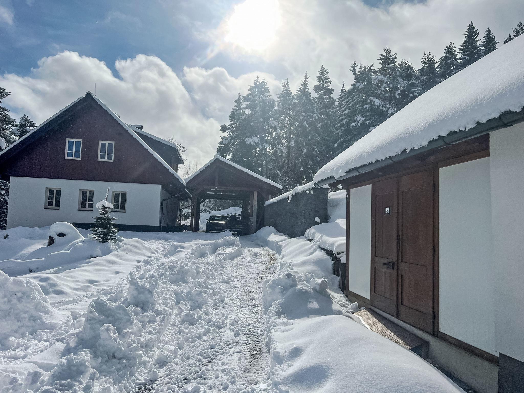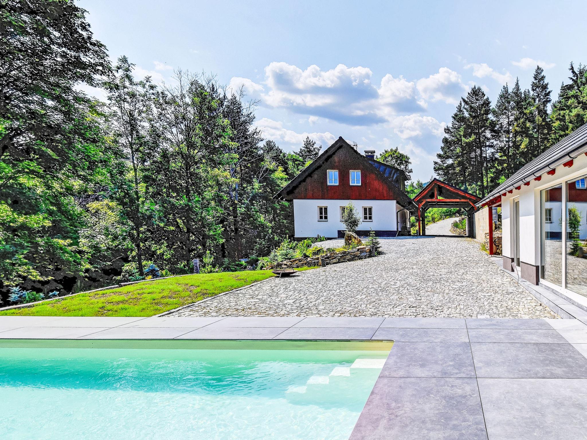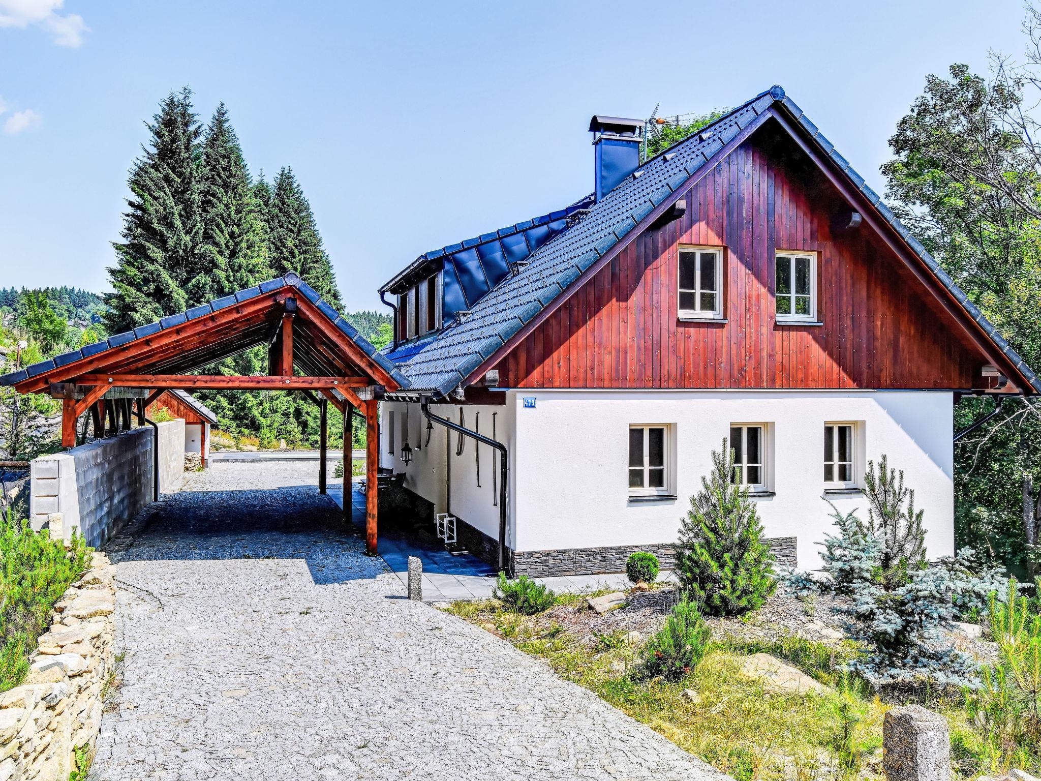 very beautiful cottage "Zadov", 3 storeys, detached, surrounded by trees. In a quiet, sunny position, 100 m from the edge of the forest, 1 km from the skiing area. For shared use: property 2'500 m2 with lawn, swimming pool (8 x 3 m, 24 m2, seasonal availability: 01.Jun. - 30.Sep.). Garden furniture, barbecue, fireplace. In the house: WiFi, sauna, sun terrace, central heating system. Parking at the house. Grocery 2 km, supermarket 20 km, restaurant, bar, café 500 m, bus stop "Zadov" 500 m, railway station "Vimperk" 11 km. Nearby attractions: Šumavská slat – rašelinište 1 km, Hribová rezervace Stachy 2 km, Boubínský prales a vyhlídková vež 25 km, Národní park Šumava, Obrí hrad – keltské hradište (Nicov) 5 km, Rozhledna na skokanském mustku-Churánov 1 km. Well-known ski regions can easily be reached: Lyžarský areál Zadov/Churánov 1 km. Well-known lakes can easily be reached: Plešné jezero 55 km, Pramen Vltavy 25 km. Object suitable for 12 adults.
