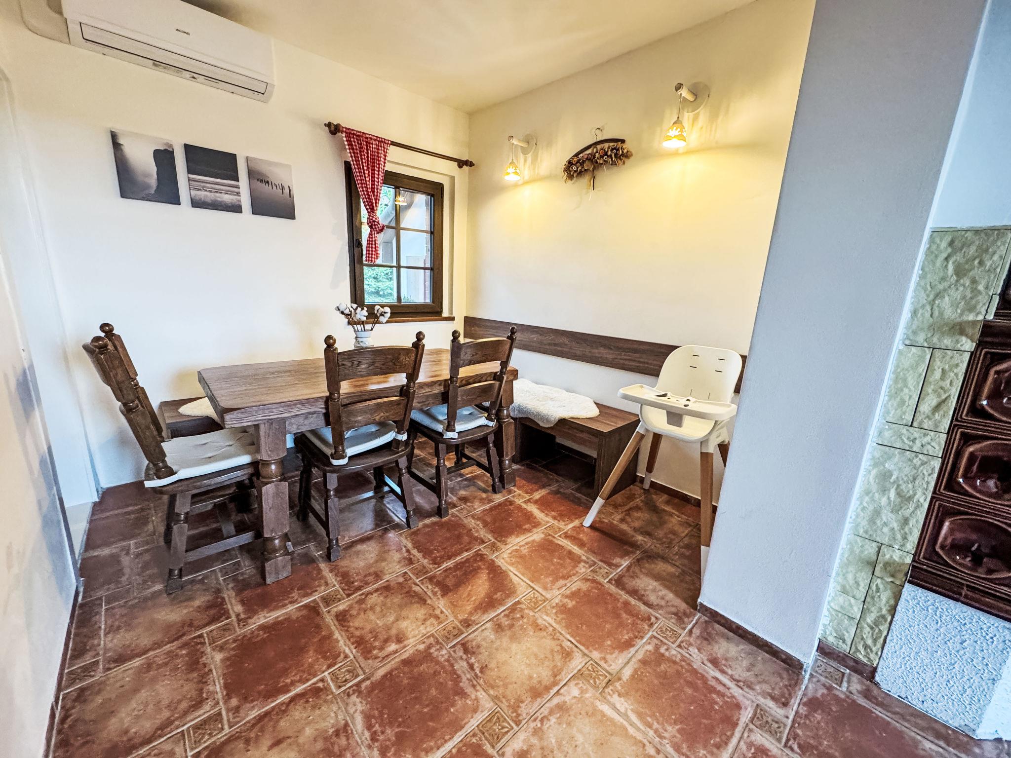 "Rabštejn", 4-room cottage 110 m2. Stylish furnishings: living room with Scandinavian wood stove, dining nook and TV. 1 room with 1 bed and 1 double bed. 1 room with 1 double bed. 1 room with 3 beds. Kitchen (dishwasher, 4 ceramic glass hob hotplates, toaster, kettle, microwave, freezer, electric coffee machine). Shower/WC. Electric heating, wood heating. Terrace, patio. View of the countryside. Facilities: washing machine, sauna, children's high chair, baby cot. Internet (WiFi, free). Please note: non-smoking house.