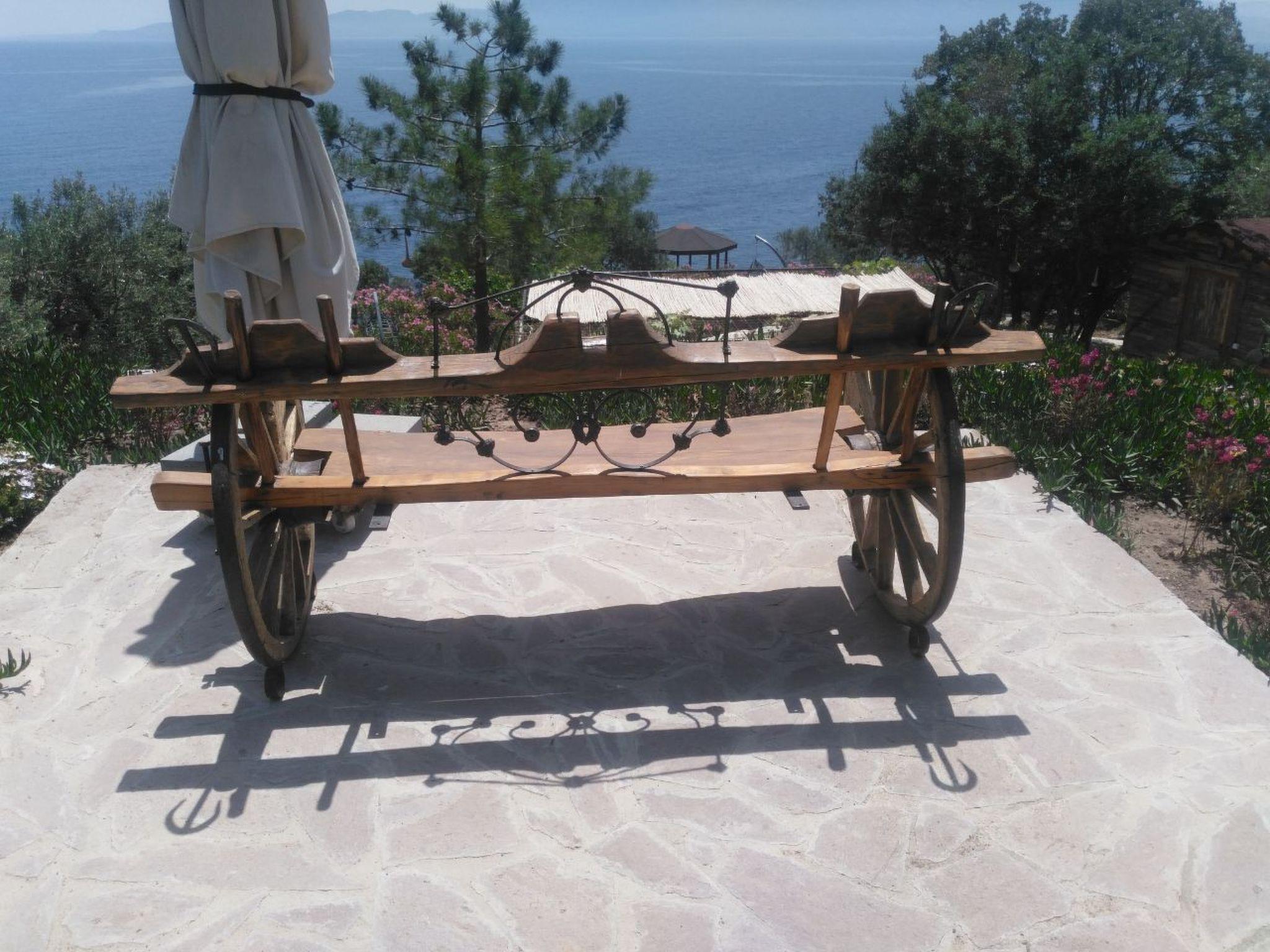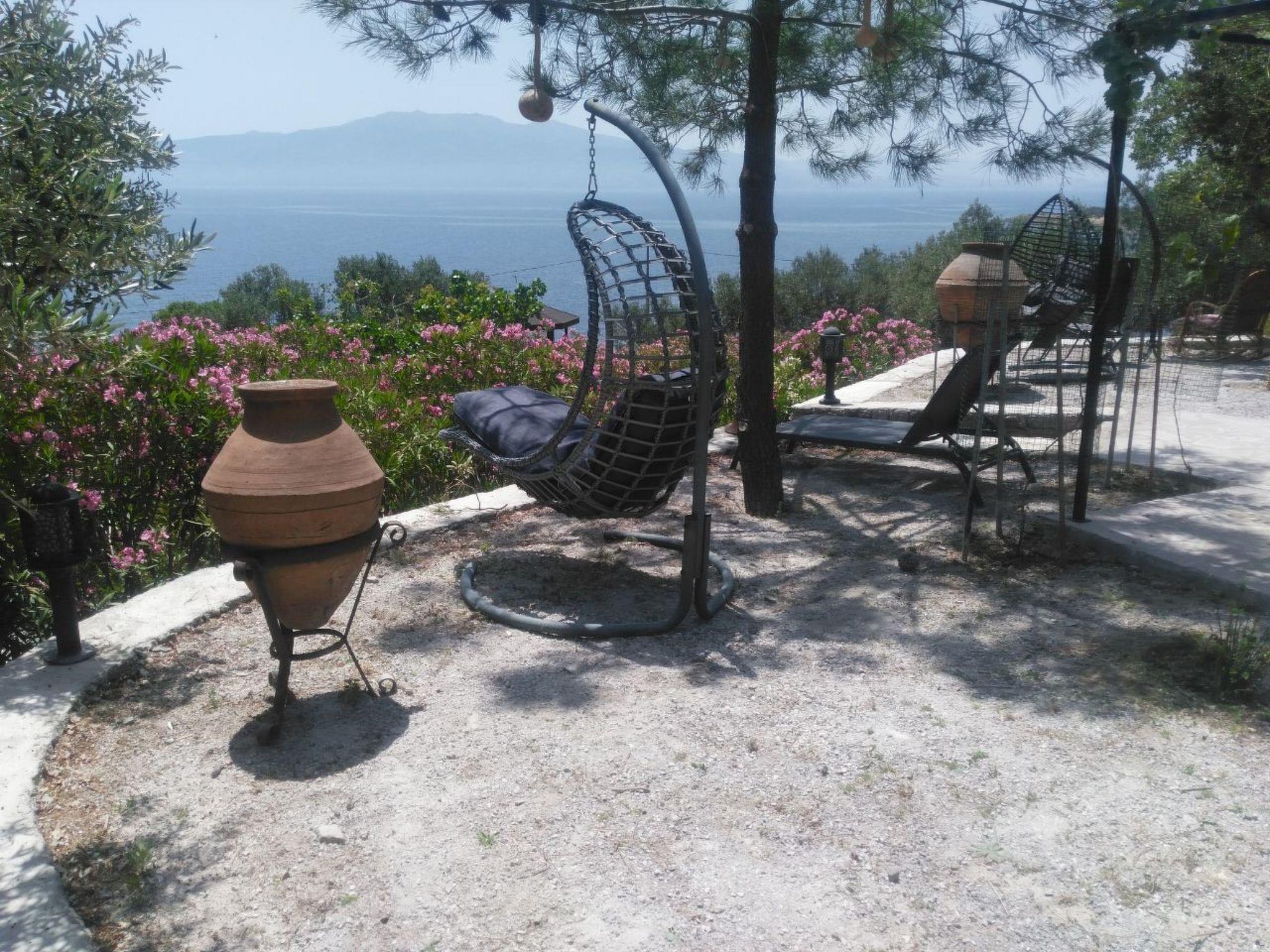 The house is situated in rural surroundings directly on the North Aegean coast opposite the Greek island of Lesbos (12km), which has a fantastic view. It is situated on a large, very well-kept olive grove (21000 square metres) in a secluded location. The sea is the Aegean Sea with the sub-name "Gulf of Edremit" Sivrice is a small peninsula on which a distinct individual tourism has developed in recent years, especially by residents of Istanbul. As there is no mass tourism, nature has retained its outstanding beauty. About 10 kilometres to the east lies the ancient Greek city of Assos, whose ruins are of impressive beauty. The ancient harbour of Assos is well worth a visit.