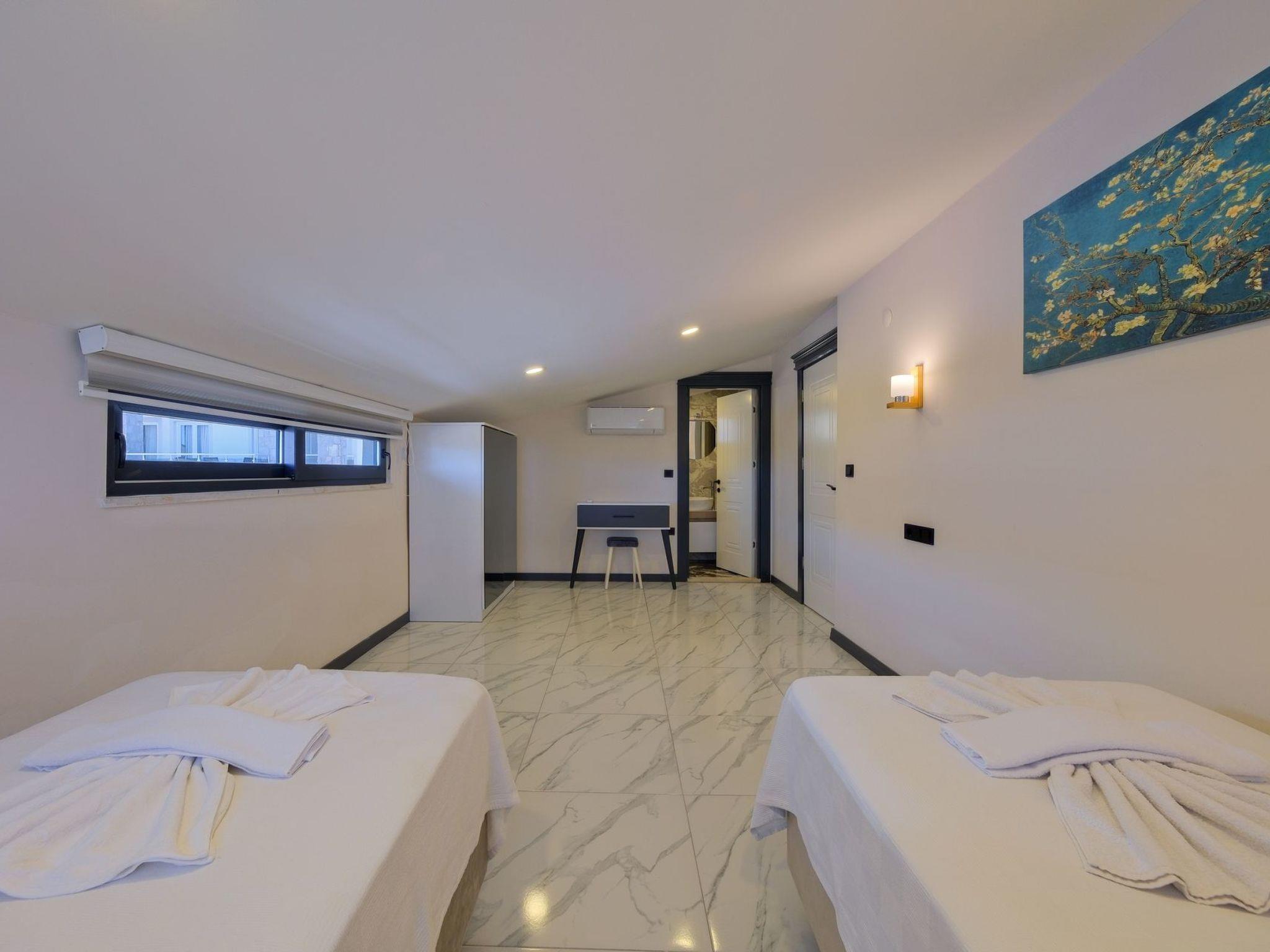 Discover the ideal holiday home in the picturesque landscape of Ölüdeniz, Anatolia, which promises an incomparable holiday experience with its facilities and atmosphere for up to 8 people. Each of the four bedrooms is carefully furnished to ensure a comfortable stay. Fully equipped with air conditioning in all rooms to keep you cool even in the hot summer months. For added convenience, there is a washing machine for your sole use and the kitchen is equipped with amenities such as a gas hob, coffee machine, kettle and dishwasher. The use of solar energy emphasises the sustainable concept of the house.