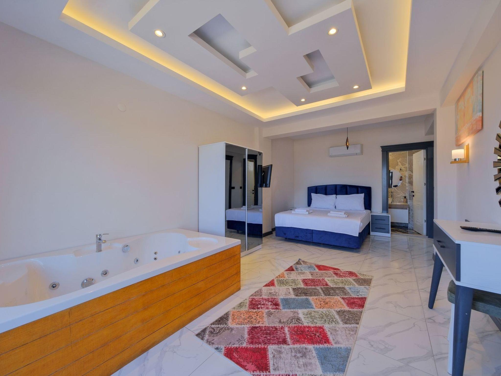 This detached holiday home in Ölüdeniz is an excellent choice not only for its extensive facilities and idyllic location, but also for its promise of comfort and privacy. The property is located on the ground floor and is therefore easily accessible. Please note that groups of young people are not permitted in this accommodation, which ensures additional peace and quiet during your stay.