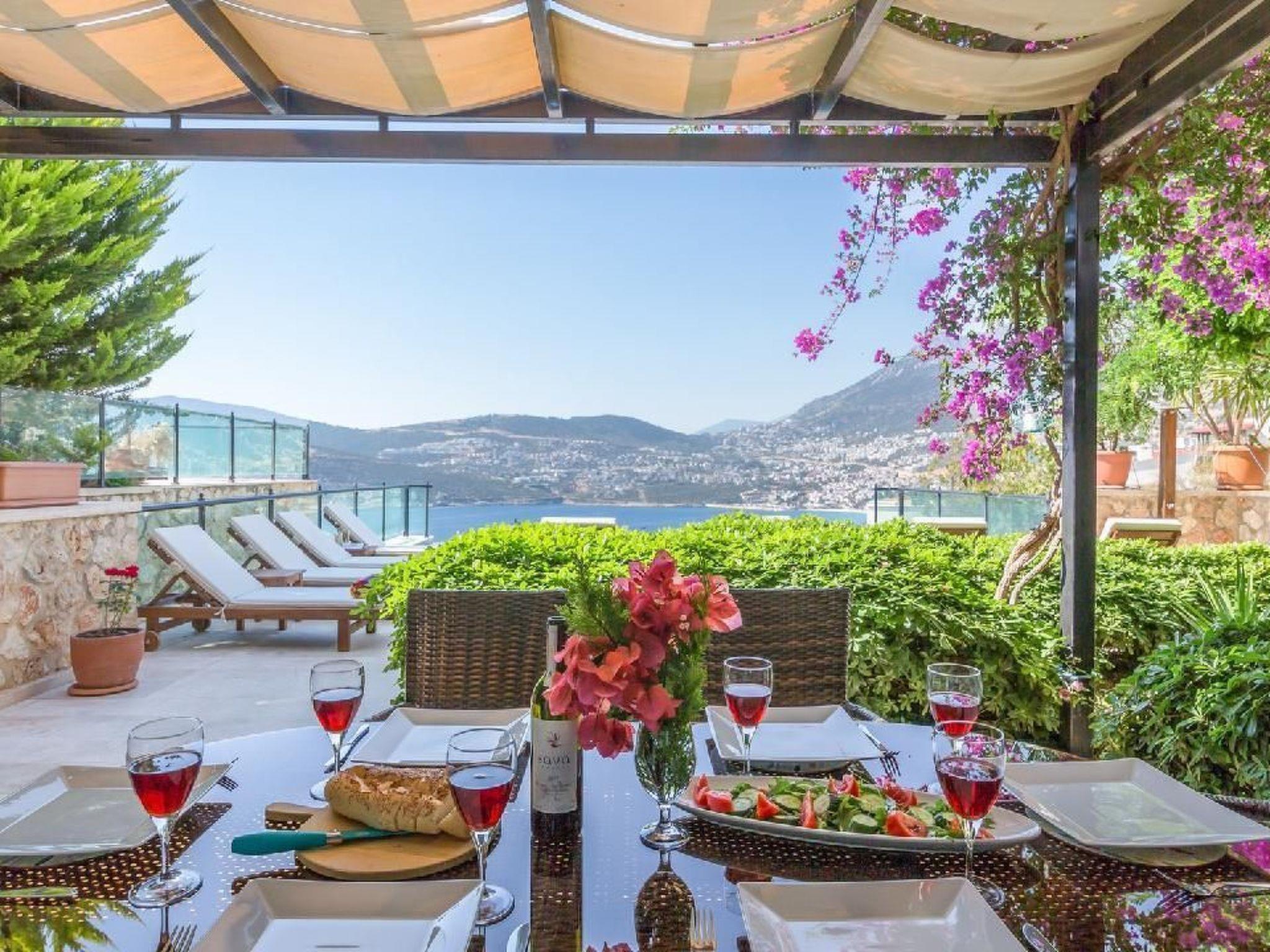 Kalkan has over 100 restaurants for dining out, from informal lunch spots to gourmet restaurants. They are generally located in the harbour area, the Old Town, the commercial parts of Kalkan, in Islamlar, a 15 minute drive into the mountains and in other remote places further afield. Close to the Villa are Fidanka in Kisla and Guru's Place and Adams in Bezirgan. The prestigious Hotel Villa Mahal is located on the sea front on the other side of Kisla and offers dining, bar and a swimming platform.