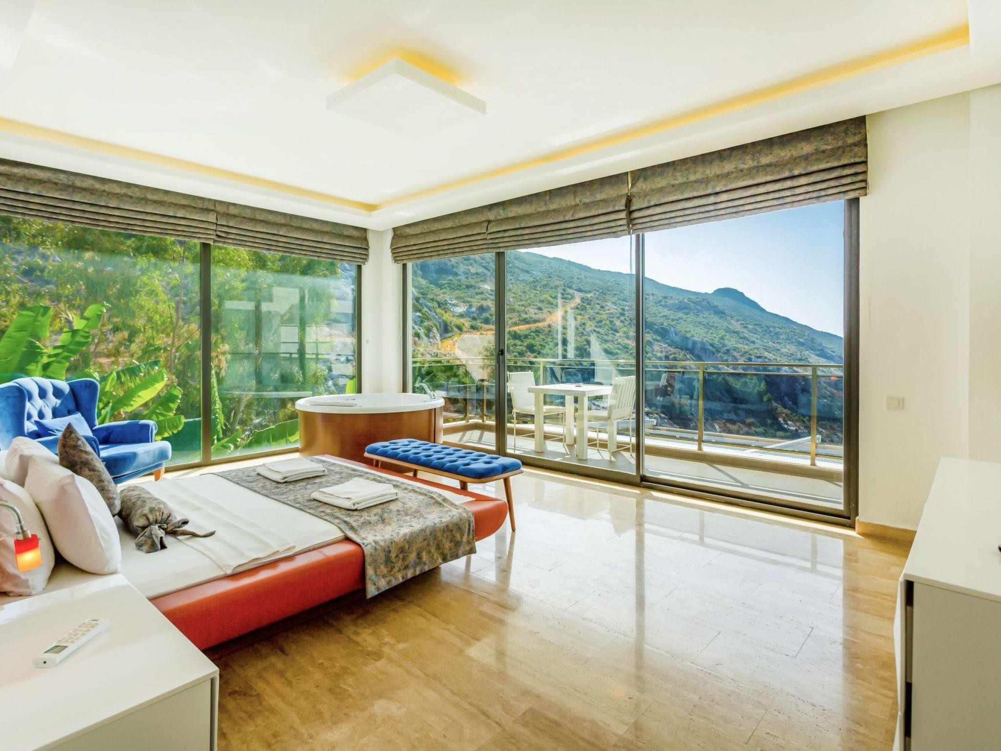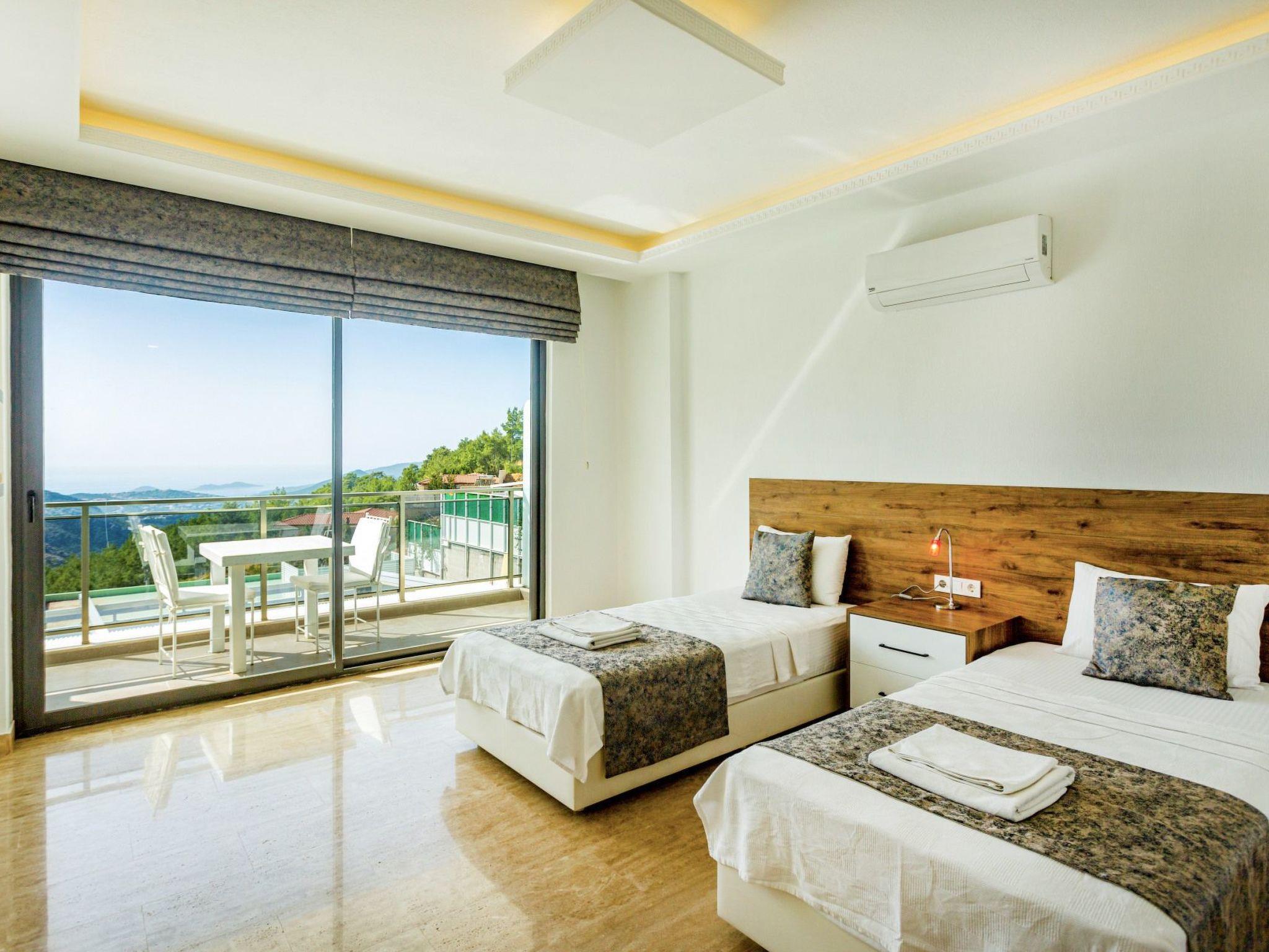 Bed rooms1. Bed room:double bed for suit family, air conditioner, wardrobe , balcony, led tv,jacuzzi2. Bed room: Teen bed room ,two single beds, air conditioner , bath, wardrob, , balcony, ledtv,jacuzzi are availableBath towel, hand towel and beach towel are available in each villa. Towels are prepared in advanceand included in the rooms.Iron, ironing board, hair dryer, teapot, barbeque/ charcoal burner are available in each villa.HallHall with sea and nature landscape , sitting group, six-person dinner table , satellite receiver, andtv(led) and air conditioner are available.KitchenAmerican Kitchen designed as large, spacious ,and modern, refrigerator, dish washer, washingmachine,stove, quartet oven (embedded) , microwave oven, electric water heater (kettle), pan,saucepan etc. kitchen equipments, and six-person dinnerware are available.Pool and Garden Large sunbathing area with private swimming pool and garden are available in each villa. 6 sunbedsand umbrellas, six person dining table,sitting group, barbeque are available. Pools are collapsibleheated.Pool SizeWidth: 3,5 mt/ Length : 10 mt / Depth: 1,40mtCleaning and Care Villa is delivered to you , and cleaned for two times a week, if you request an extra cleaning ;cleaning (including new bed sheet, pillow case ) are performed by our attendants as chargeable.
