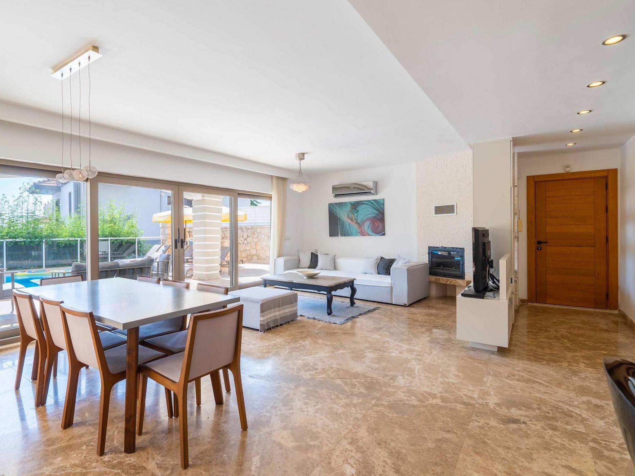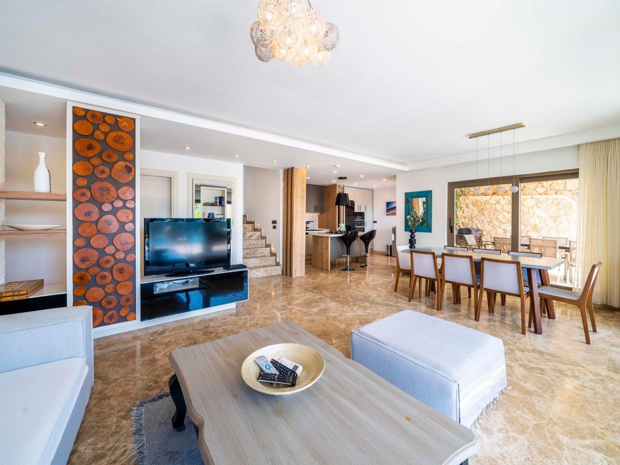 This luxurious villa in the heart of Kalkan can accommodate up to 10 people and is ideal for large families or several families of friends who want to spend an unforgettable holiday together. The villa is characterised by a modern, stylish design and offers spacious living areas that invite you to relax and get together.