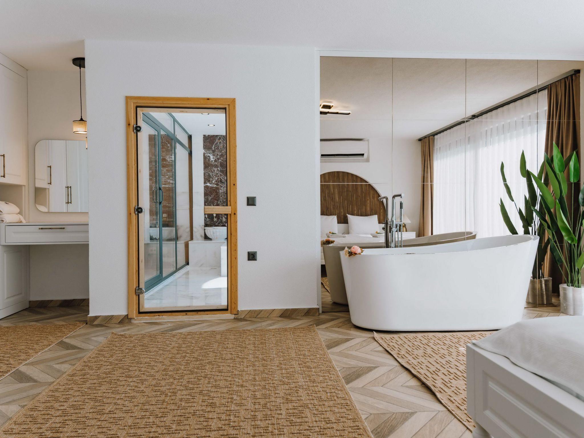 Despite its sheltered location, the villa is only a few minutes away from the centre. There is also a jacuzzi, sauna and hammam at your disposal - ideal for relaxing with your family or loved ones. The world-famous Kaputas beach is only 10-15 minutes away by car. The proximity to nightlife and attractions makes Villa Sea Nest a very special holiday destination.