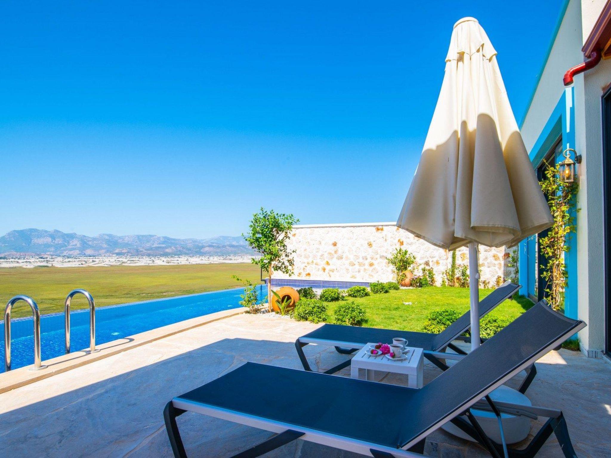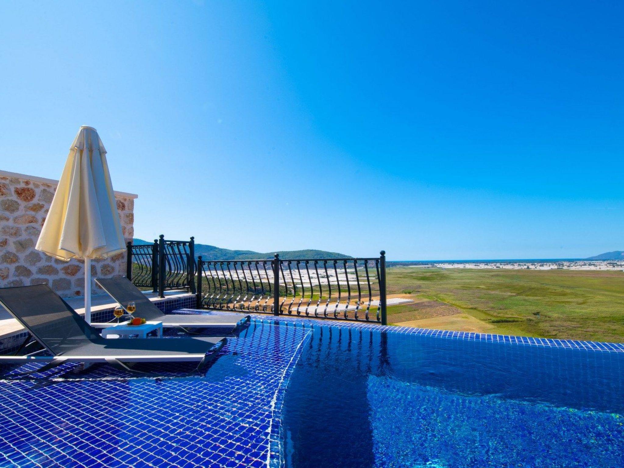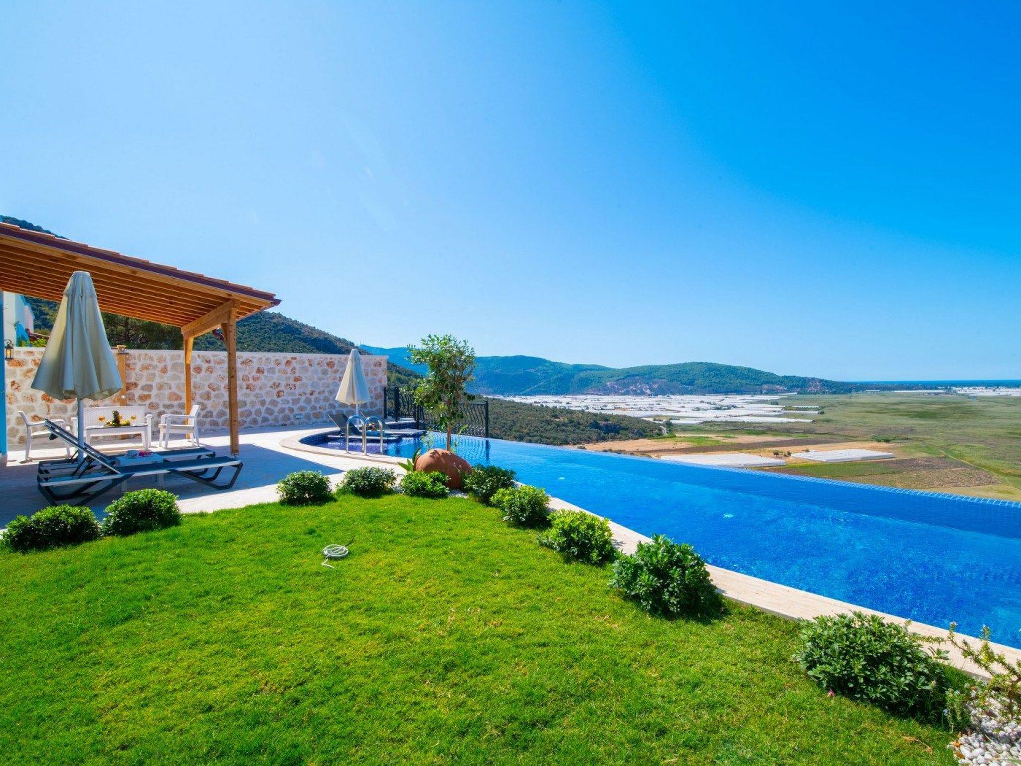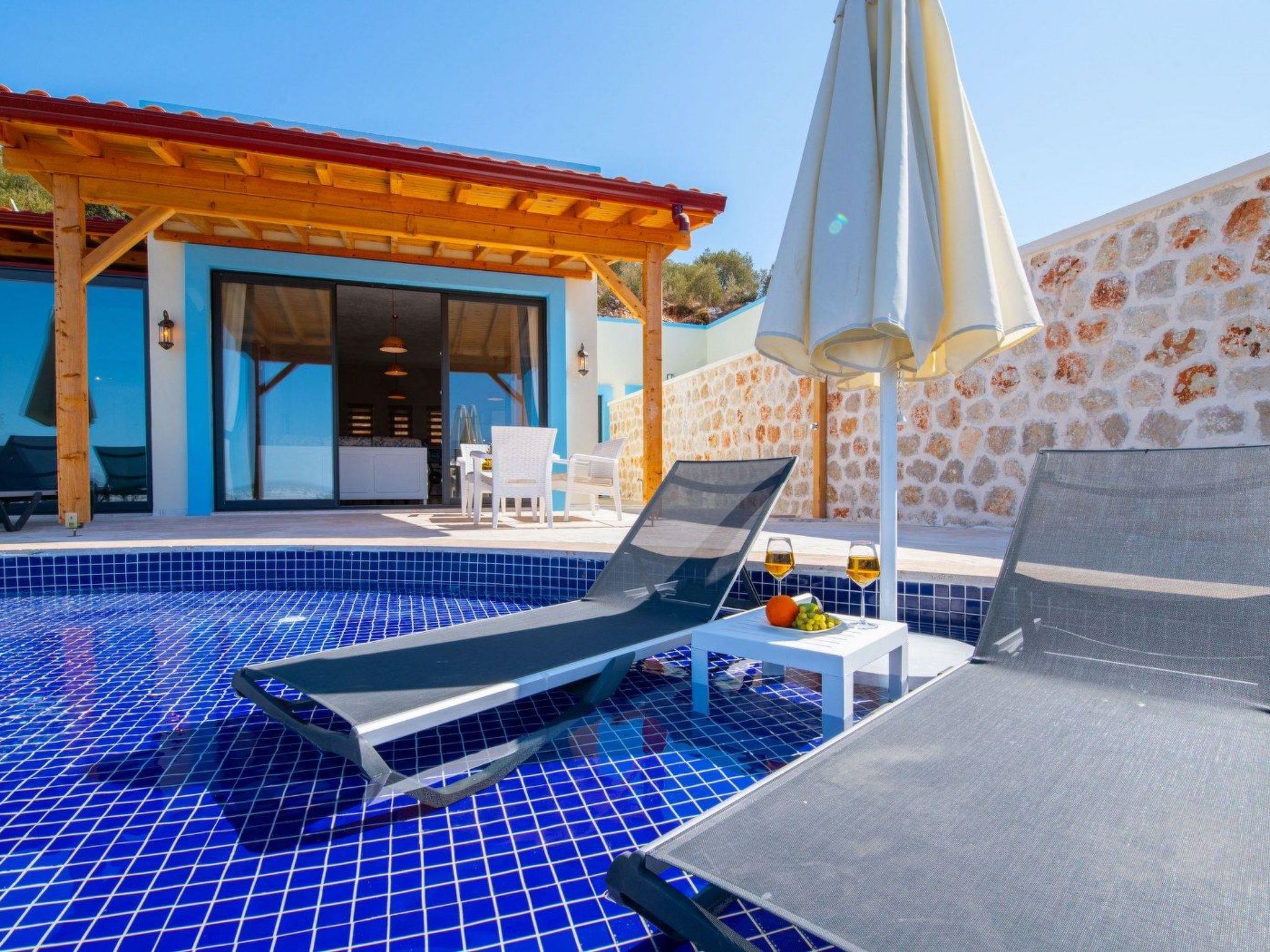 The accommodation is located in the Yesilköy area of Kalkan. It can accommodate up to 4 people and has 2 bedrooms. The villa is equipped with an indoor pool and a sauna. All necessary amenities for daily use are available. Enjoy your holiday on the pool terrace with a view of nature.