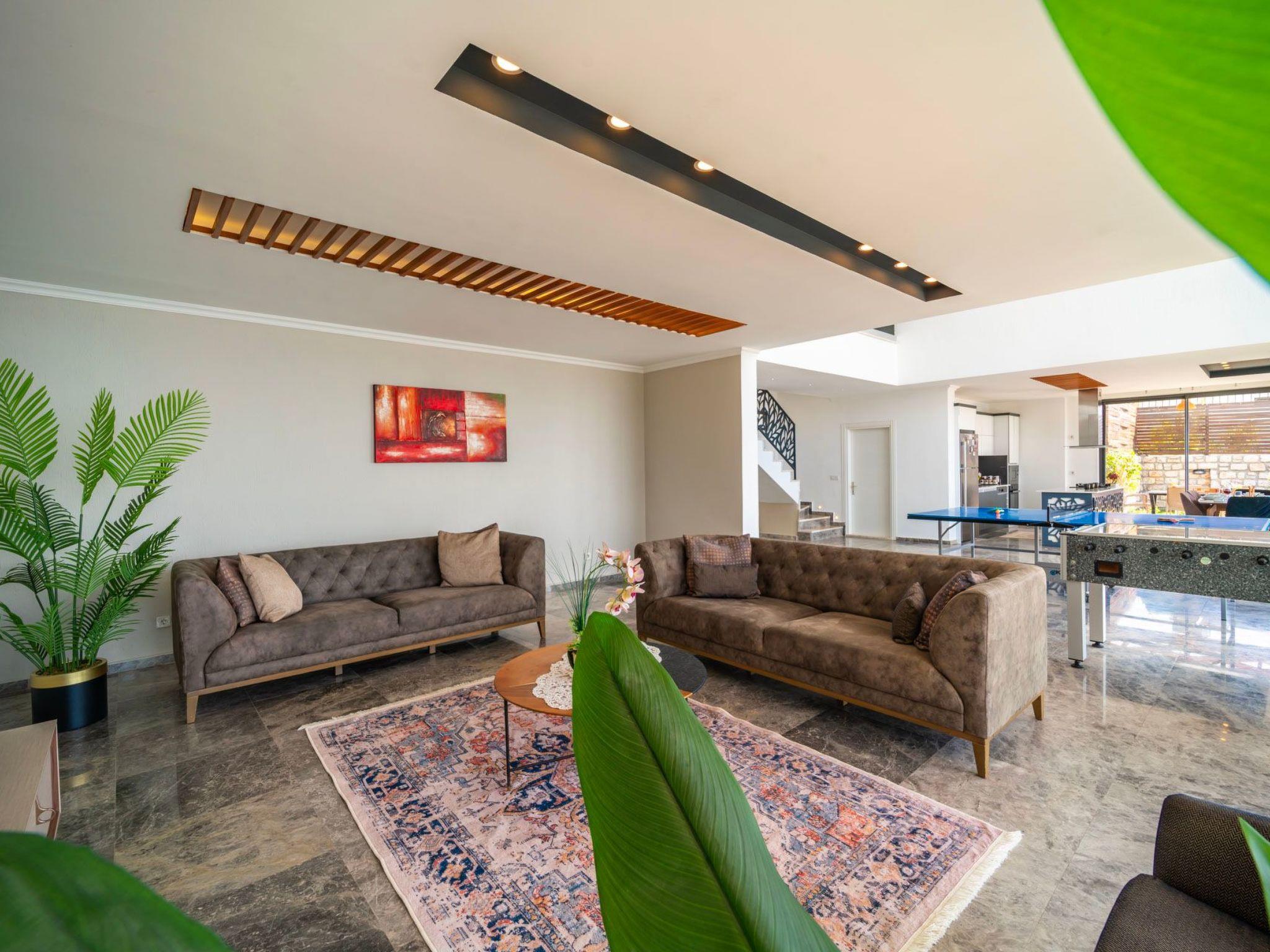 Our holiday home in Kalkan not only offers stunning scenery and a fully equipped interior, but also a range of leisure activities for all ages. Whether you want to relax in the infinity pool, enjoy the tranquillity of the garden or experience exciting moments playing table football and table tennis, you'll find the ideal place to retreat and make precious memories with your loved ones. Immerse yourself in a holiday experience that focuses on peace and relaxation.