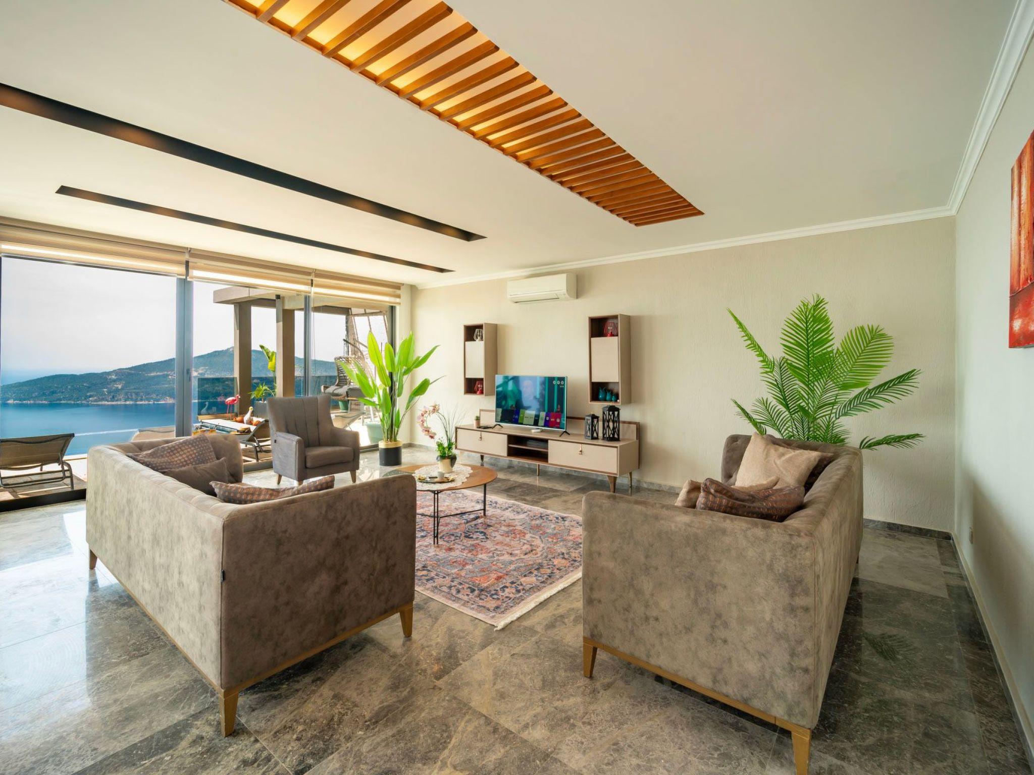 Our villa is situated in an idyllic location in Kalkan, just 4000 metres from the nearest beach, where the deep blue sea invites you to explore. The centre of Kalkan, also only 4000 metres away, offers a selection of charming restaurants, cafés and shopping facilities. For your daily needs, you will find a grocery store just 1000 metres away. Please note that the last 700-800 metres of the access road have a steeper incline, which only adds to the charm of this secluded retreat.
