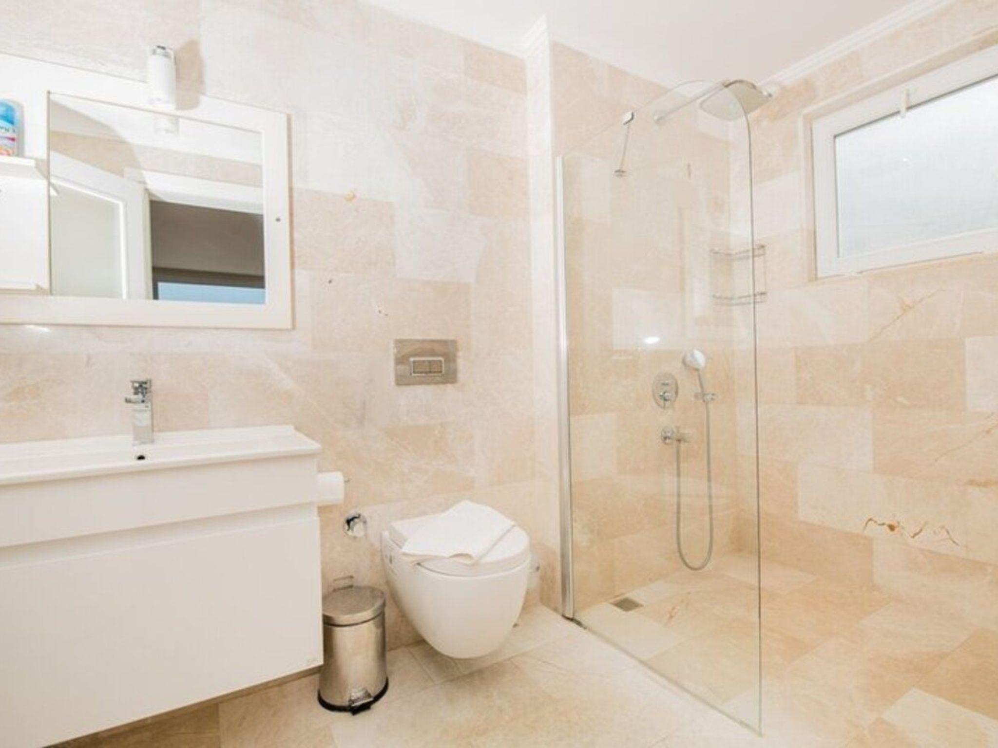 Inside the house, a fully equipped environment awaits you, ensuring that you will not miss anything during your stay. The air conditioning system ensures pleasant temperatures in all rooms, while the gas hob, dishwasher and kettle make self-catering a breeze. A washing machine is also available for your sole use, adding to the convenience during your stay. Three bedrooms offer enough privacy for all guests, and the three bathrooms, equipped with shower and bathtub, round off the offer.