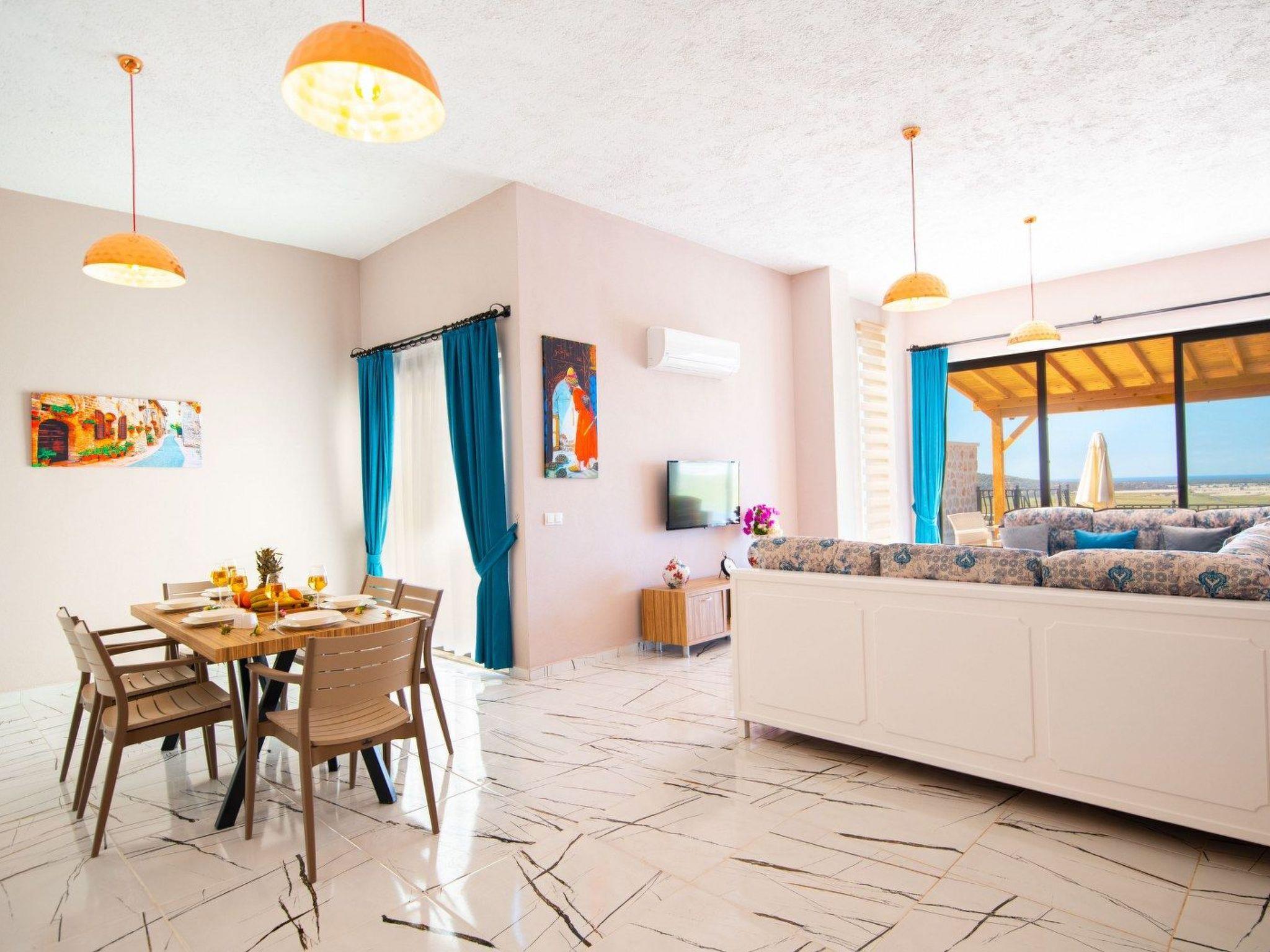 The accommodation is located in the Yesilköy area of Kalkan. It can accommodate up to 4 people and has 2 bedrooms. The villa is equipped with an indoor pool and a sauna. All necessary amenities for daily use are available. Enjoy your holiday on the pool terrace with a view of nature.