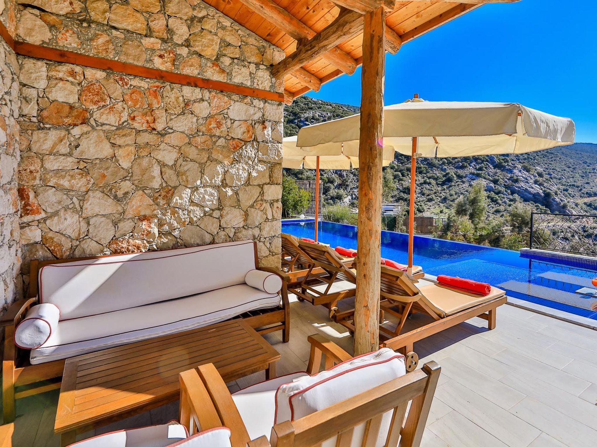 Enjoy the peace and serenity of Kas Kalkan Islamlar in our inviting natural stone villa, a place where you can savour the beauty of nature to the fullest. Experience unforgettable moments and leave everyday life behind you as you indulge yourself in this charming retreat.