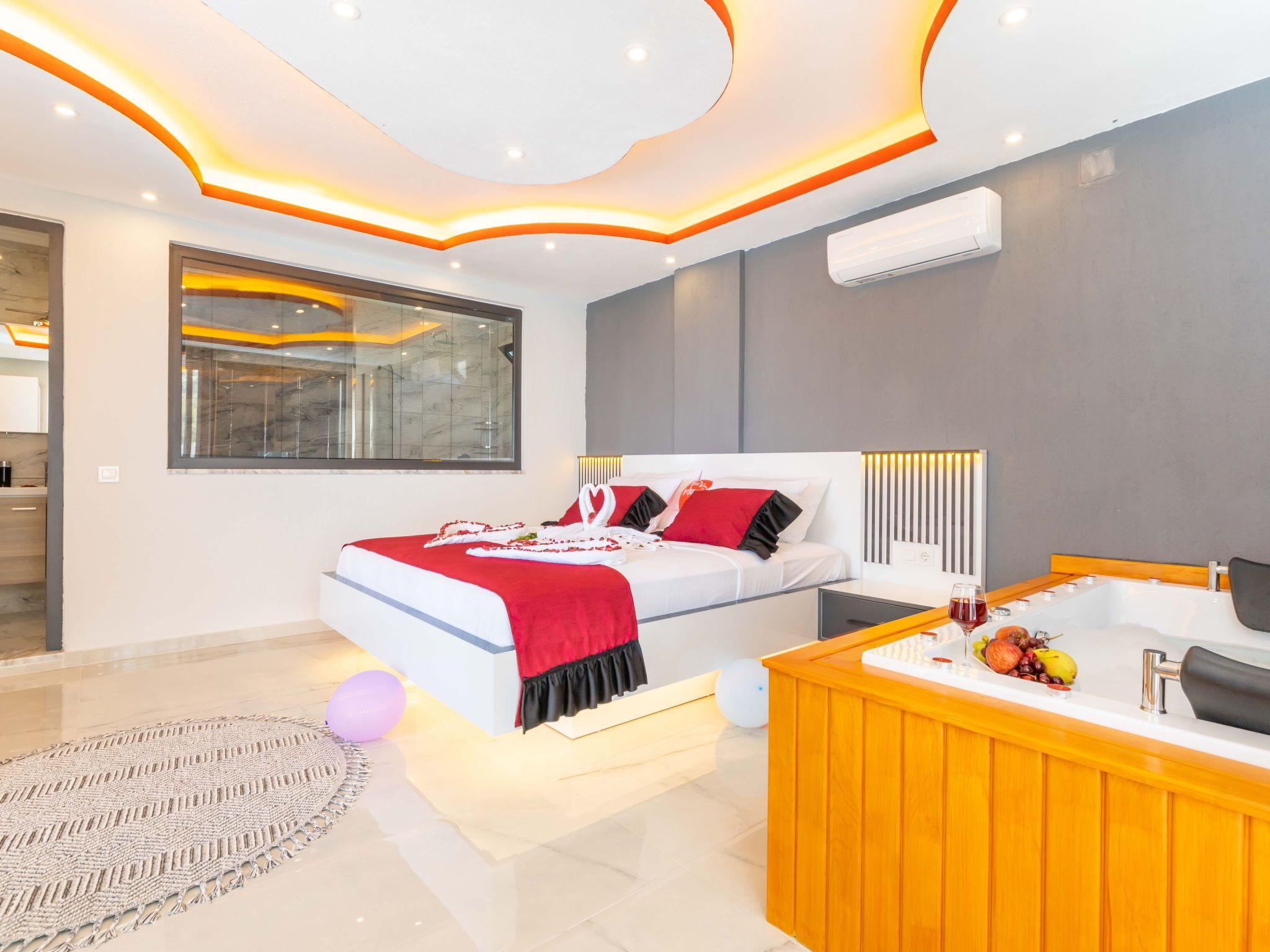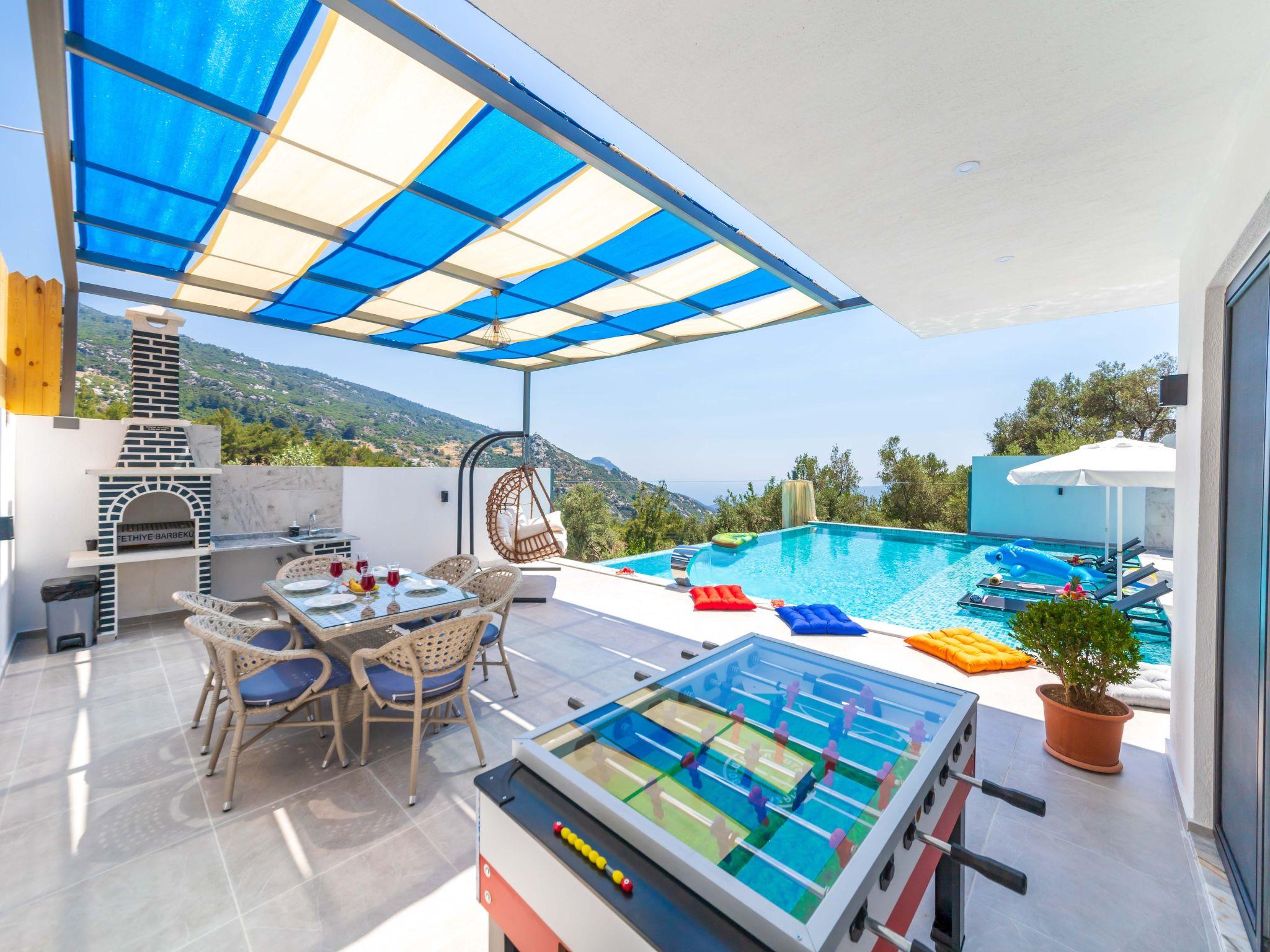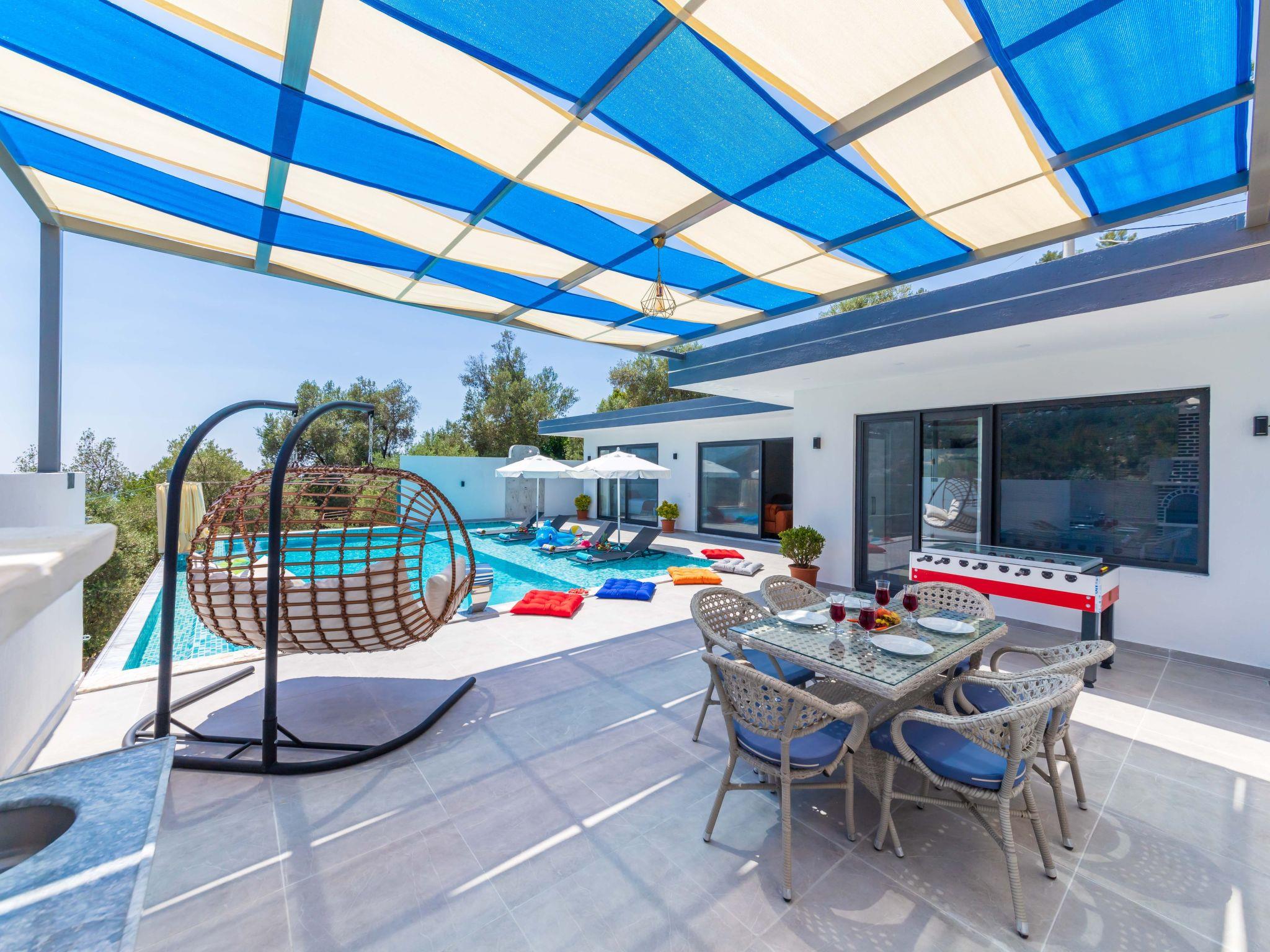 The area surrounding the holiday home offers an incomparable blend of natural beauty and local charm. The nearest beach is 9000 metres away and invites you to enjoy a relaxing swim under the Anatolian sun. For everyday needs, there is a grocery store just 1000 metres away. Exploring the surrounding area is particularly recommended in a hire car due to the hilly and sometimes uneven roads of Kalkan.