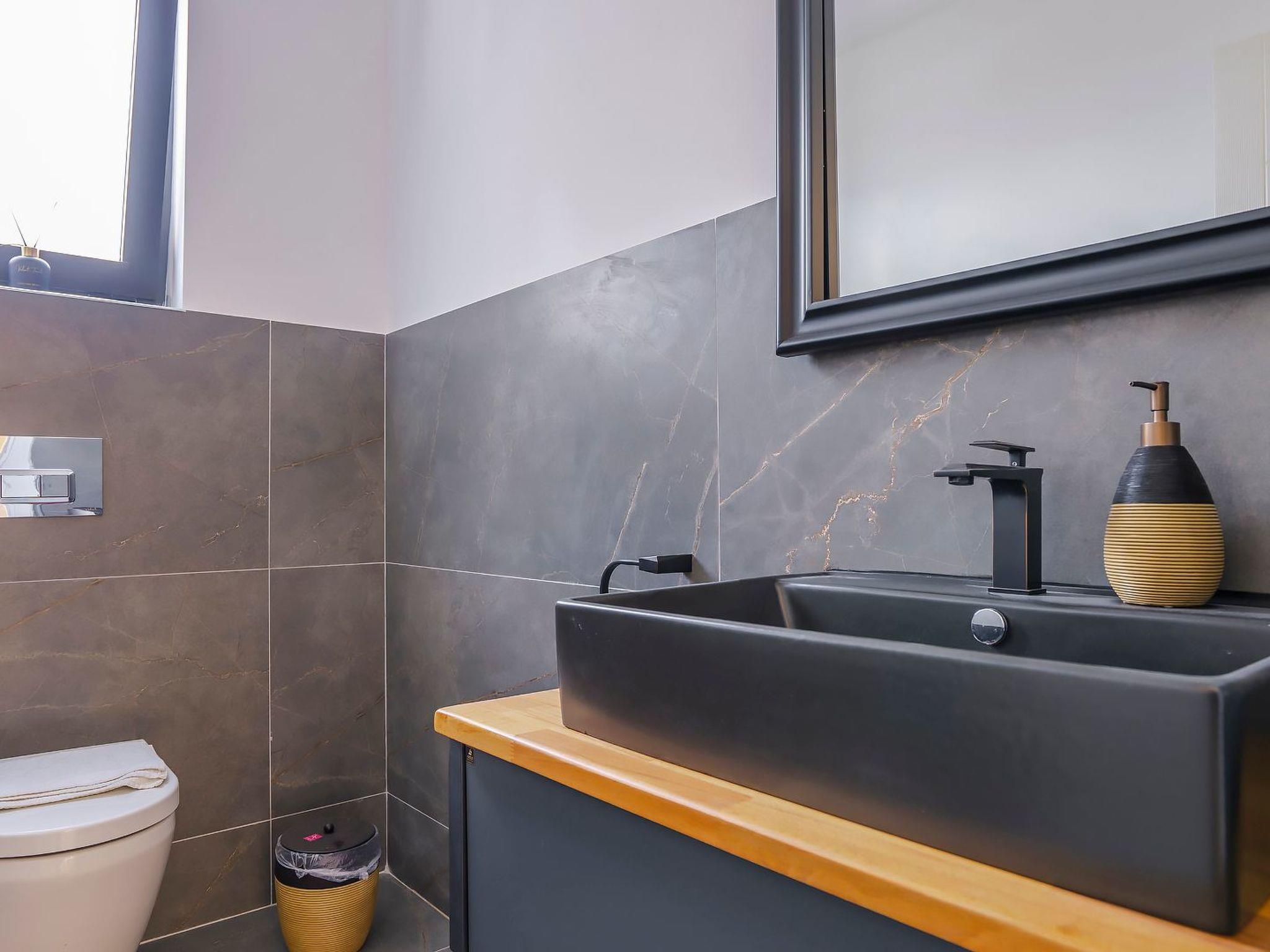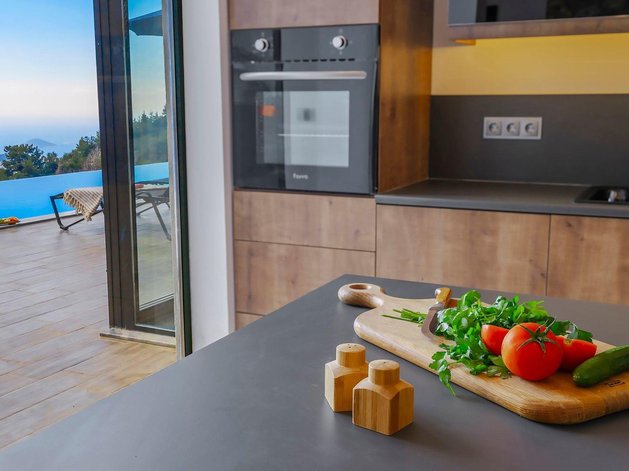 The interior of the villa is modern and stylishly designed and offers an open and airy atmosphere. The kitchen is fully equipped and offers everything you need to cook and enjoy delicious meals. The living room is comfortably furnished and offers a cosy atmosphere where you can relax and enjoy your favourite movies on the flat screen TV.
