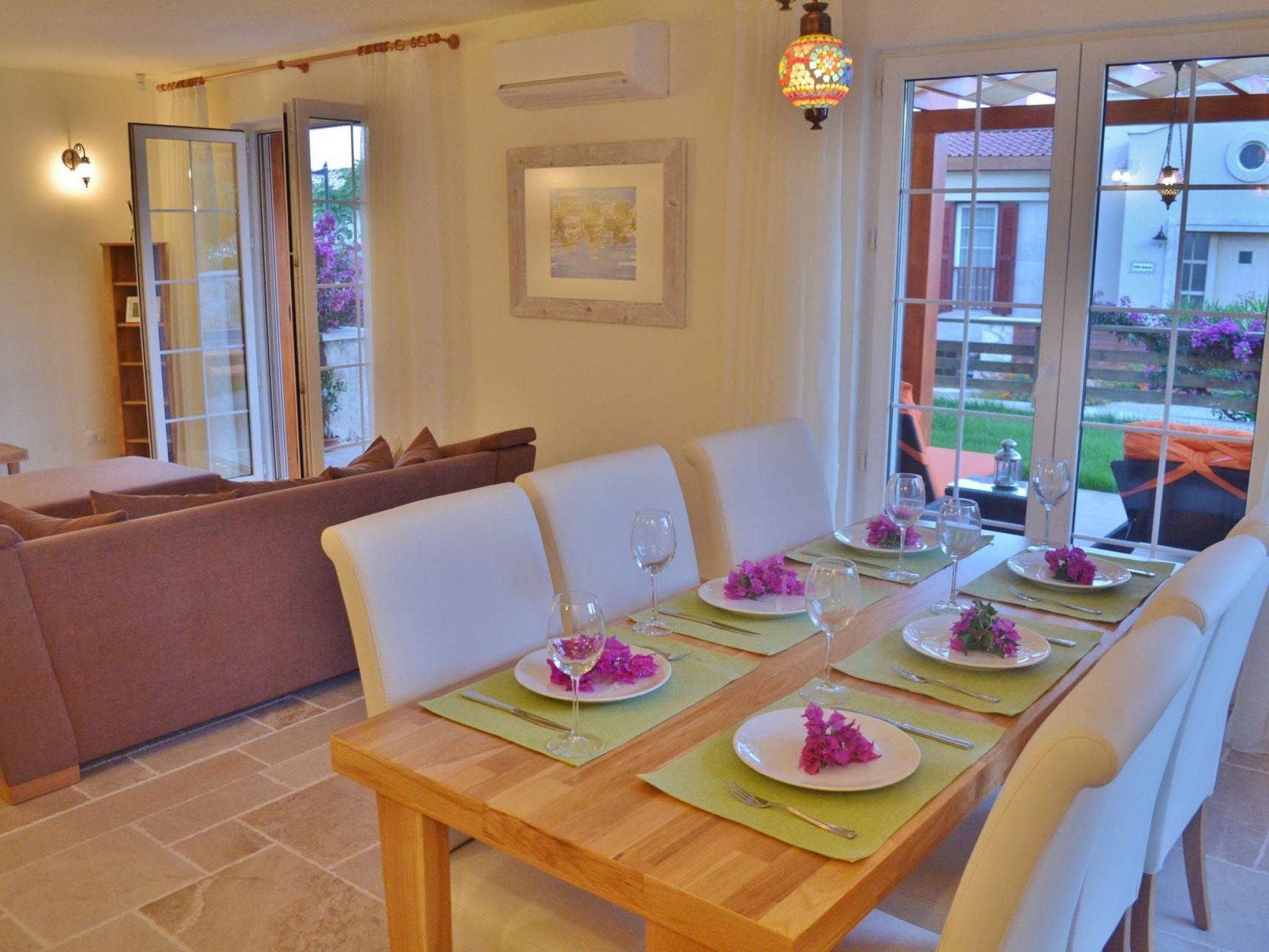 Inside, the holiday home has all the amenities you need to make your stay pleasant and carefree. This includes not only three cosy bedrooms that can be perfectly darkened for a restful night, but also two modern bathrooms with shower. Air conditioning in all rooms ensures a pleasant indoor climate even at high temperatures, while the washing machine, gas cooker, dishwasher and kettle, which are available for exclusive use, complete the comfort. The use of solar energy emphasises the environmentally friendly concept of this house.