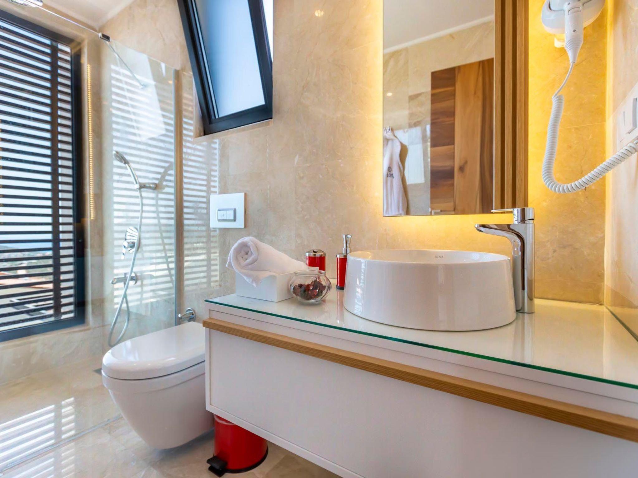 In a prime location in Kalkan, this holiday home is just a short walk from the charming town centre, where you can discover local restaurants, cafés and boutiques. The proximity to the beach and the sea (both approx. 1500m away) allows you to experience the beauty of the coastal region at first hand. There is also a grocery store just 500m away, making self-catering on holiday easy.