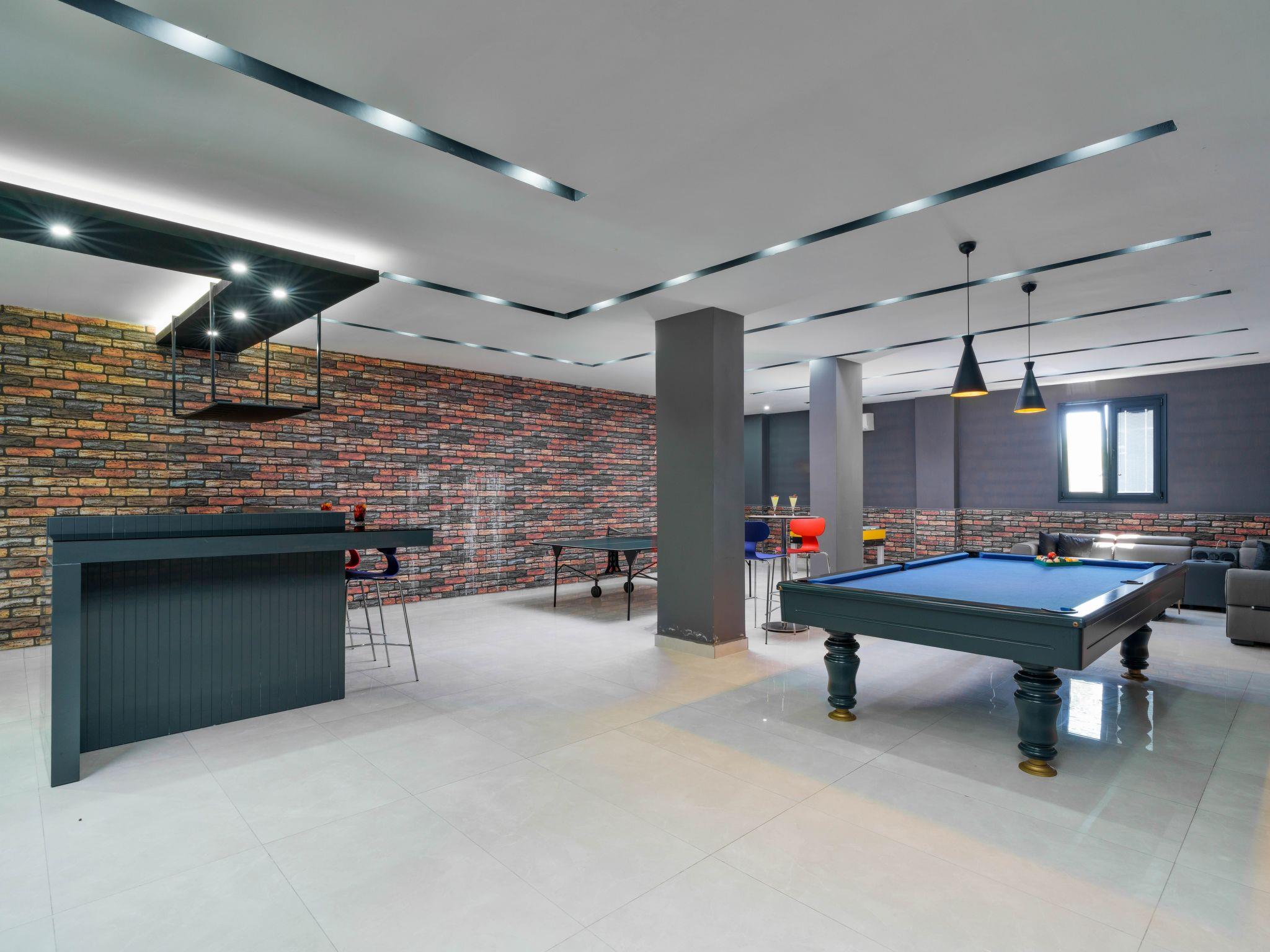 Inside, comfort is paramount: The house offers four well-designed bedrooms, each equipped with the option to completely darken the room to ensure a restful night's sleep after an eventful day. Each bedroom has an en-suite bathroom with shower for added privacy and comfort. For entertainment, there are games such as billiards and a table tennis table. Thanks to the air conditioning throughout, a pleasant indoor climate is ensured even on warmer days. The sauna, Turkish hammam and indoor pool are also available for relaxation.