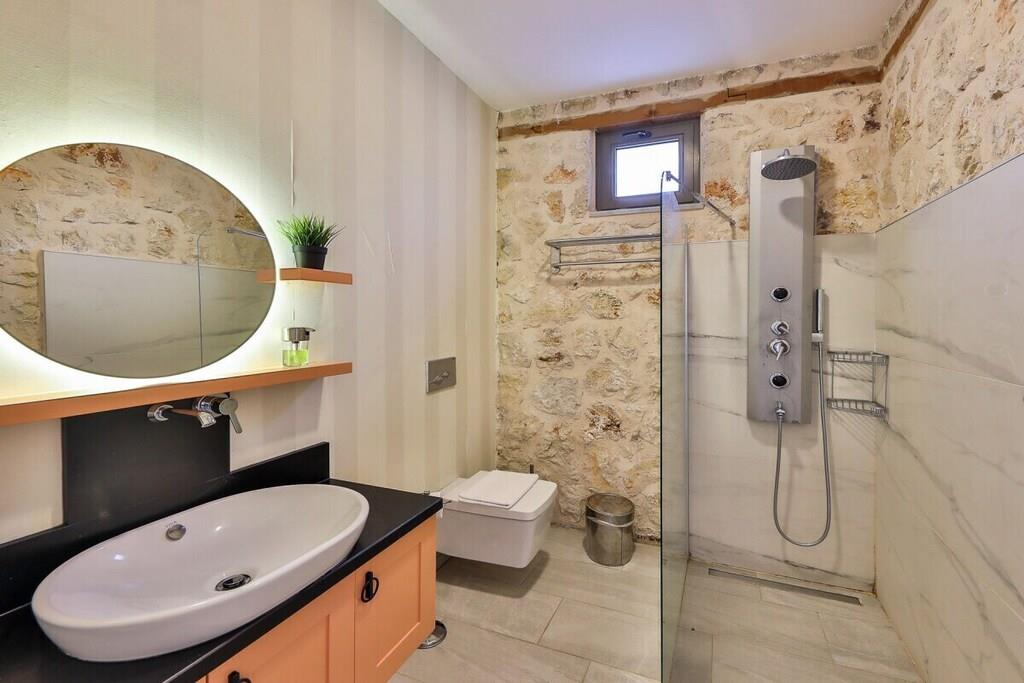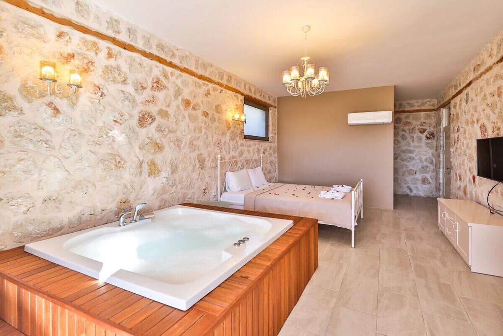 The Ime rental villa is located in the Islamlar district of Kalkan and offers unique views of nature. Built from natural stone, Villa Horizont offers a pleasant vacation with its impressive interior design and comfortable layout. It has 3 bedrooms and can accommodate up to 6 people. Surrounded by natural trees, it is secluded and offers privacy, making it ideal for conservative families and groups of friends. Villa Ime awaits its guests amidst lush greenery with breathtaking views of the islands – perfect for enjoying the sunrise. IMPORTANT INFORMATION: A rental car is highly recommended. The roads in Kalkan are partly hilly and uneven. In addition, power outages may occasionally occur during the summer months due to high temperatures.