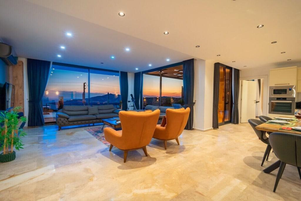 Villa Azda er en luksuriøs villa beliggende i Kalkan, Kördere, med plads til op til 6 personer. Villaen har en fantastisk havudsigt og er perfekt til en afslappende strandferie. Den har moderne møbler og alle de faciliteter, du kan ønske dig under dit ophold. Med sin nærhed til Kalkans centrum tilbyder Villa Azda også muligheden for at nyde den lokale kultur og natteliv.