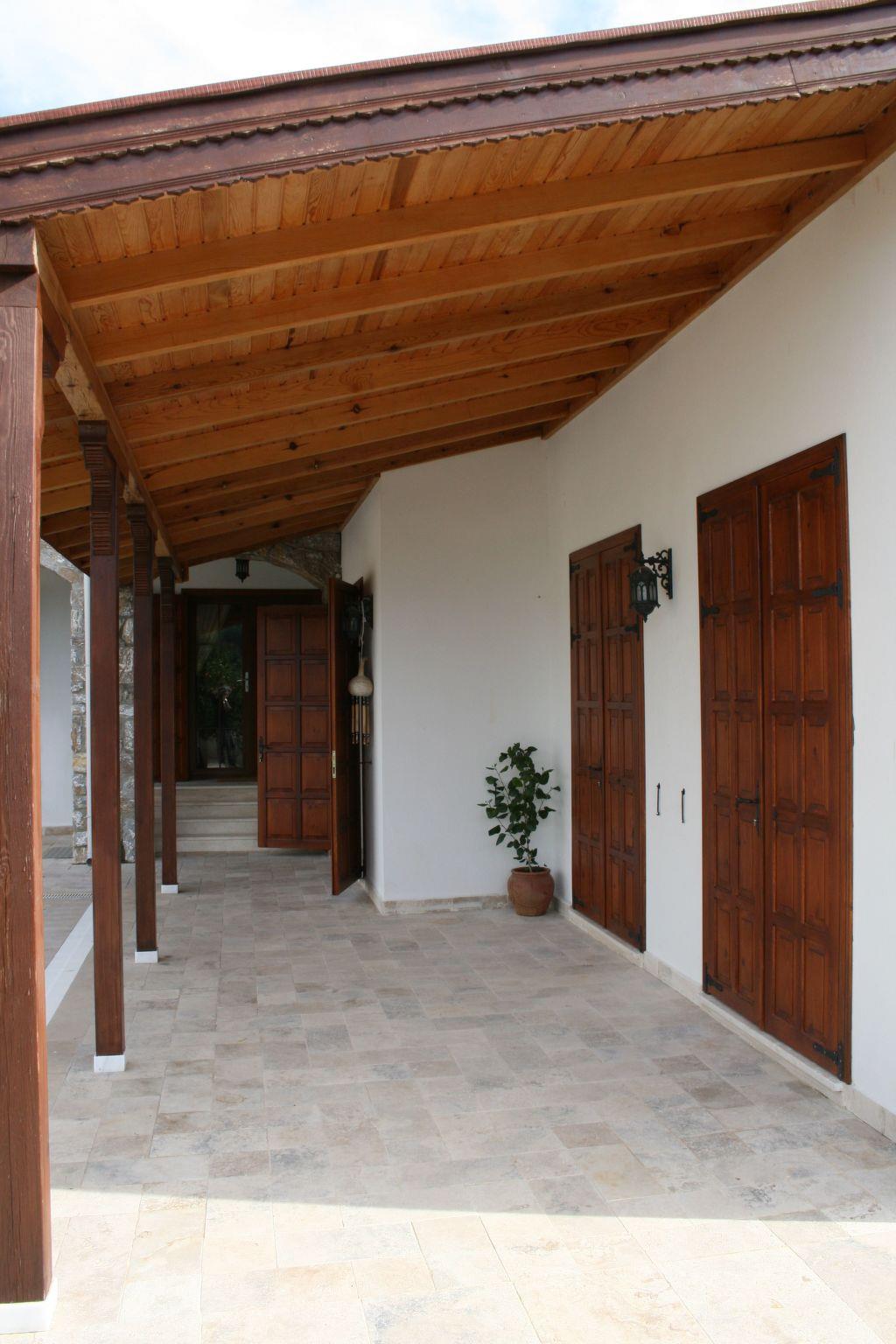 The terrace is equipped with garden furniture. There is a veranda. The property is surrounded by wall therefore suitable and safe for children. There is a swimming pool for communal use. There is a outdoor lighting . Private car parking area in the property. Also outside of the property. The Property is a detached Villa. The property is surrounded by citrus trees. For example; lemons, oranges etc.