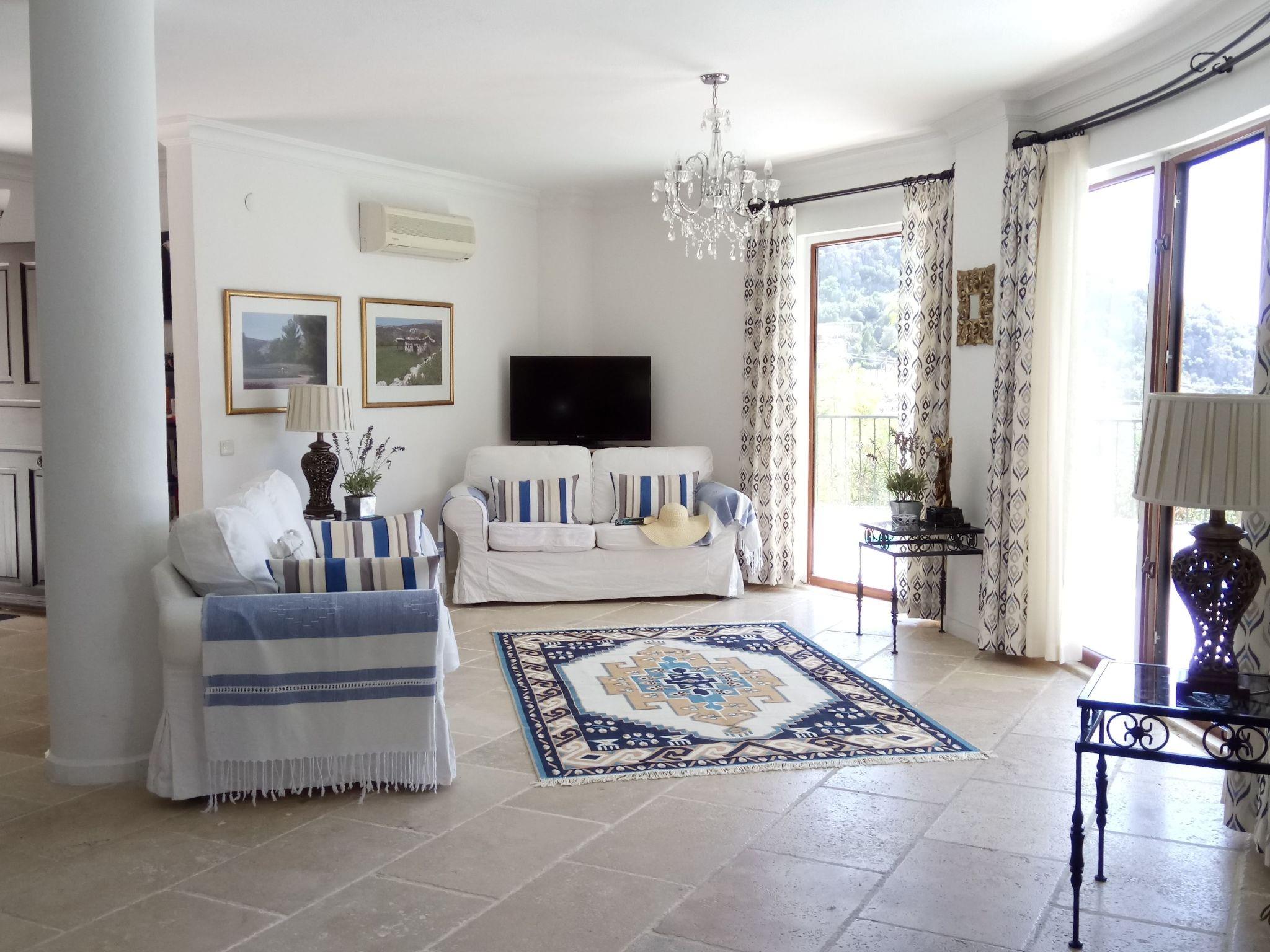 The living space of 260m² is spread across three floors and the villa sleeps up to ten guests. It has a living area, a fully equipped kitchen, five bedrooms and seven bathrooms. The large living room with an open plan kitchen leads directly to the pool area. There are two sofas, a flatscreen satellite TV, DVD and CD player, a safe and an air conditioning unit. The kitchen is equipped with a dishwasher, cooker complete with stainless steel extractor hood, oven, microwave, fridge with freezer compartment, toaster, kettle and a cafetiere for coffee. Each of the five generous bedrooms has its own en-suite bathroom, all five have only recently been upgraded to provide wet room showers. The two additional, separate bathrooms have a shower each.