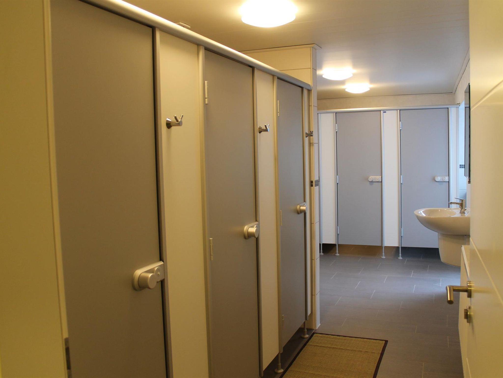 • In großzügigen, modernen Bade-/Sanitärbereichen befinden sich im OG jeweils drei, im EG zwei Duschkabinen, Toilettenkabinen und Waschplätzen,