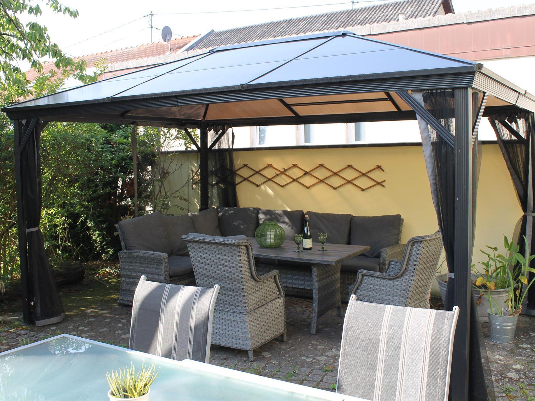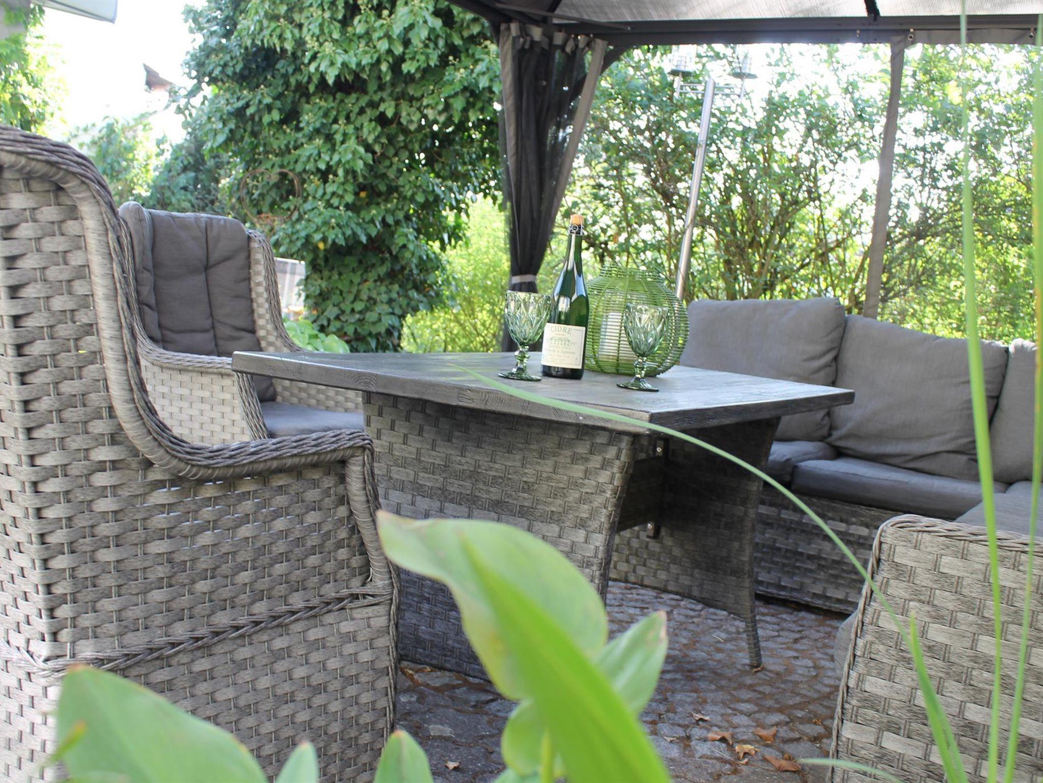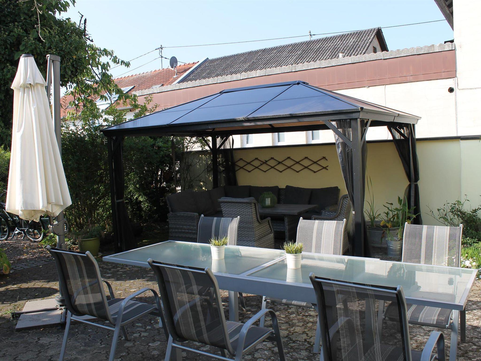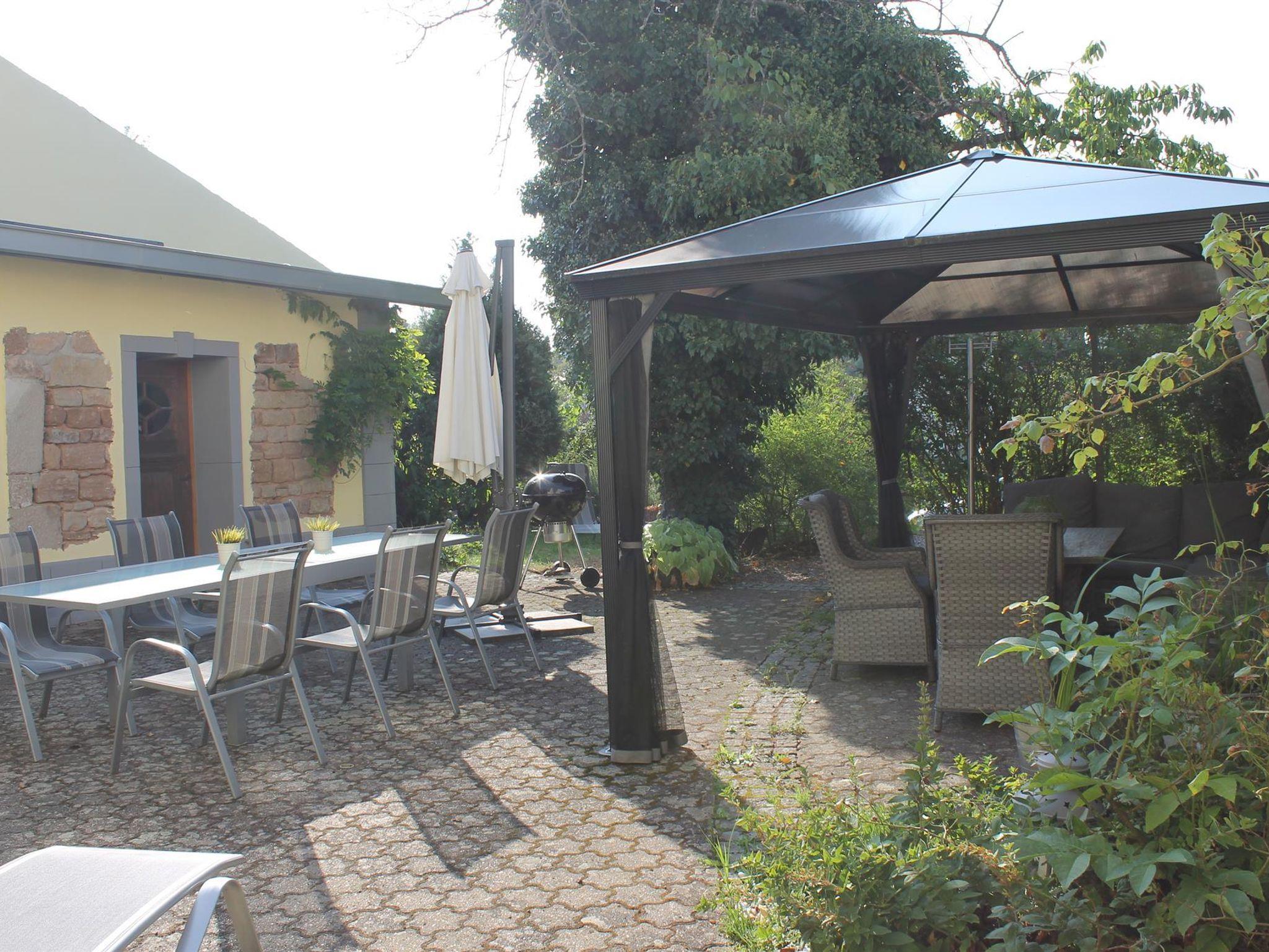 • Gartenmöbel/Liegestühle , Pavillon mit Loungegruppe, großer Esstisch und Grill sind vorhanden