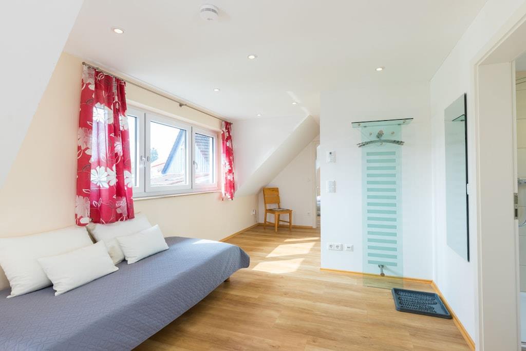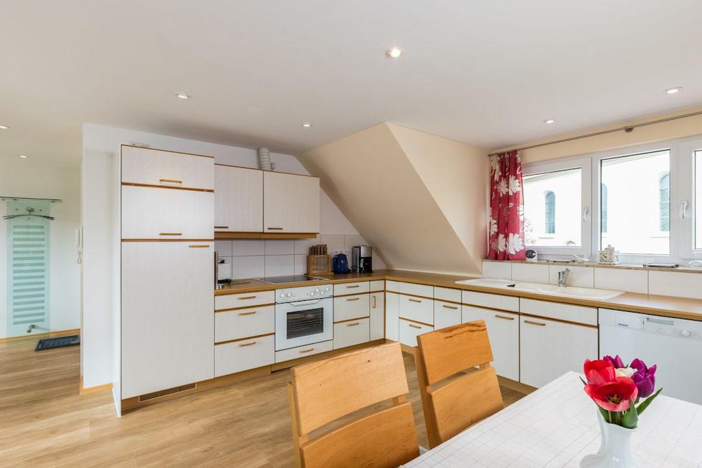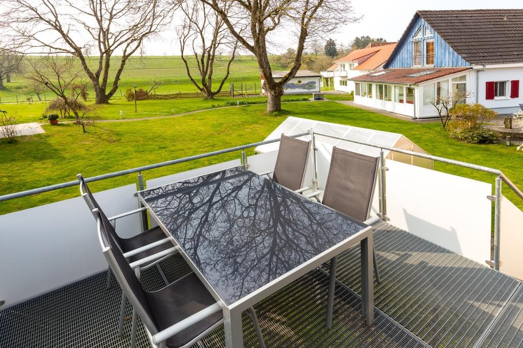 Ferienwohnung mit hellen Räumen, Komfort. Großzügig geschnittenern Wohnraum. 2 Schlafzimmer. In absoluter Ruhe können Sie so manchen schönen Abend auf dem Balkon genießen. Im großzügig geschnittene Wohnraum ist die hochwertige Einbauküche, die Essecke und das große Sofa untergebracht. Die beiden geräumigen und sehr gemütlichen Schlafzimmer mit einem Doppelbett und 2 Einzelbetten und das hochwertige Badzimmer gibt einem das Gefühl angekommen zu sein. Das Ferienhaus ist ansonsten nicht bewohnt. Der Natur nahe sein, ermöglicht den großen angrenzende Balkon mit Zugang in den Garten. Der weitläufige und gepflegte Garten schafft eine weitere Wohlfühloase.