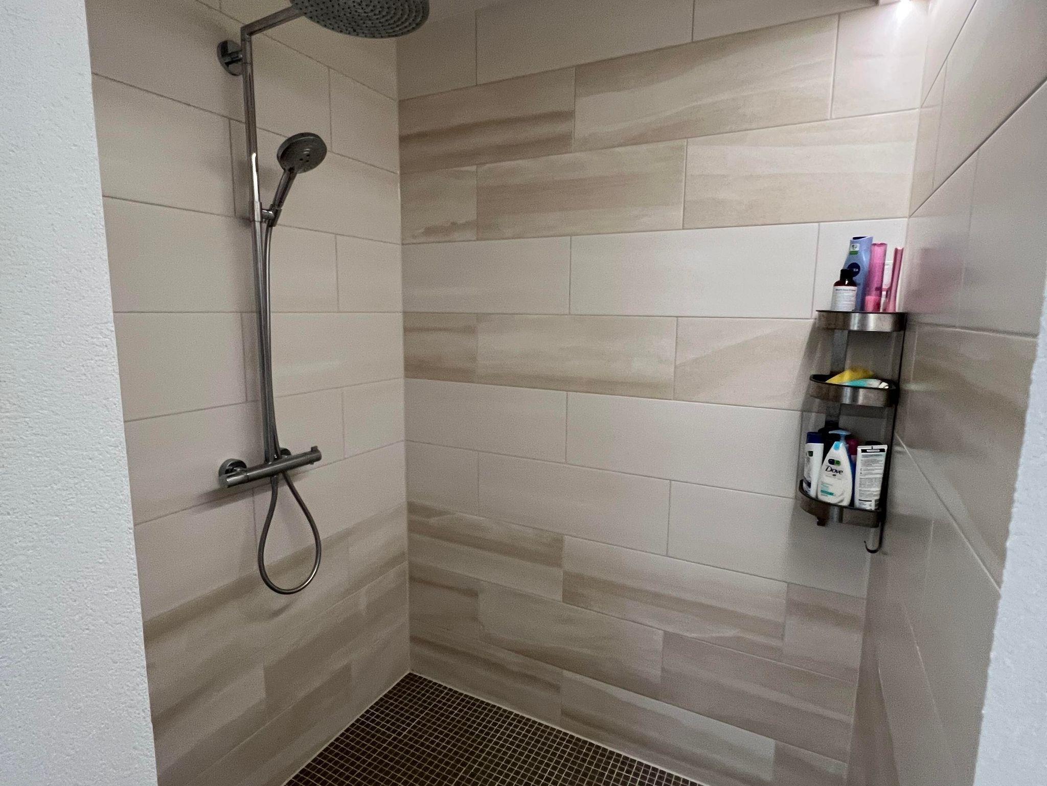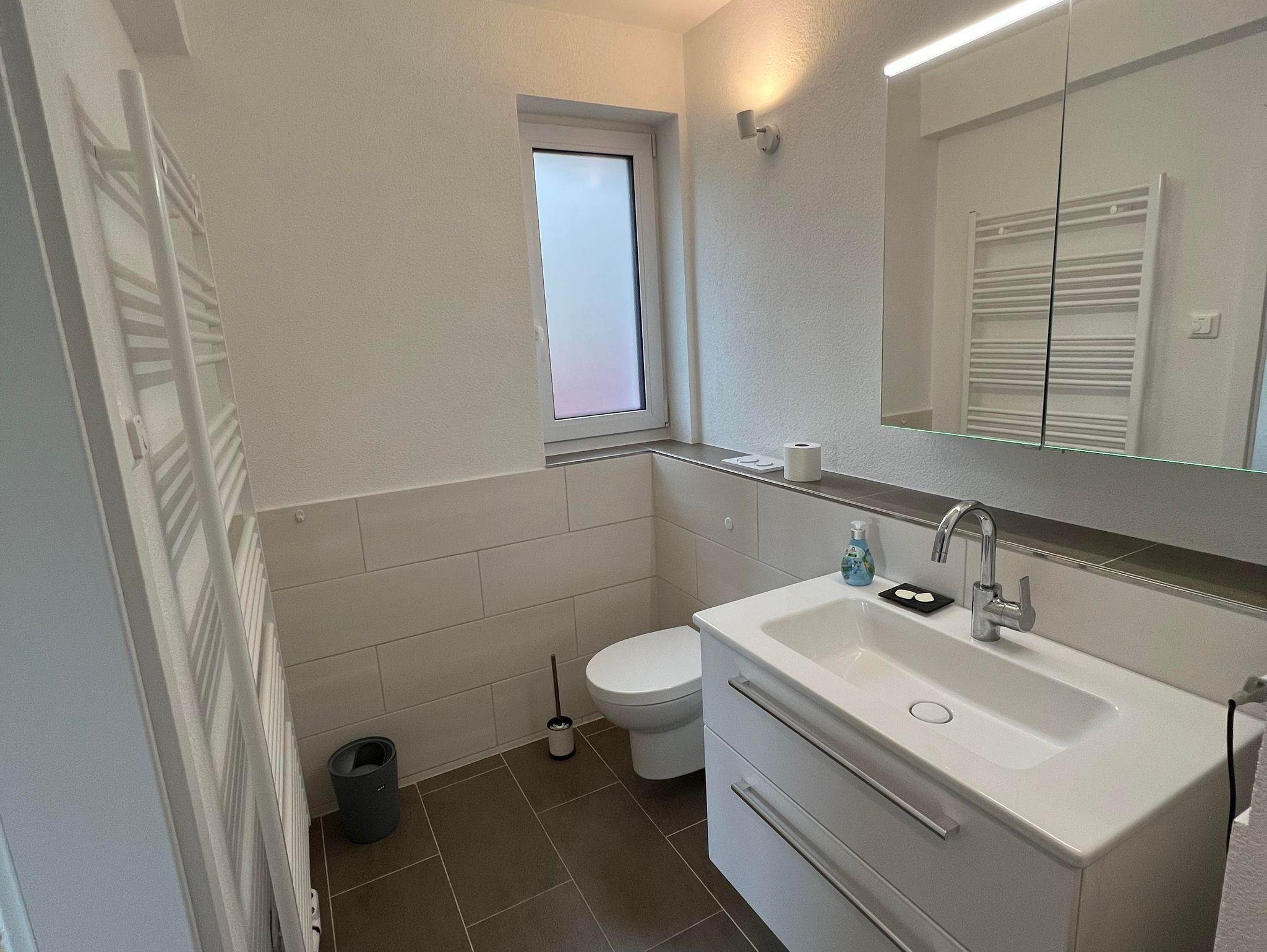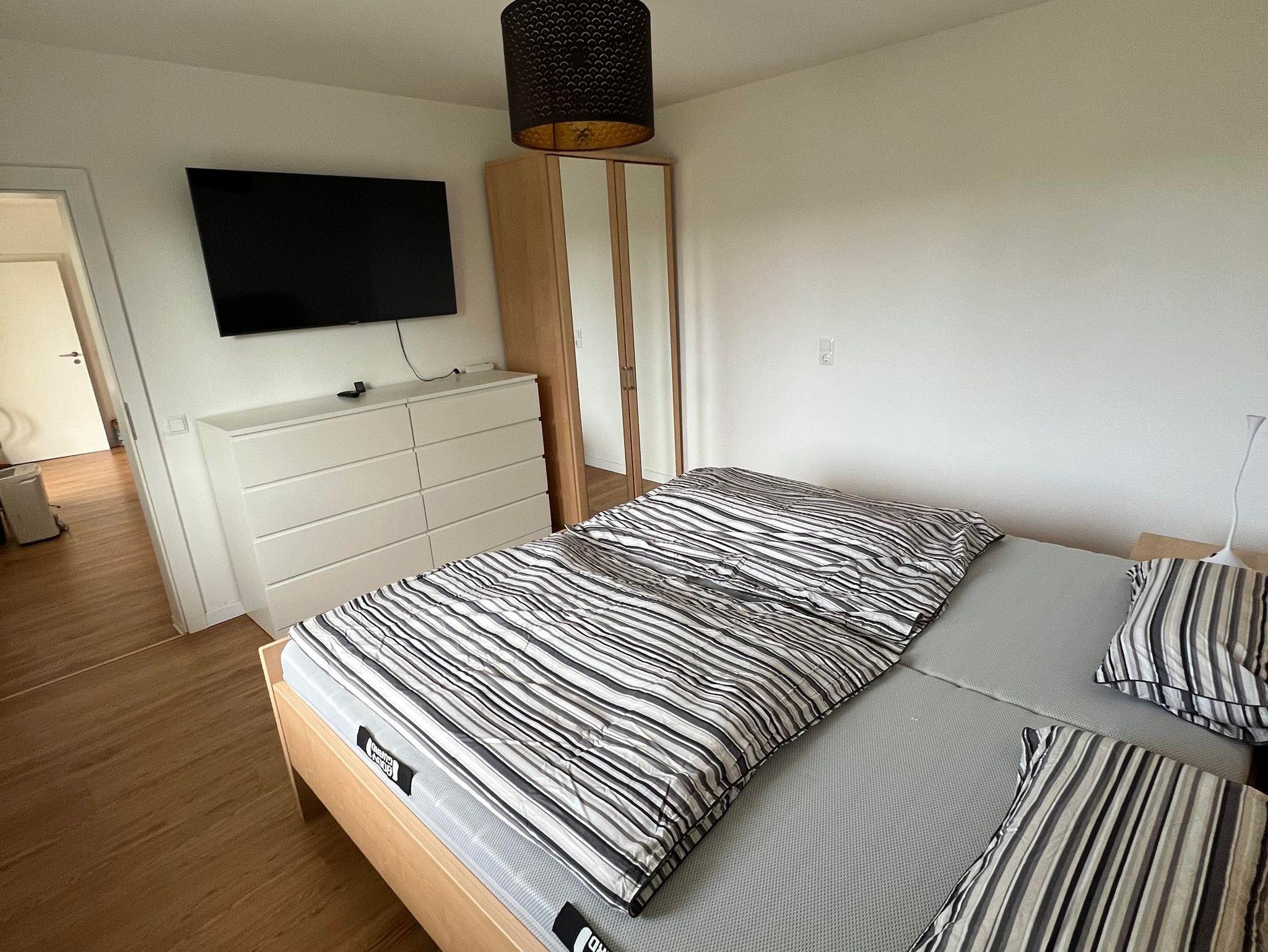 Die Wohnung besteht aus einem hellen Schlafzimmer mit Doppelbett und ausreichend Stauraum, einem gemütlichen Wohnzimmer mit Essbereich, sowie einer modernen Küche mit allem, was man für einen entspannten Aufenthalt braucht: Cerankochfeld, Wasserkocher, Toaster, etc. Das moderne Bad überzeugt mit einer großen, bodengleichen Dusche, Tageslicht und einem stilvollen Waschtisch.