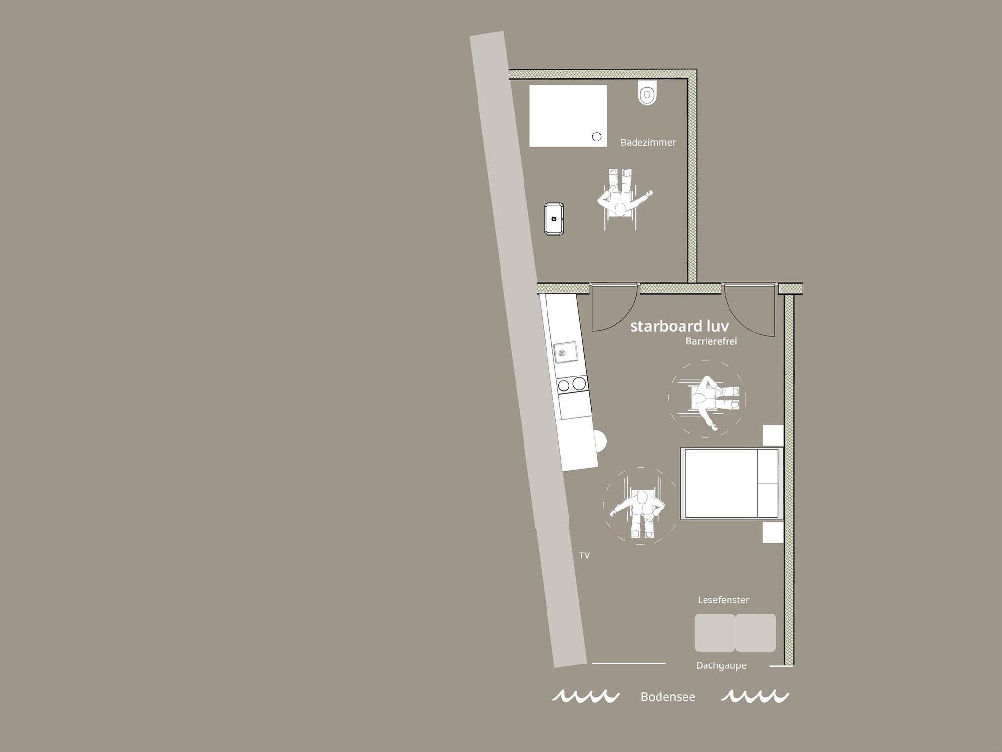 Hier wohnen Sie auf ca. 34 m² in unserem großzügigen Steuerbord-Apartment.