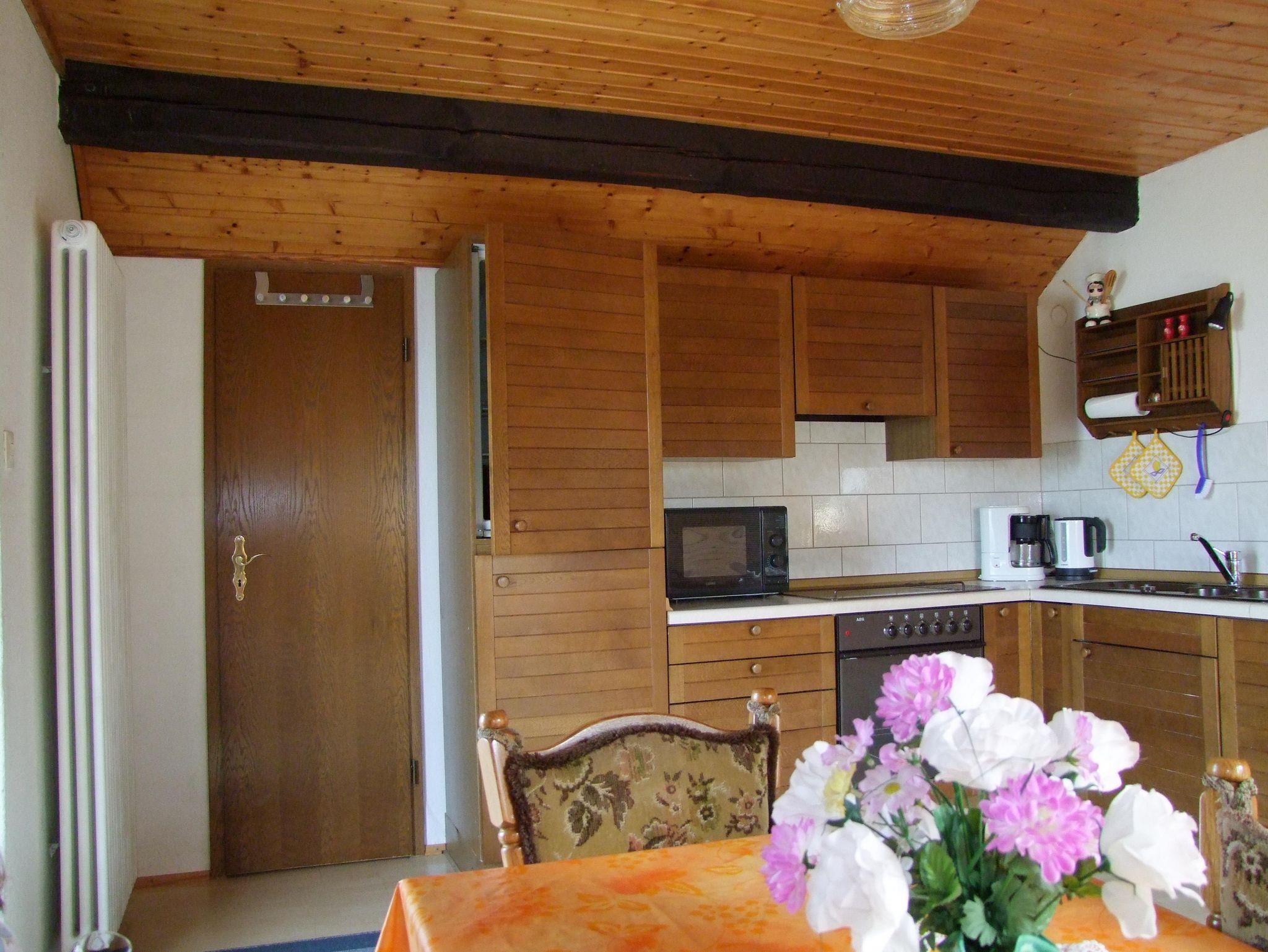 Die gemütliche Ferienwohnung im Dachgeschoss bietet Platz für bis zu drei Personen und verfügt über einen Balkon, der zum Verweilen einlädt. Sie umfasst ein kombiniertes Wohn- und Esszimmer mit integrierter Einbauküche, ein separates Schlafzimmer sowie ein Badezimmer mit Dusche und WC. Die Küche ist mit allem ausgestattet, was Sie für einen angenehmen Aufenthalt benötigen, darunter Kaffeemaschine, Wasserkocher, Toaster, Eierkocher und weitere nützliche Küchenutensilien.