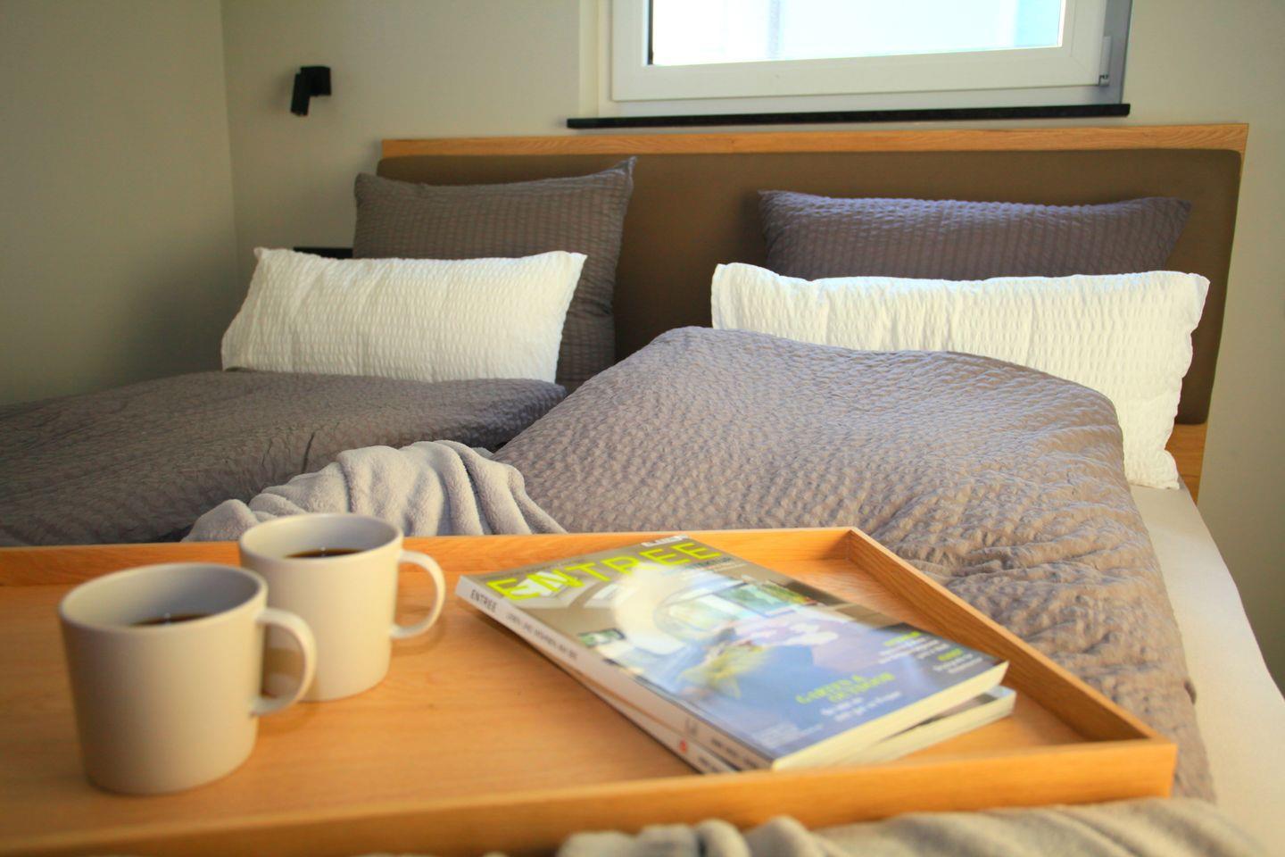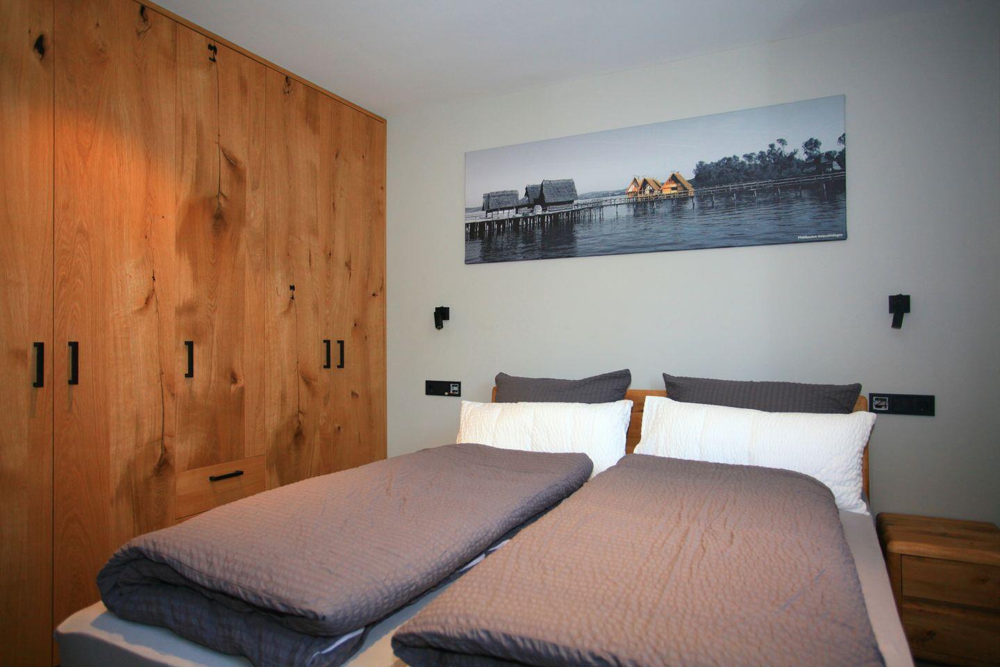 Zwei geschmackvoll eingerichtete Schlafzimmer mit bequemen Doppelbetten bieten erholsamen Schlaf für bis zu vier Personen. Das moderne Badezimmer mit extra großer Dusche rundet den Komfort perfekt ab. Waschmaschine und Trockner stehen Ihnen zur gemeinschaftlichen Nutzung zur Verfügung.