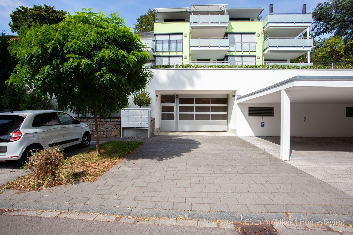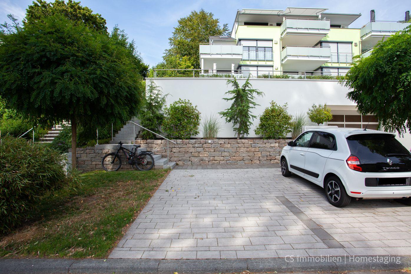 Zur Wohnung gehört ein Außenstellplatz, und auf der Garagenebene steht Ihnen ein Fahrradkeller zur Verfügung.