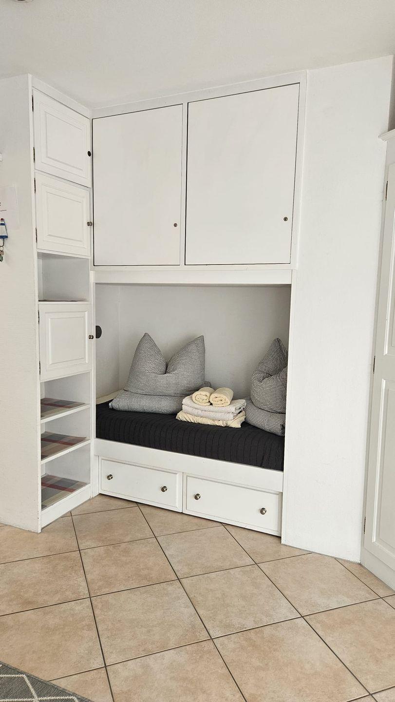 Bitte beachten Sie, dass es sich um eine kompakte Wohnung handelt, die ein Schrankbett beherbergt. Das Schlafsofa im Wohnzimmer kann als Doppelbett genutzt werden,welches bei Nutzung als Doppelbett das Wohnzimmer einnimmt...