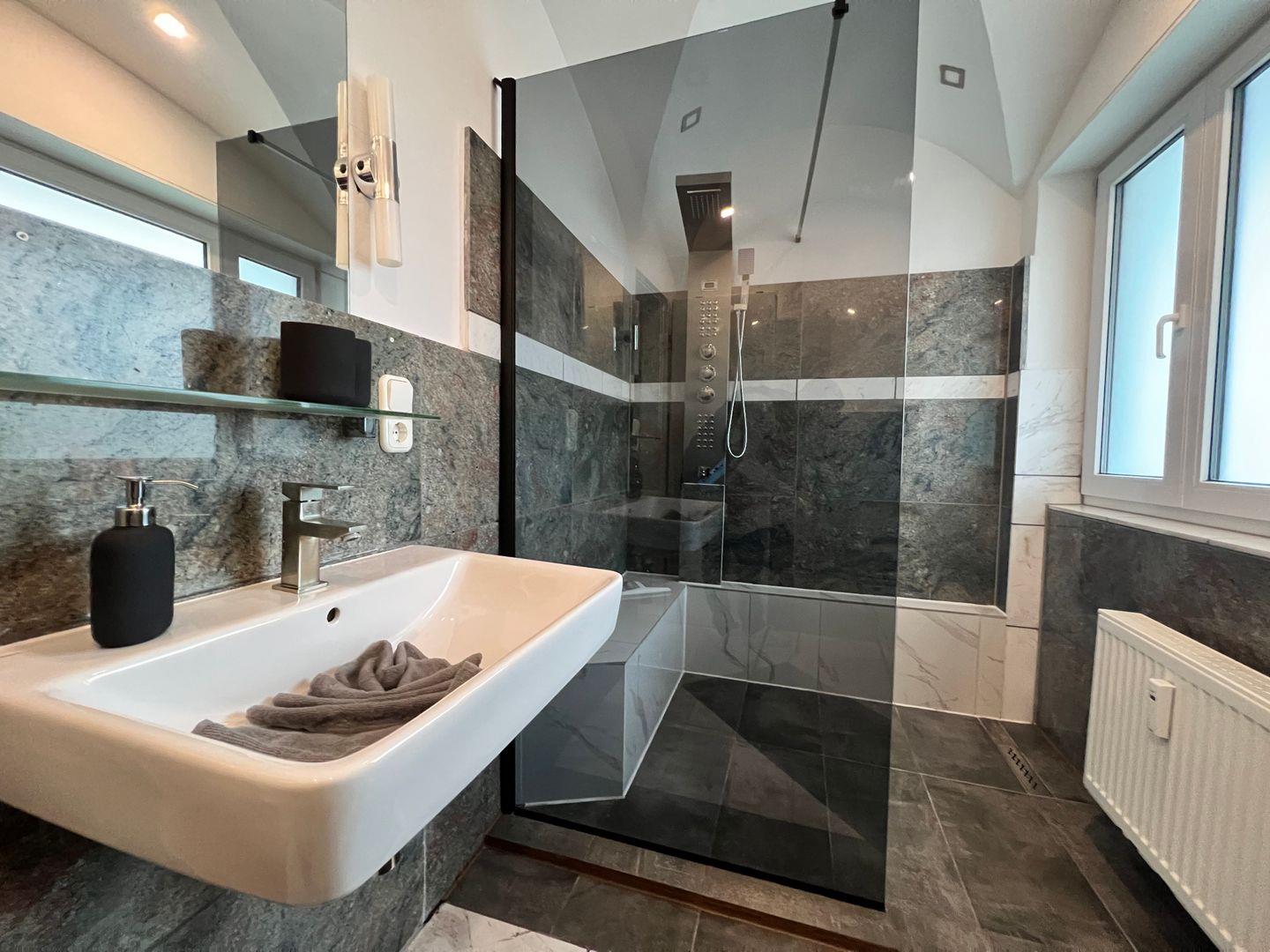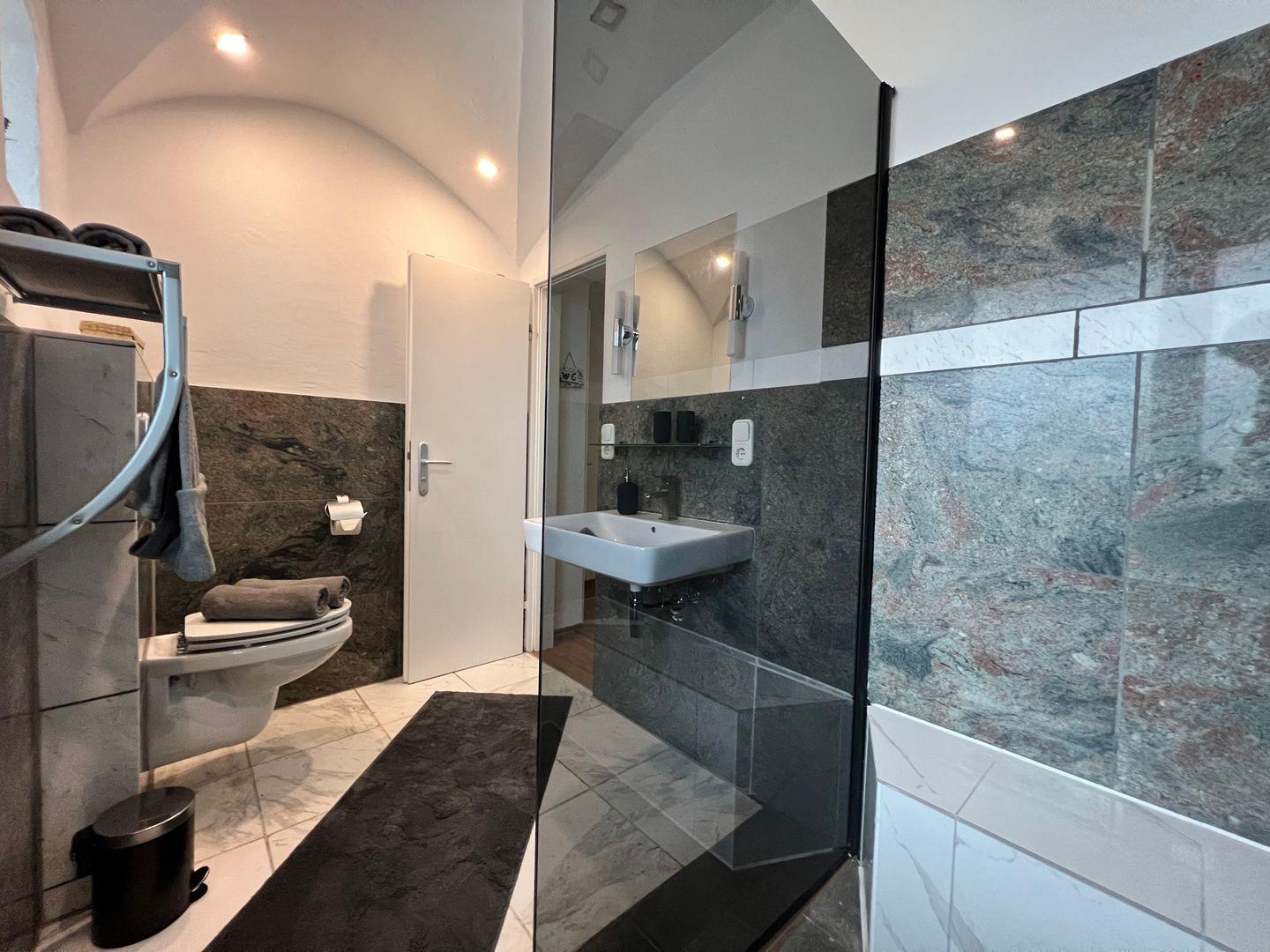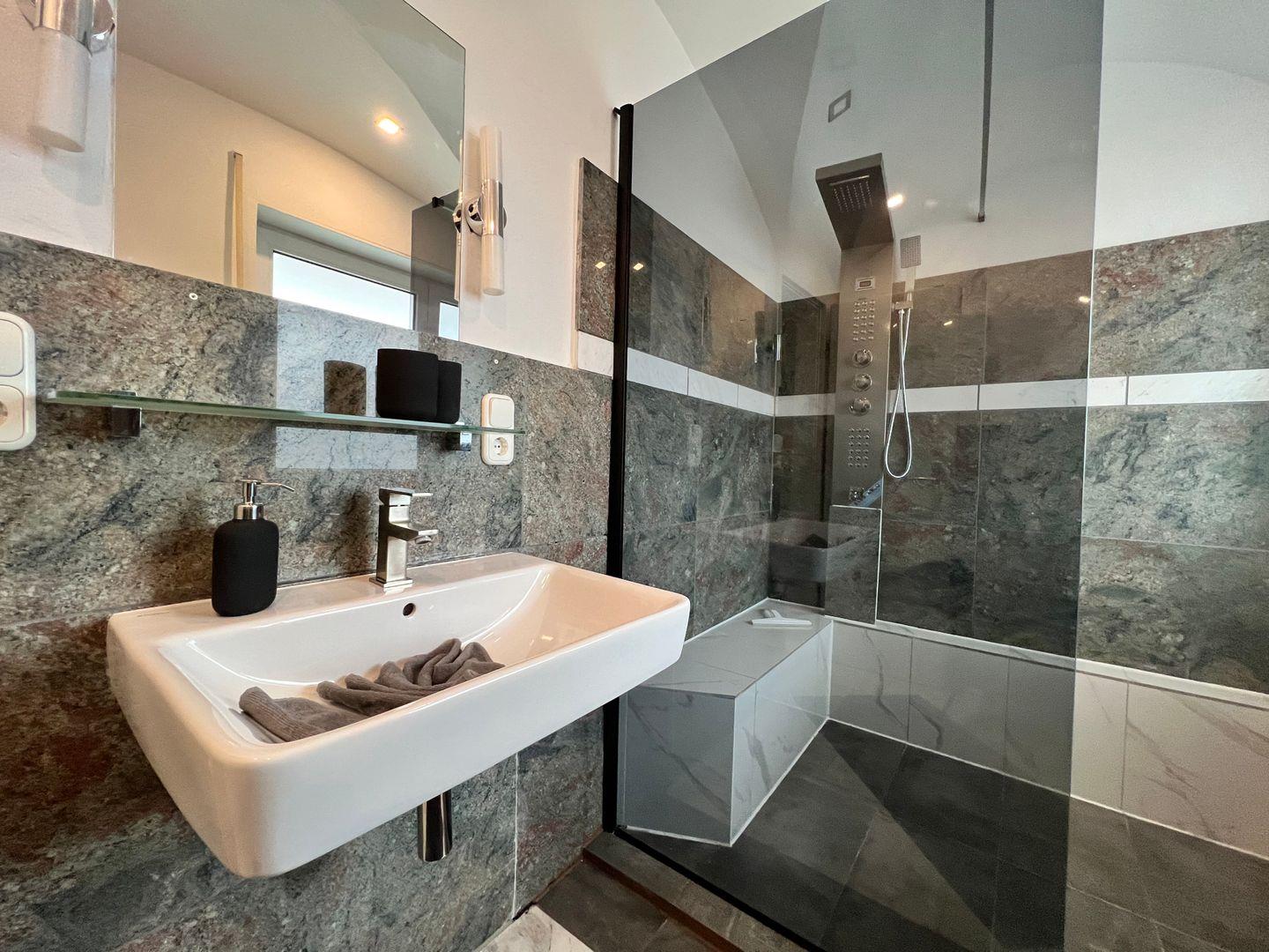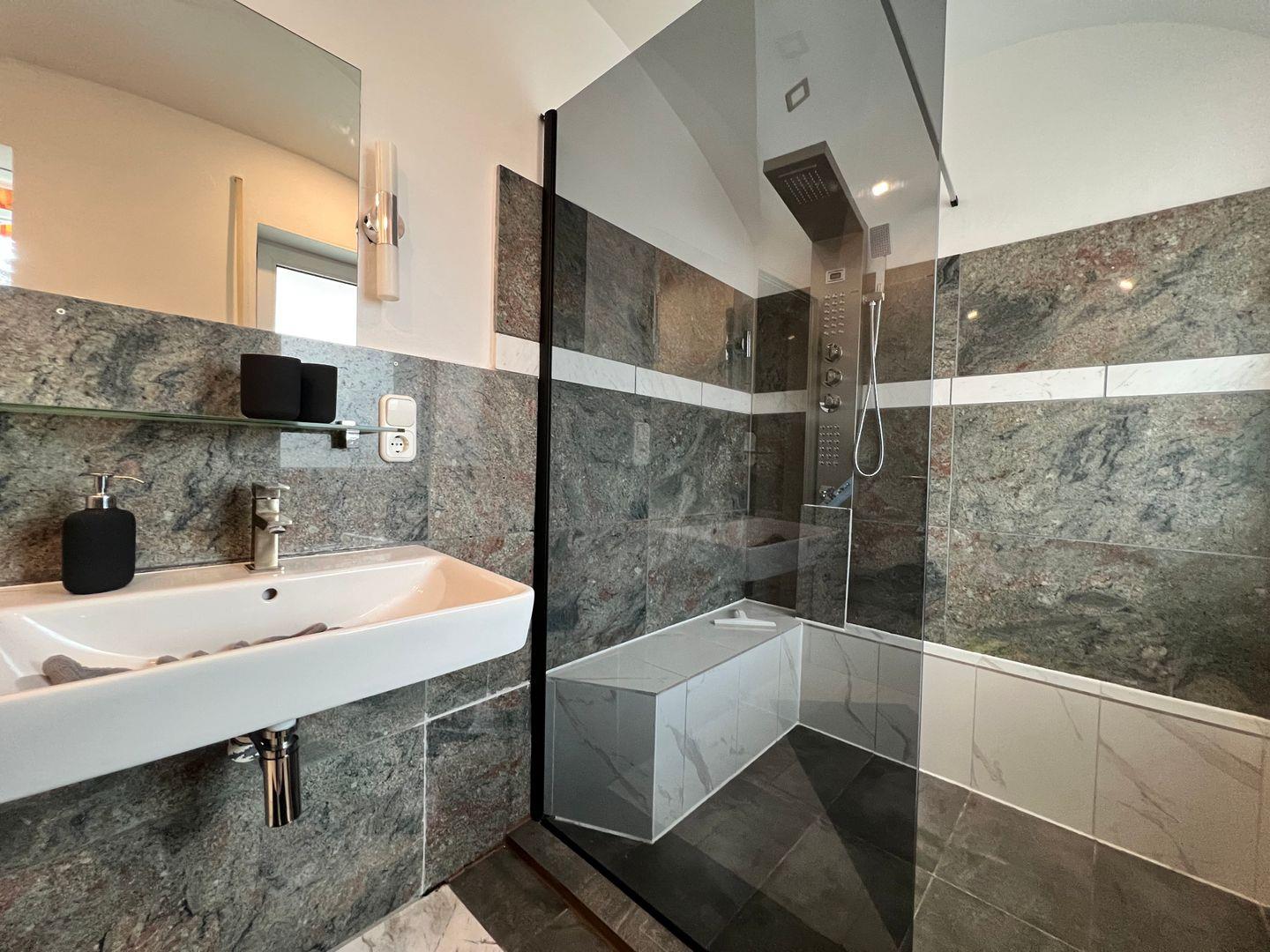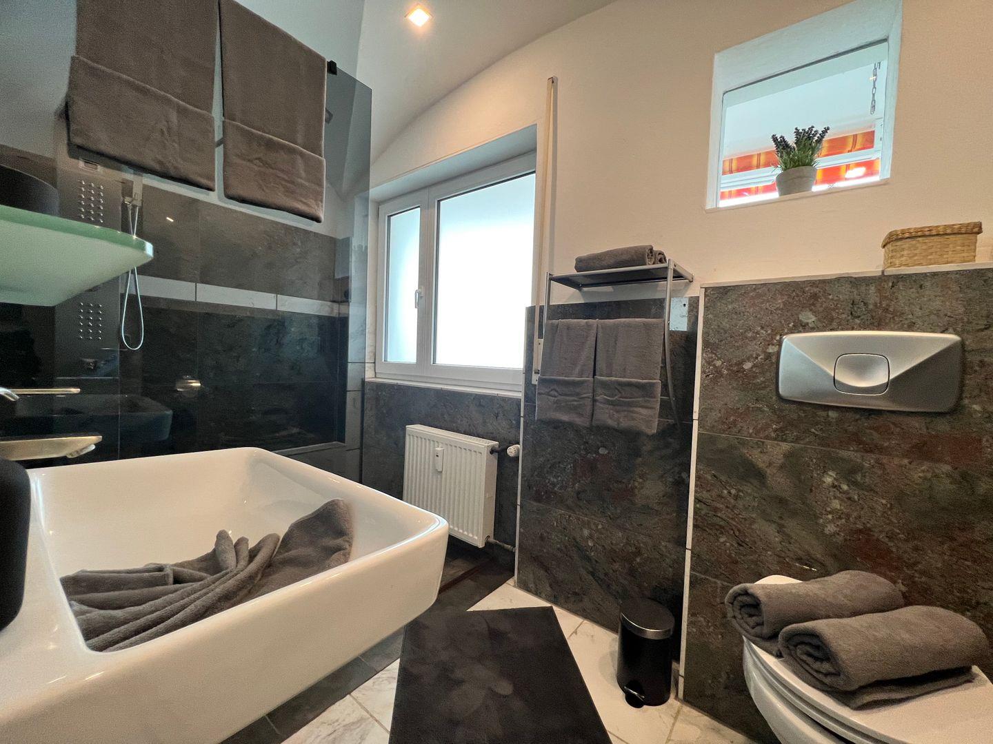 Das Schlafzimmer verfügt über ein komfortables Doppelbett und einen geräumigen Kleiderschrank. Das neuwertige Badezimmer beeindruckt mit einer großzügigen, bodenebenen Regendusche - der ideale Ort, um nach einem erlebnisreichen Tag am Bodensee zu entspannen.