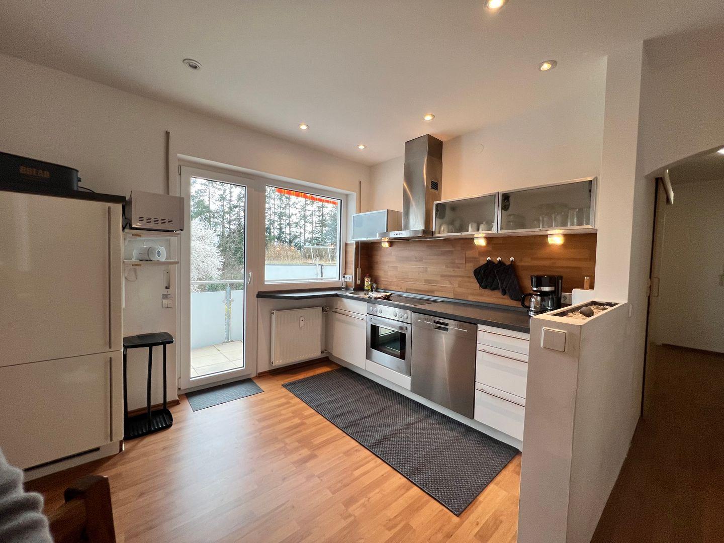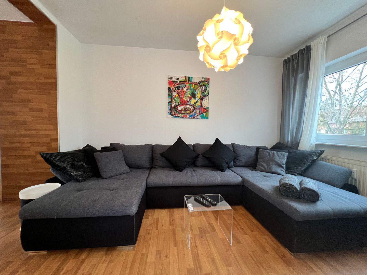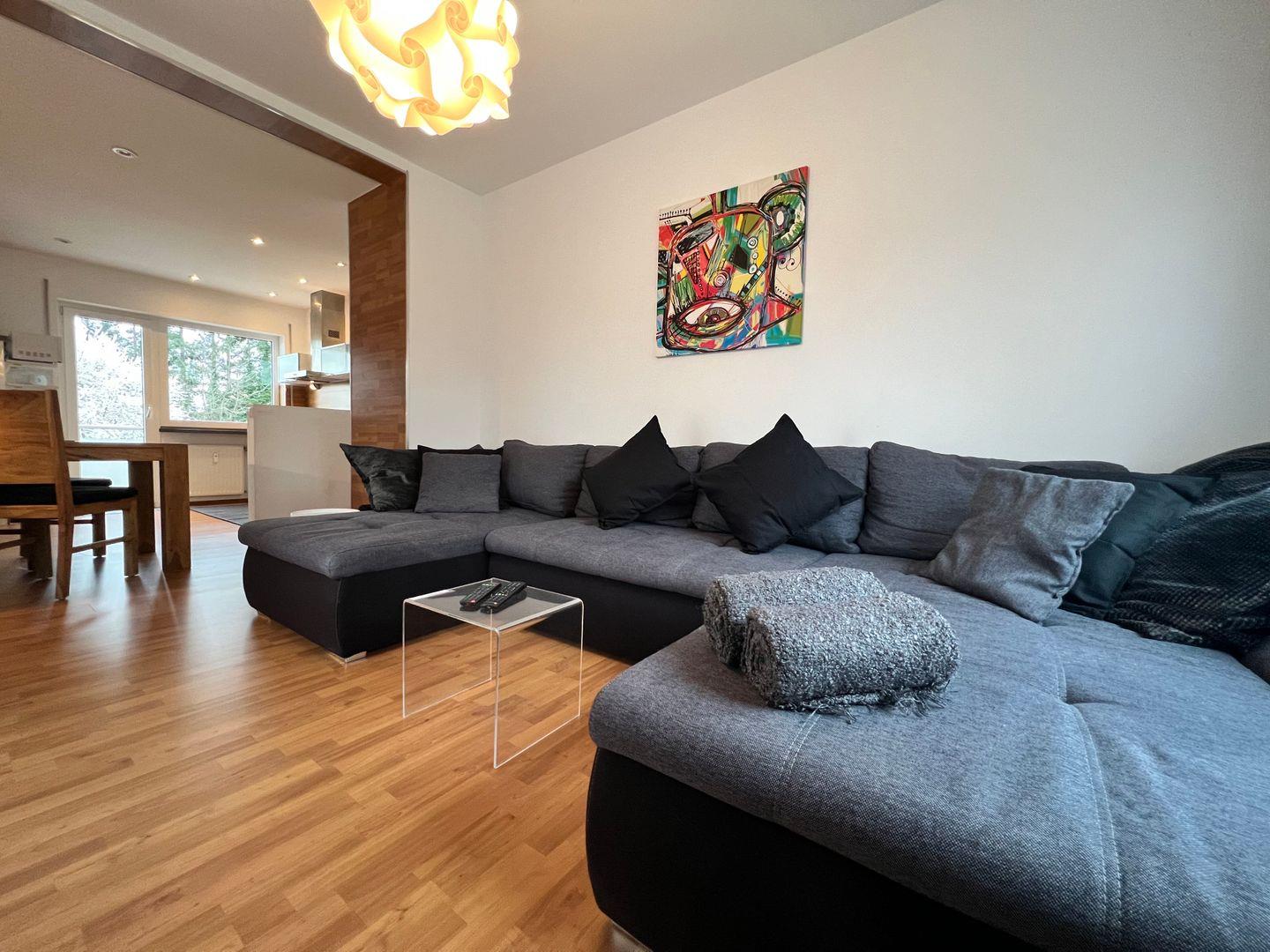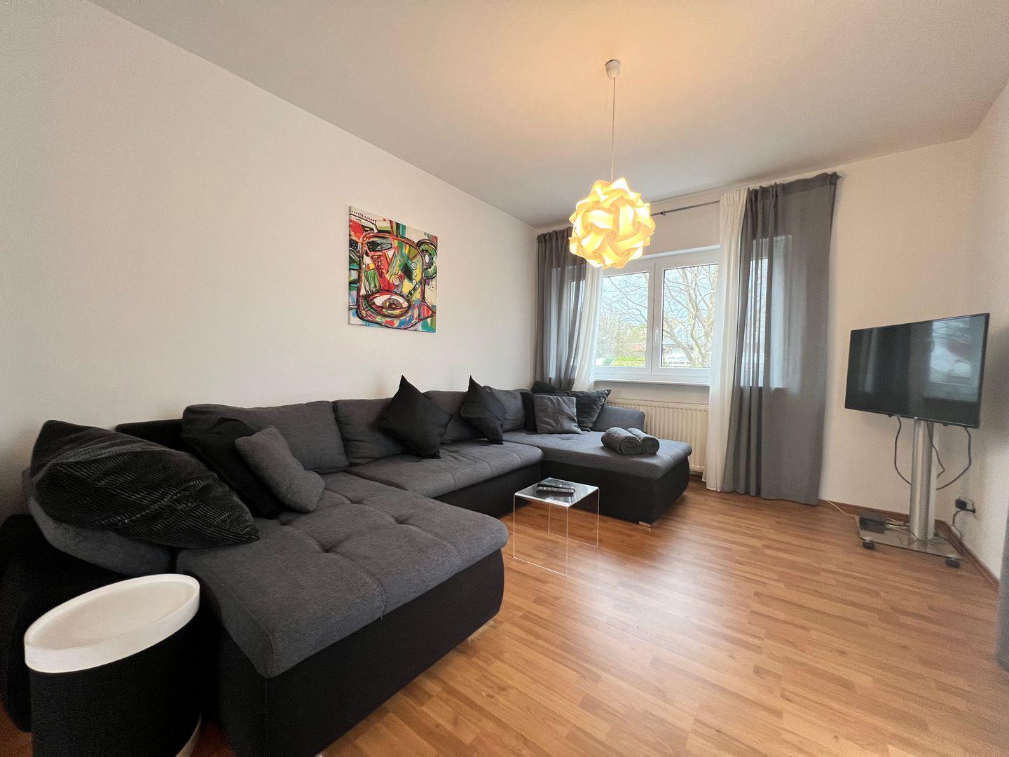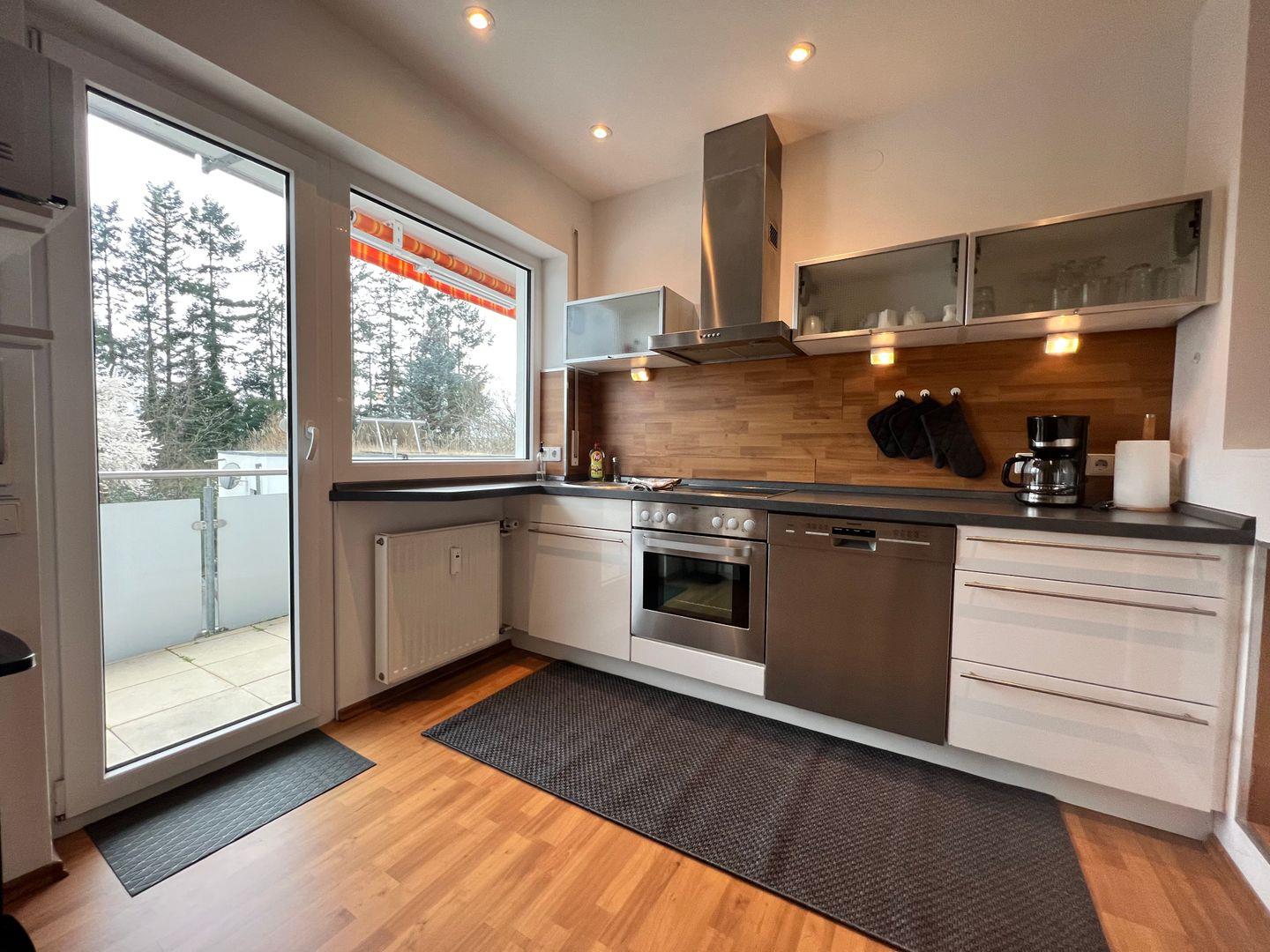 Das offene Wohnzimmer mit einer modernen Wohnlandschaft, einer Küchenzeile und einem Holz-Esstisch schafft eine gemütliche Atmosphäre. Die voll ausgestattete Küche bietet mit Spülmaschine, Herd, Kaffeemaschine, Wasserkocher, Kühlschrank sowie Geschirr und Kochutensilien alles, was Sie für die Zubereitung köstlicher Mahlzeiten benötigen.