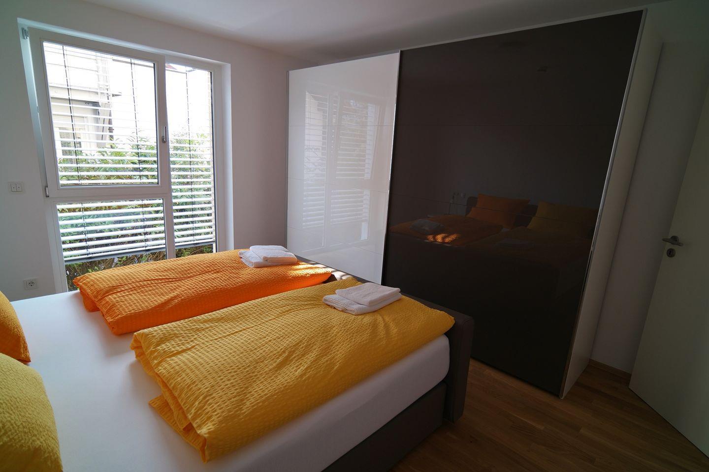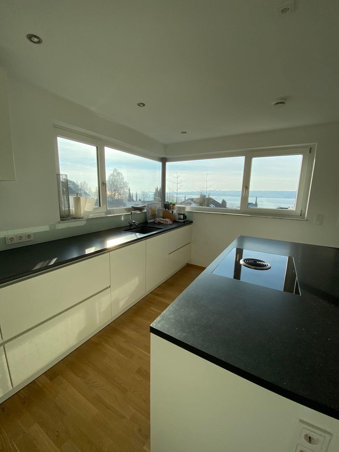 Zwei Schlafzimmer mit hochwertigen Boxspringbetten, ein Schlafzimmer mit Schlafsofa, eine moderne ALNO Star Highline Hochglanz-Küche und die Sonnenterrasse mit modernen Möbeln bieten höchsten Komfort für bis zu 6 Personen. Lifestyle beeindruckt mit luxuriöser Design-Ausstattung, die höchsten Ansprüchen gerecht wird. Moderne Möbel und stilvolle Details schaffen ein exklusives Ambiente. Die Sonnenterrasse ist mit wasserfesten modernen Möbeln ausgestattet und lädt zu entspannten Momenten mit Blick auf den Bodensee ein.