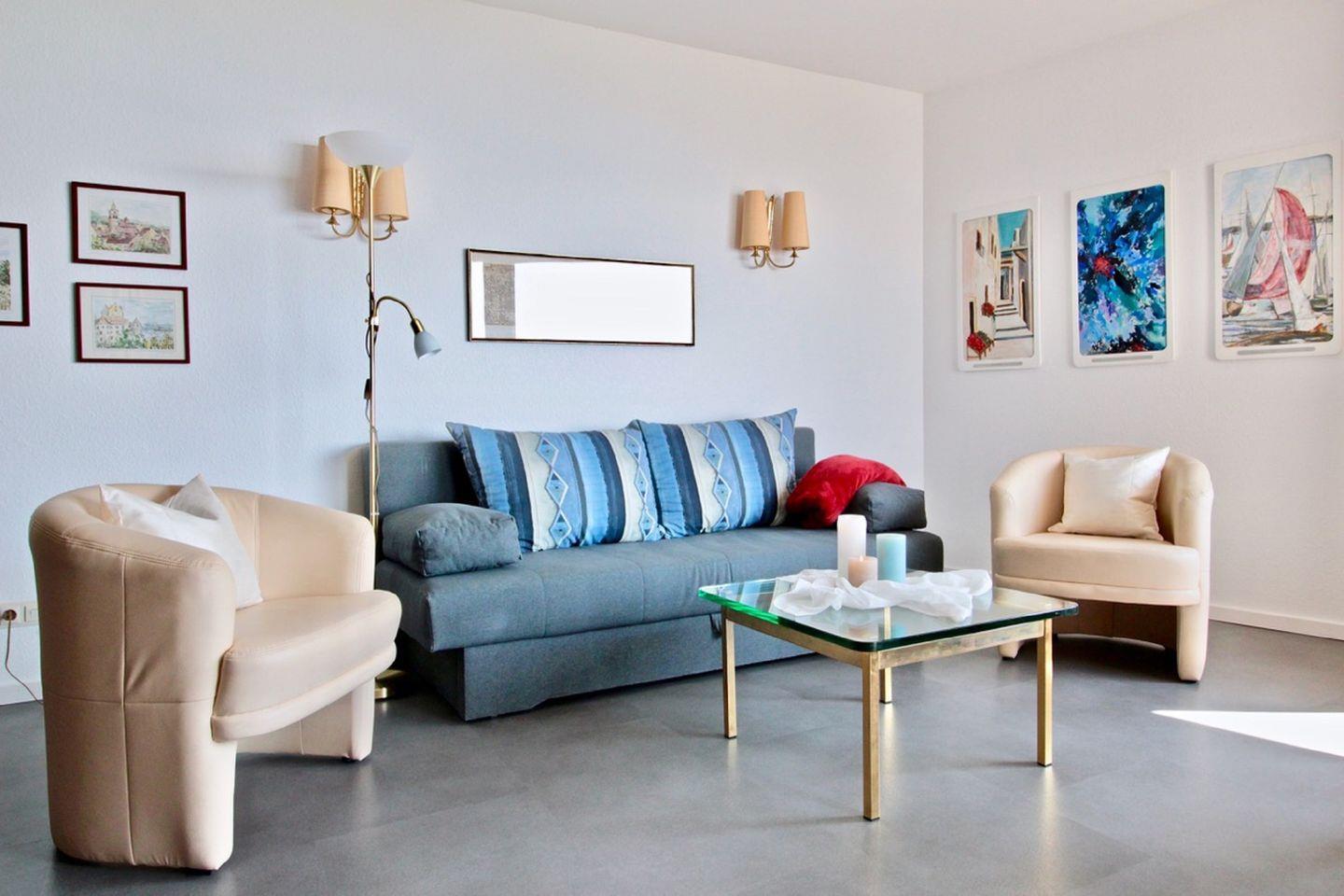 Die 1,5 -Zimmer Ferienwohnung Strandweg mit direktem Seeblick bietet Platz für 2-3 Personen. Die Wohnung bietet einen direkten Zugang zum Bodensee sowie eine großzügige Liegewiese mit altem Baumbestand zur gemeinschaftlichen Nutzung.