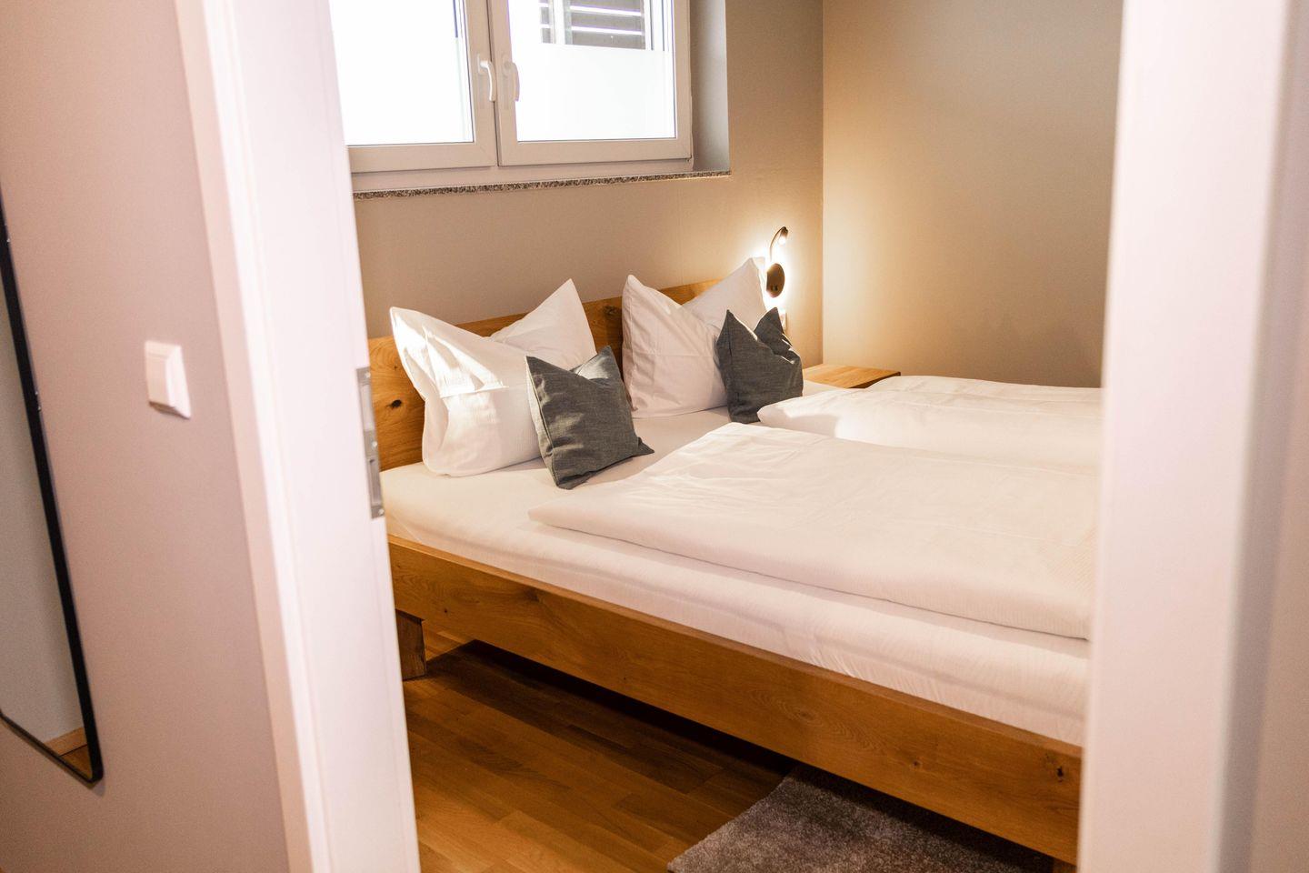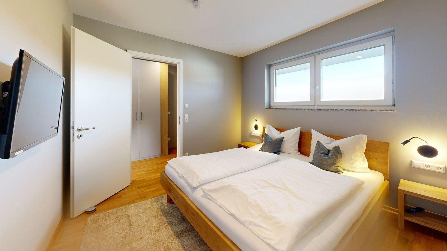 Für geruhsame Nächte steht ein Schlafzimmer mit einem gemütlichen Doppelbett zur Verfügung. Die Wohnung verfügt über Fußbodenheizung, elektrische Rollläden und einen W-LAN Anschluss, um Ihren Aufenthalt so angenehm wie möglich zu gestalten.