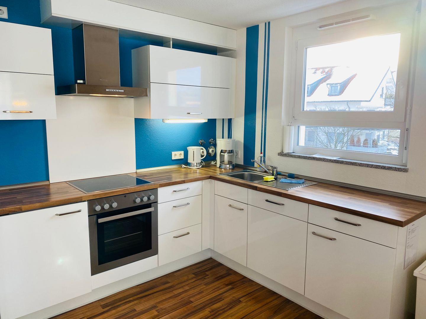 Die Ferienwohnung überzeugt durch ihre zentrale Lage sowie ihre hochwertige Ausstattung. Der Wohnbereich ist offen gestaltet und lädt zum Verweilen ein. Hier finden Sie eine voll ausgestattete Küchenzeile, die mit allem Nötigen für die Zubereitung von Mahlzeiten ausgestattet ist. Der Essplatz bietet Platz für bis zu vier Personen. Die Wohnlandschaft im Wohnzimmer kann bei Bedarf als zusätzliche Schlafmöglichkeit genutzt werden. Eine moderne Wohnwand mit TV rundet das gemütliche Ambiente ab. Vom Wohnzimmer aus gelangen Sie auf den Balkon, der mit einer Tischgruppe ausgestattet ist.