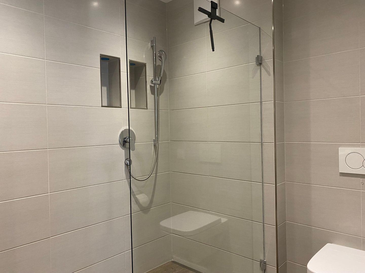 Die Ferienwohnung verfügt über ein Schlafzimmer mit Doppelbett (180X200 cm) sowie ein Arbeitszimmer mit ausziehbarer Couch, welches als zweites Schlafzimmer genutzt werden kann. Beide Badezimmer enthalten großzügige, bodenebene Duschen sowie Waschbecken und WC.