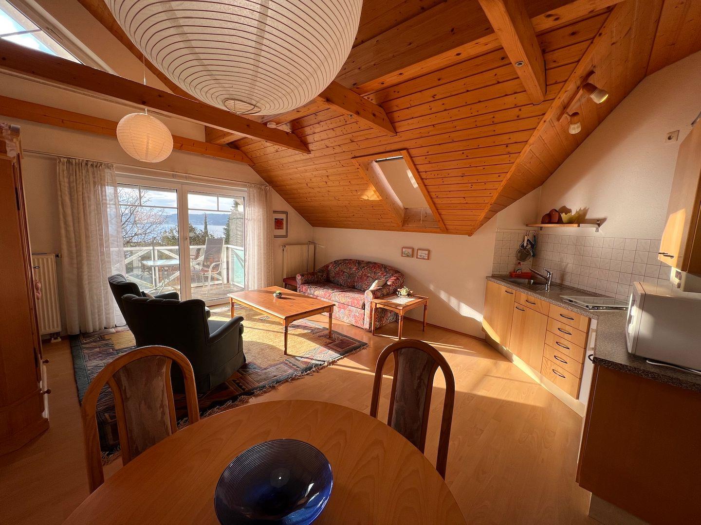Mit viel Liebe zum Detail verbindet sich der charmante Altbau-Charakter mit modernem Komfort. Neben der herausragenden Lage in Überlingen besticht die Ferienwohnung durch einen praktischen Grundriss und ein helles Ambiente. Die sonnige Ferienwohnung zeichnet sich durch eine gepflegte Innenausstattung aus. Der großzügig gestaltete Wohn-Essbereich mit Balkon ermöglicht Ihnen einen schönen Ausblick ins Grüne.
