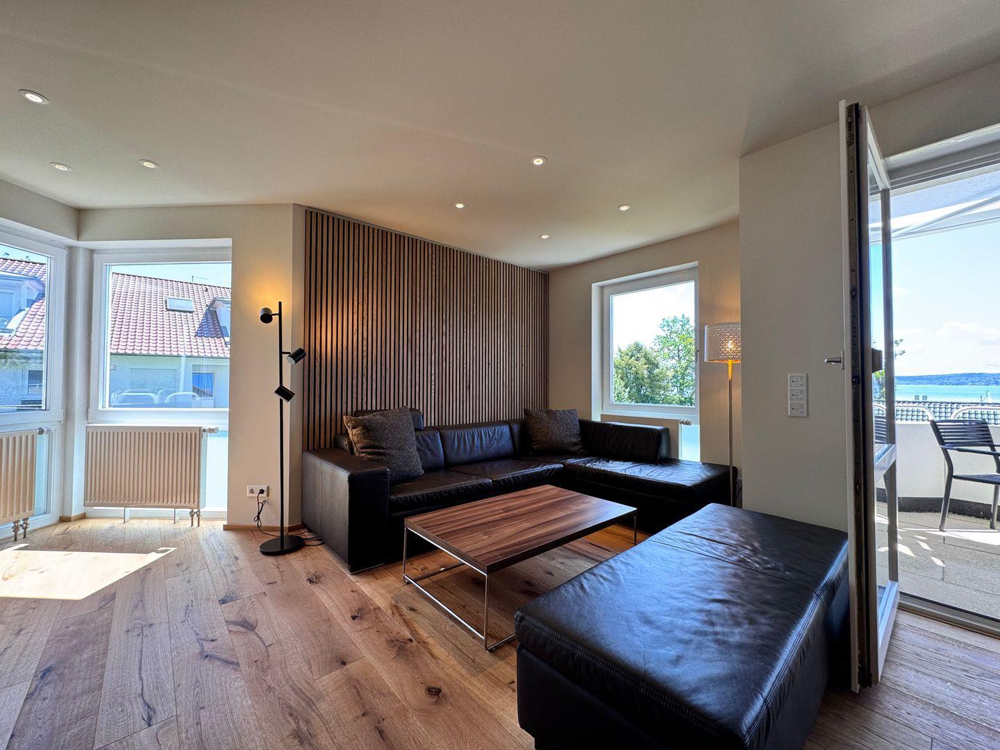 Ein besonderes Highlight ist der Balkon mit traumhaftem Seeblick – genießen Sie hier bei Sonnenuntergang ein Glas Wein oder lassen Sie Ihren Blick über die malerische Landschaft schweifen. Die Wohnung vereint stilvolles Design und Funktionalität, sodass Sie sich von der ersten Minute an wie zu Hause fühlen werden.