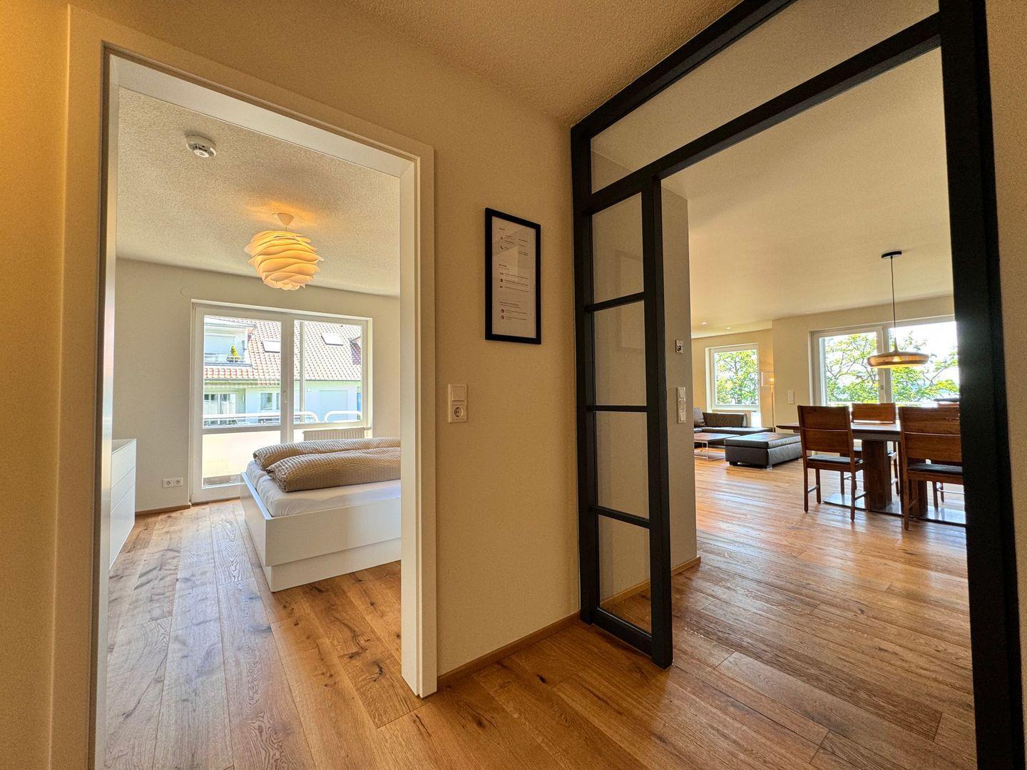 Willkommen in der Ferienwohnung am Bodenseeradweg in Überlingen-Nussdorf – ein stilvoller Rückzugsort am Bodensee, der höchsten Komfort mit moderner Ausstattung verbindet. Diese im Jahr 2024 vollständig renovierte Drei-Zimmer-Wohnung bietet auf 78 Quadratmetern eine helle und gemütliche Atmosphäre, perfekt geeignet für bis zu vier Personen.