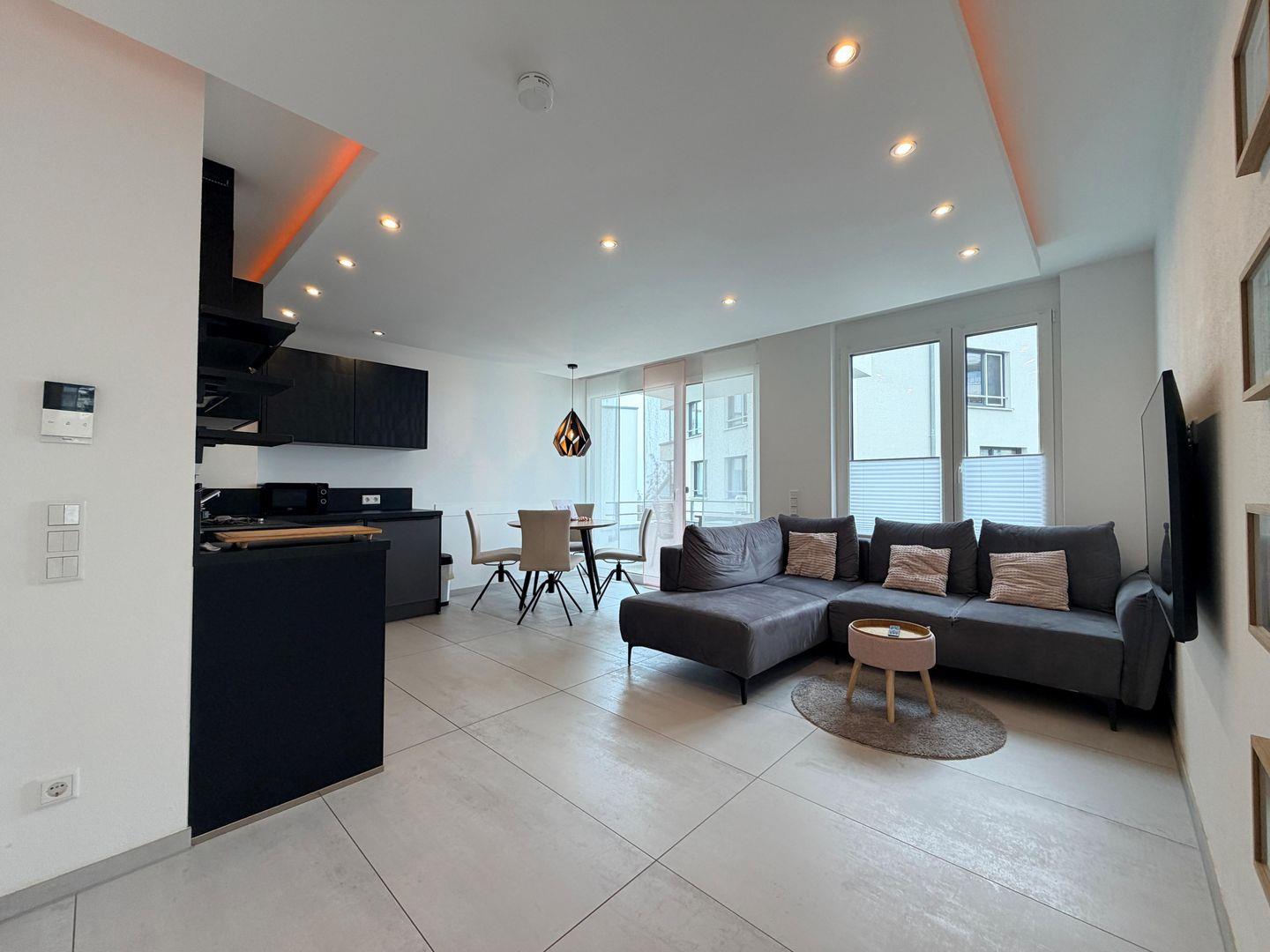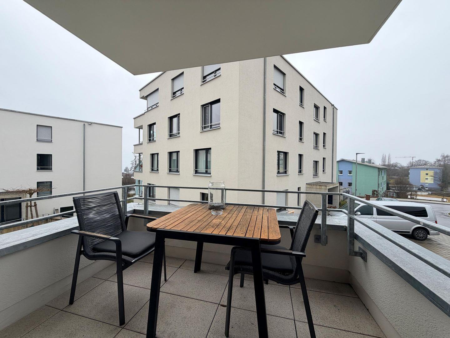 Aus dem Wohnzimmer gelangen Sie auf den gemütlich ausgestatteten Balkon in Süd-Westausrichtung, wodurch Sie wunderschöne Stunden in der Sonne genießen können.
