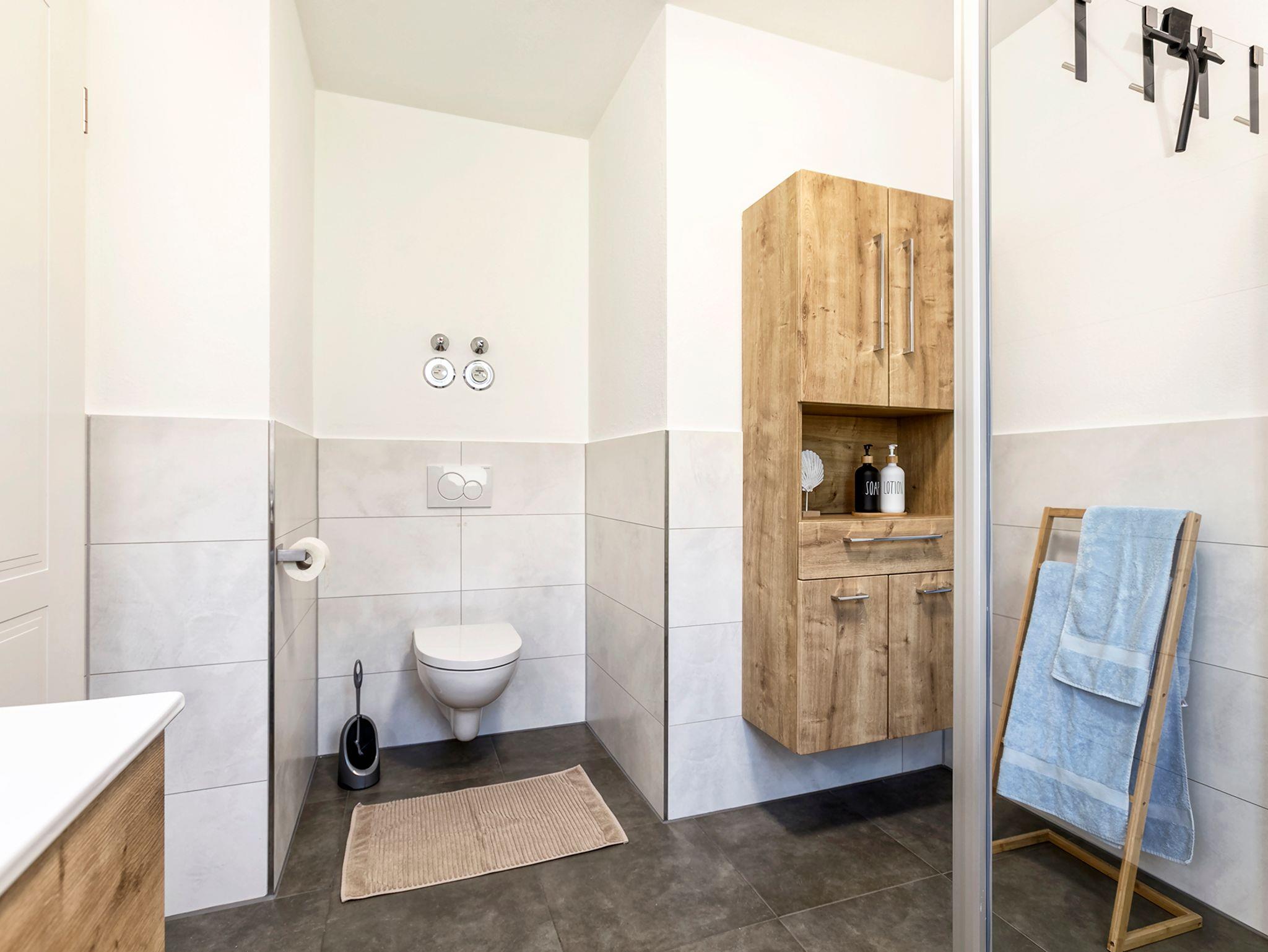 Die Wohnung bietet Ihnen auf knapp 115 m² eine Menge zu entdecken. Im Flur können Sie erst einmal ankommen, von dort aus gelangen Sie in das moderne Bad mit bodentiefer Dusche.